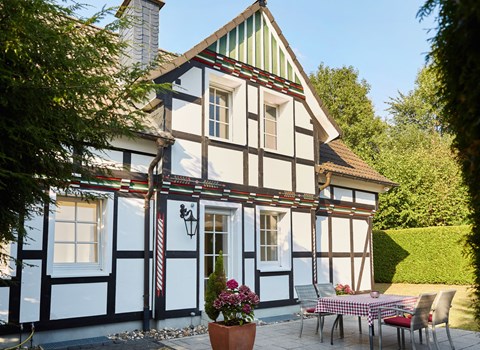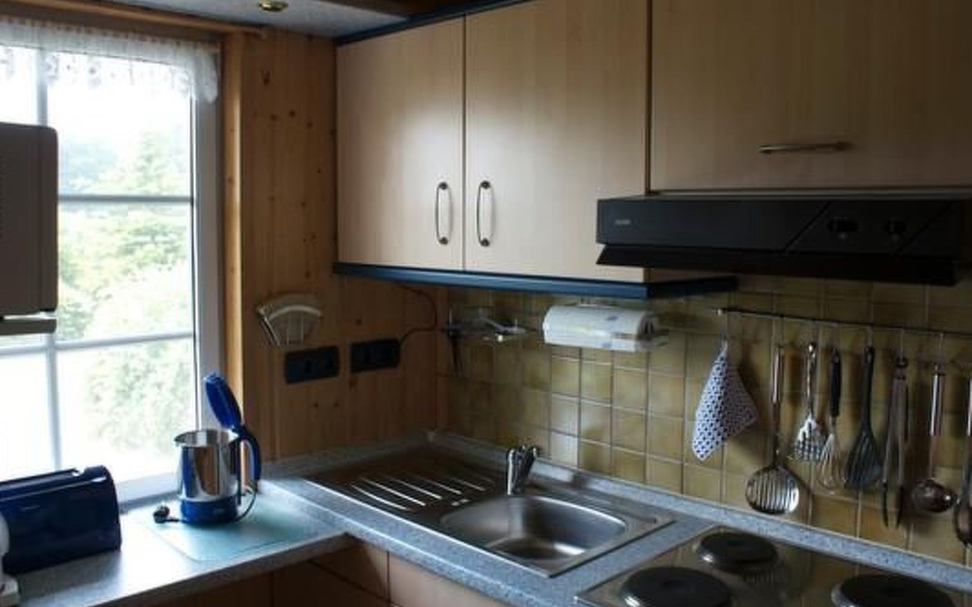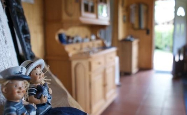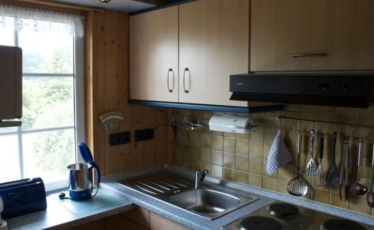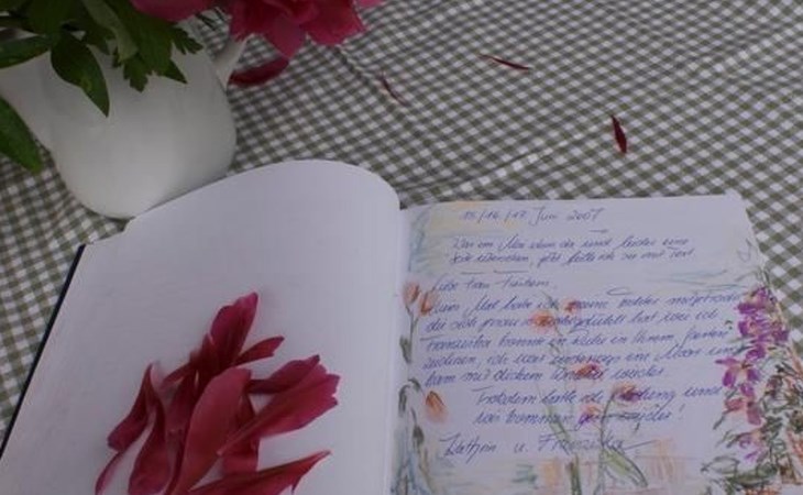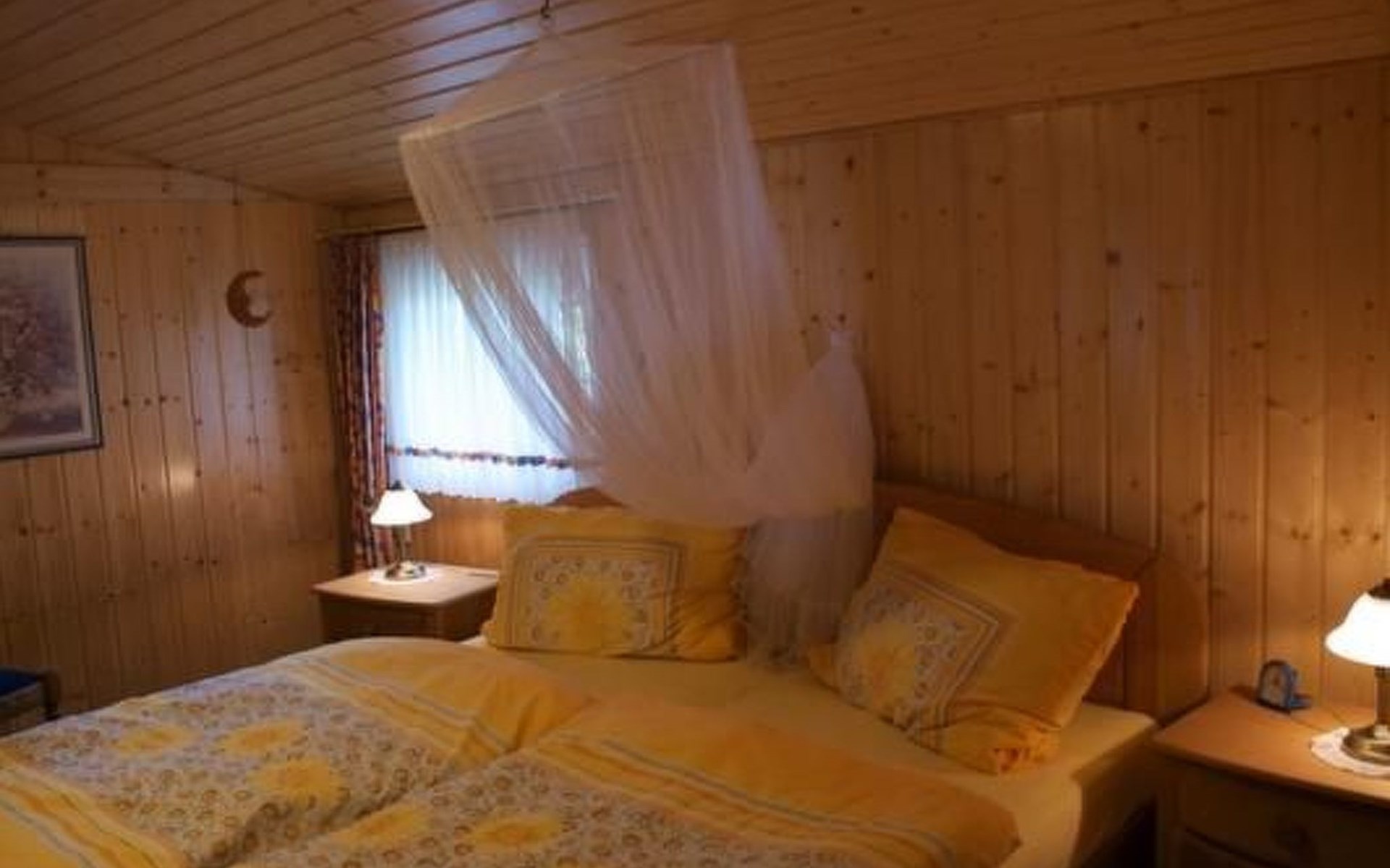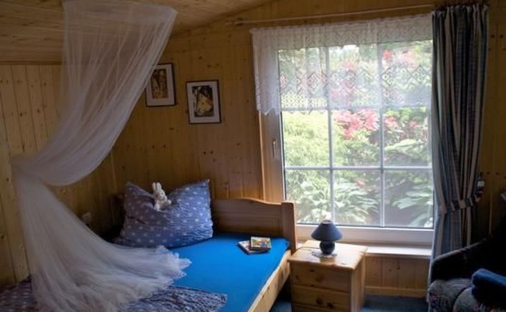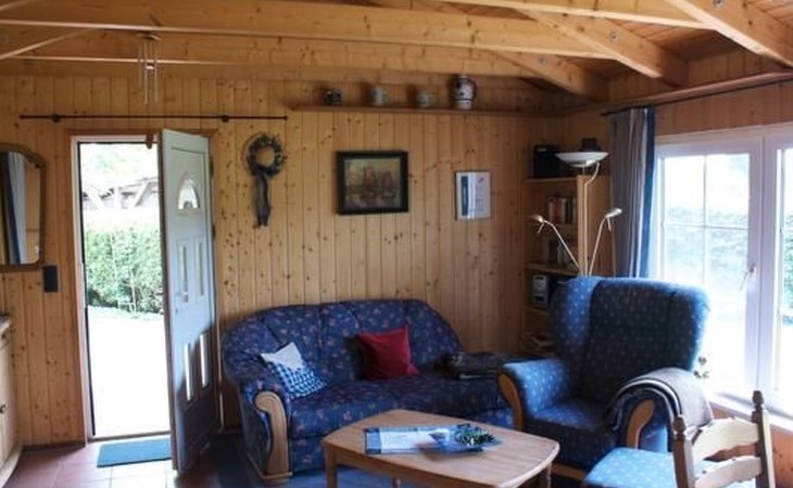 Our holiday home is located separately in the garden and has two bedrooms, living and dining room, fitted kitchen and bathroom. The fitted kitchen is equipped with a hob, oven, fridge, microwave, coffee machine, kettle and toaster. In the living room you will find a TV with satellite connection and a fireplace.