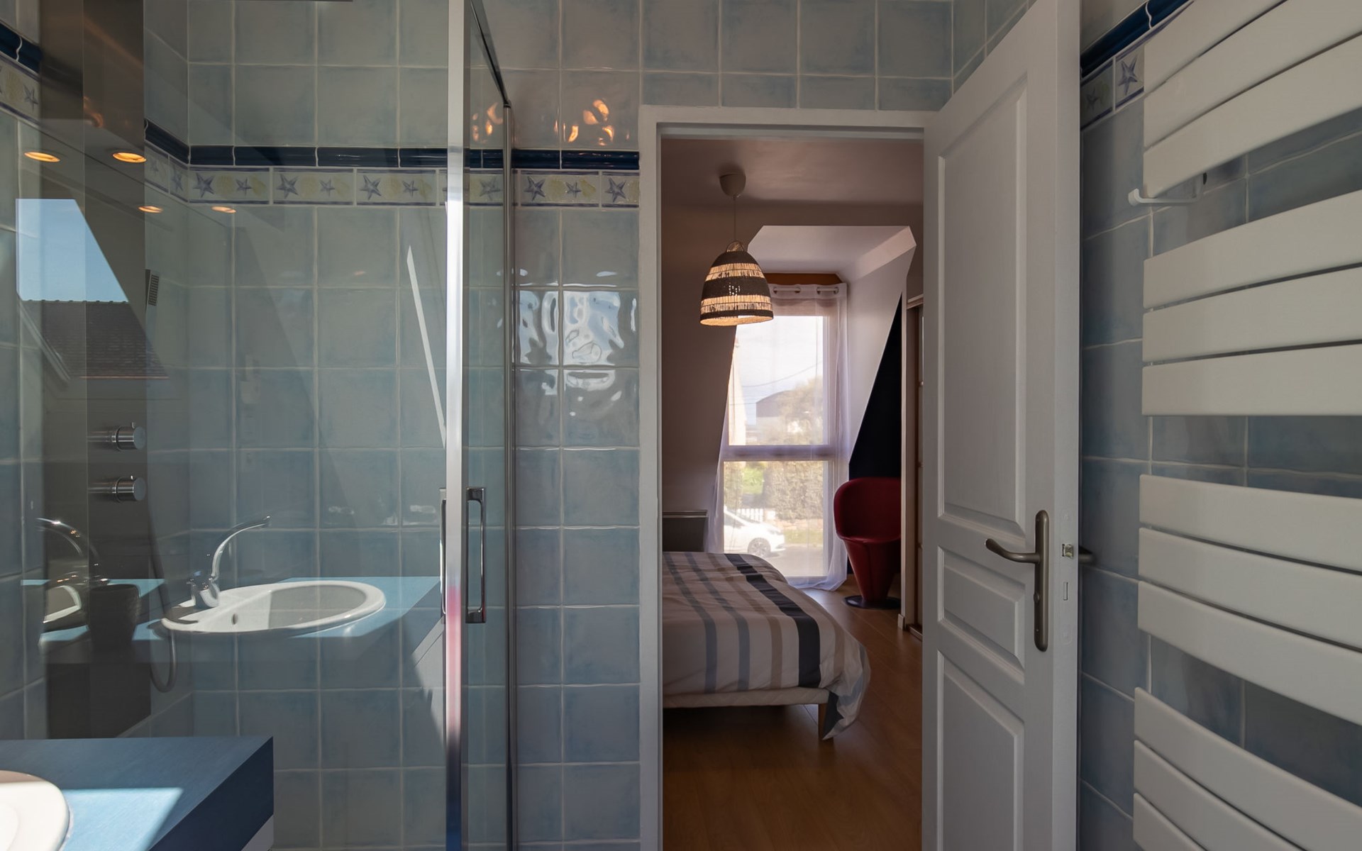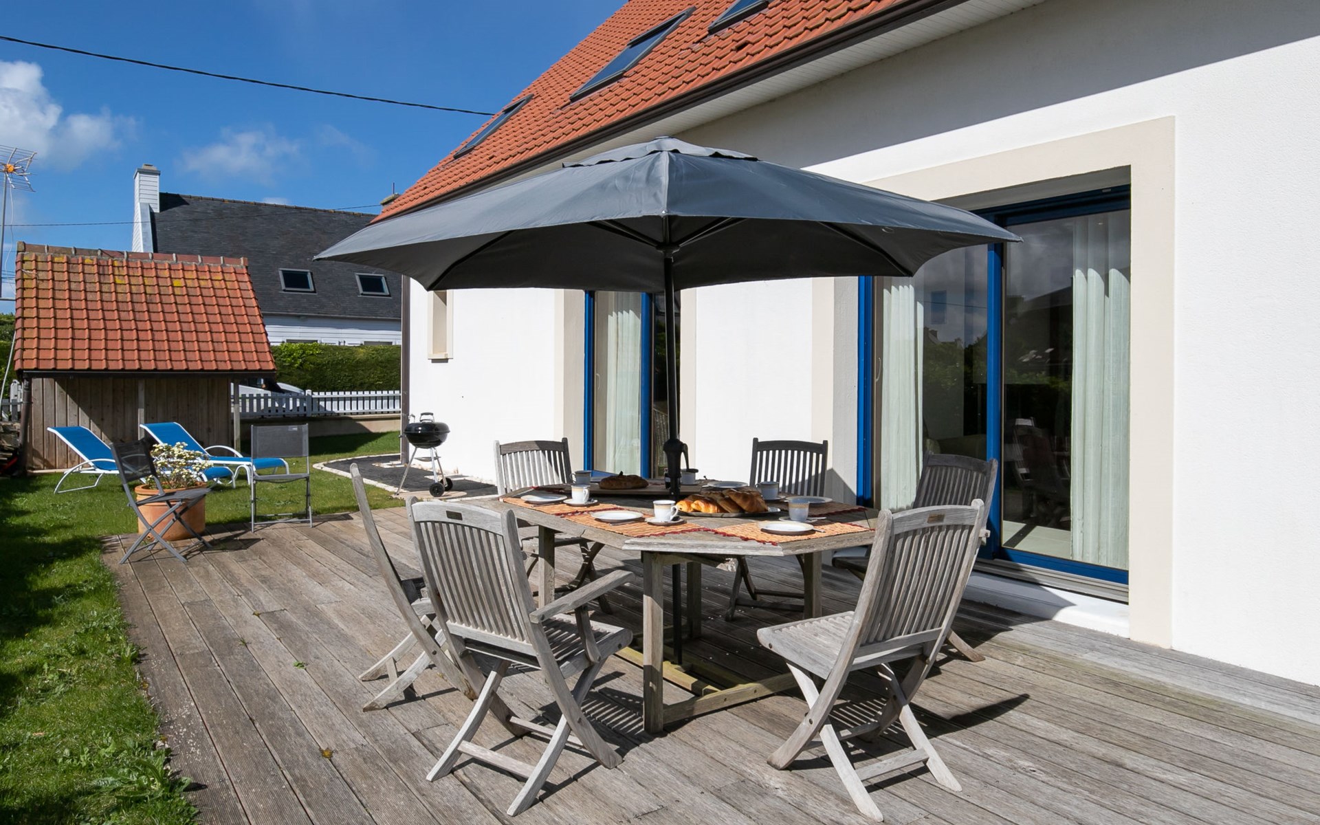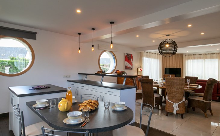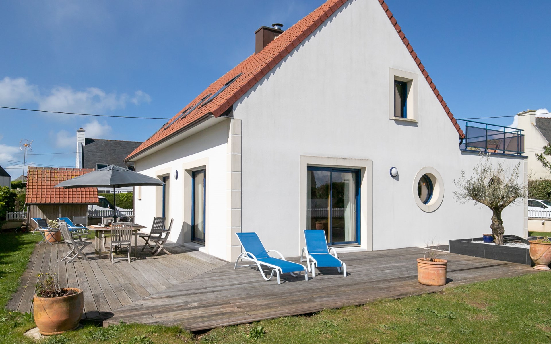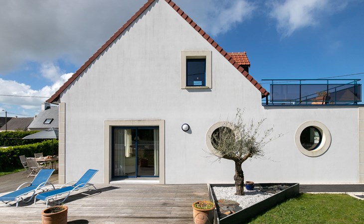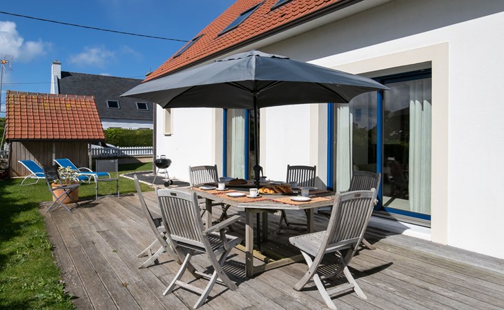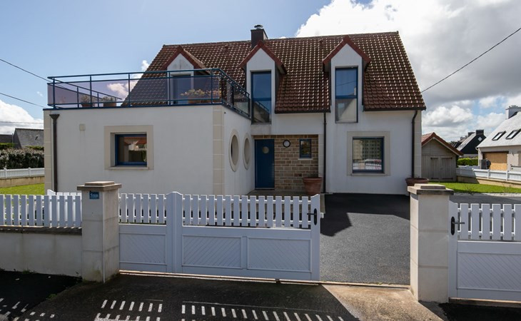 Plounéour-Trez: Very beautiful, comfortable, luxurious single-family house "Brign' Beach", 2 storeys. 1.5 km from the centre of Ploueour-Trez, 3 km from the centre of Brignogan-Plage, 80 m from the sea, 80 m from the beach. Private: property 500 m2 (fenced), garden with wildlife garden, parking (for 3 cars). Shop 1.5 km, grocery 1.7 km, supermarket 5.8 km, restaurant 300 m, bakery 1.5 km, café 1.4 km, bus stop "Kerurus" 200 m, sandy beach "Plage de Kerurus" 80 m, thermal baths "Thalasso Roscoff" 35 km. Sports harbour 5 km, golf course (18 hole) 35 km, surf school 10 km, sailing school 5 km, walking paths from the house 80 m. Nearby attractions: centre de glisse, kite-surf 800 m, Meneham, Kerlouan 6.5 km, réserve ornithologique, Dunes de Keremma 7 km, Lesneven 12 km, St.Pol-de-Léon, Roscoff, jardin exotique 40 km, Brest, Oceanopoli 40 km. Hiking paths: GR34, sentier des Douaniers 80 m. Please note: airfield 34 km from the property.