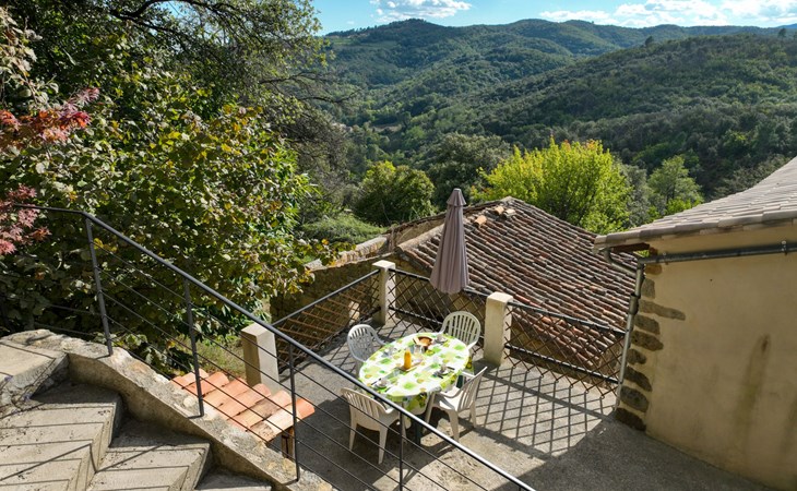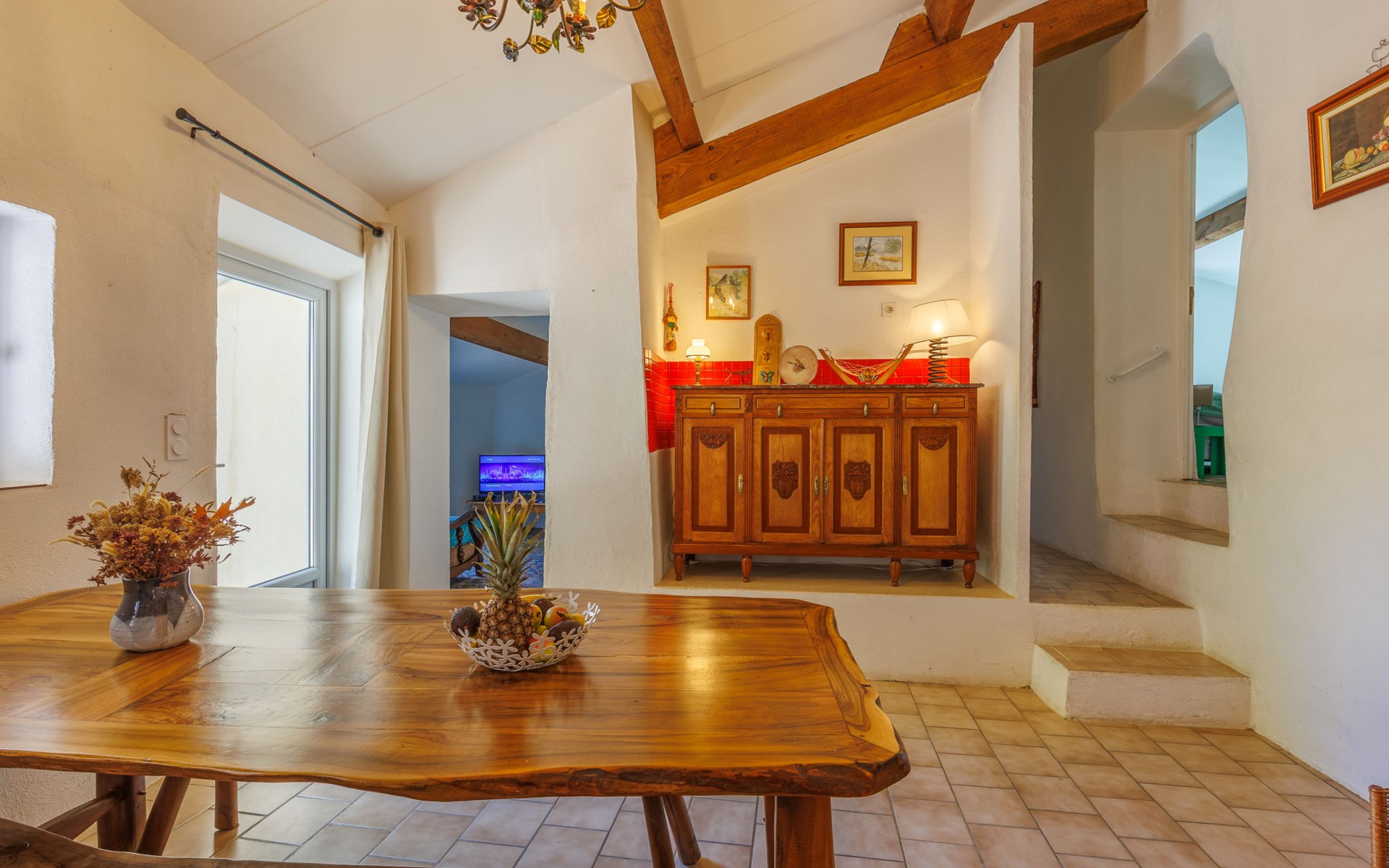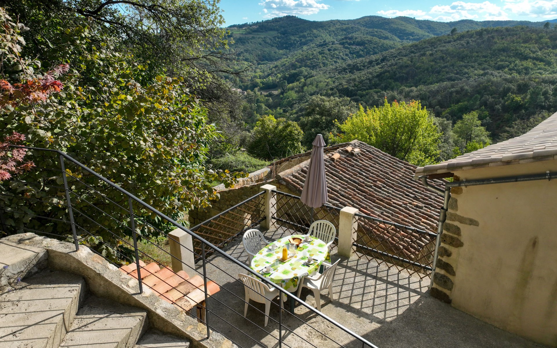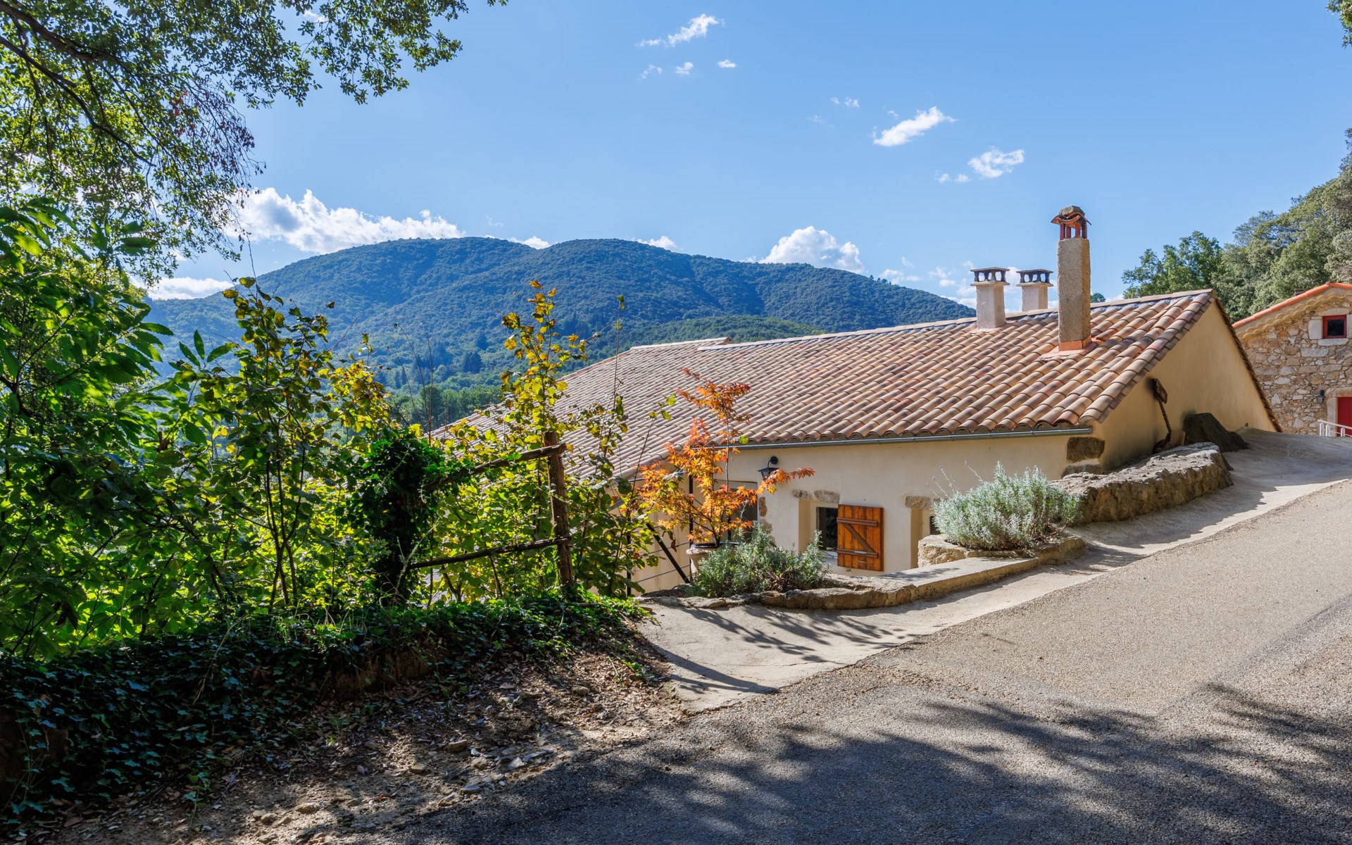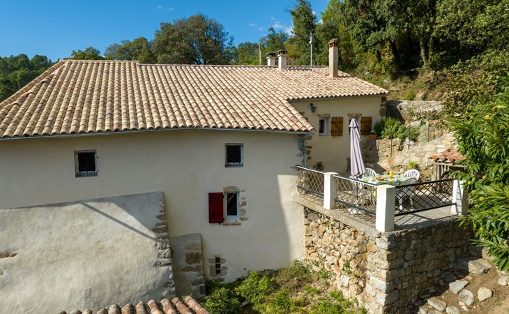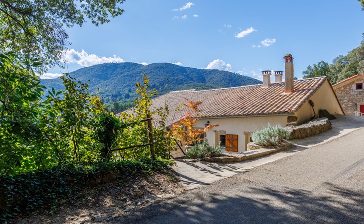 St Jean du Gard: Rustic terraced house "La Volte", renovated in 2020. 7 km from the centre of St. Jean du Gard, in a sunny position on a slope, 10 m from the edge of the forest, in the countryside, in the woods. Private: natural state property 157 m2, garden (not fenced) with wildlife garden and trees. Narrow motor access to the grounds. Stepped path (16 steps) to the house. Parking on the premises. Grocery 7 km, supermarket 7 km, bus stop "La Bernardelle" 700 m. Nearby attractions: Alès 35 km, Nimes 70 km, Montpellier 75 km, Anduze 15 km. Hiking paths: Nombreux chemins de Randonnées GR, Parc national des Cévennes. Please note: car recommended.