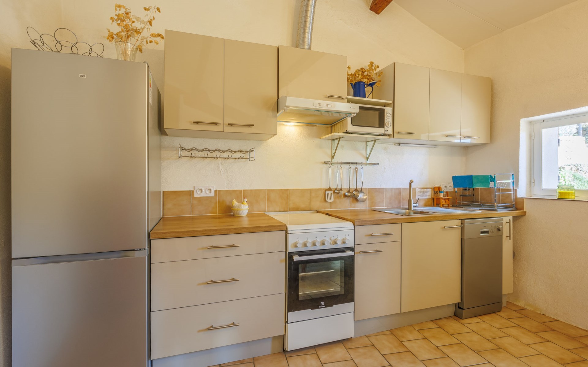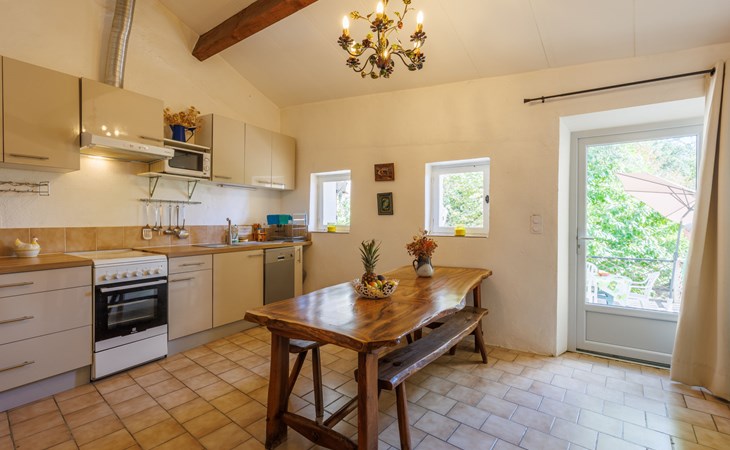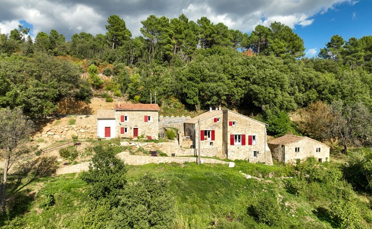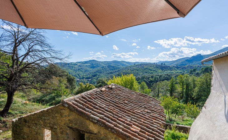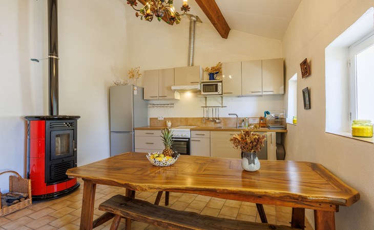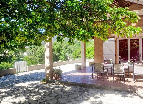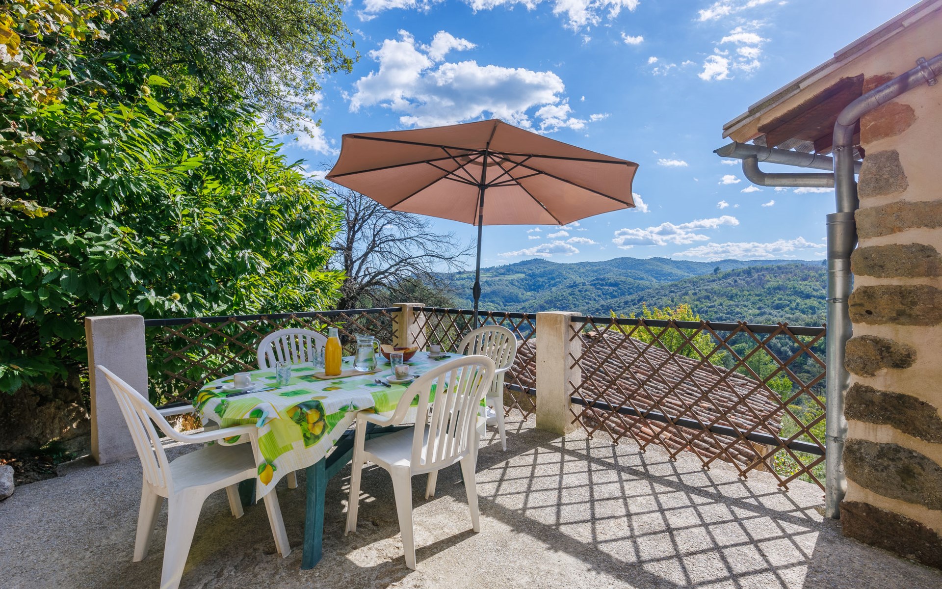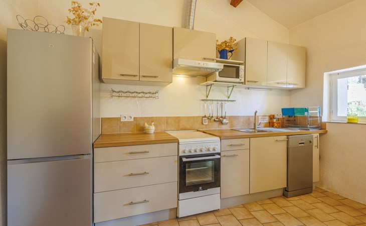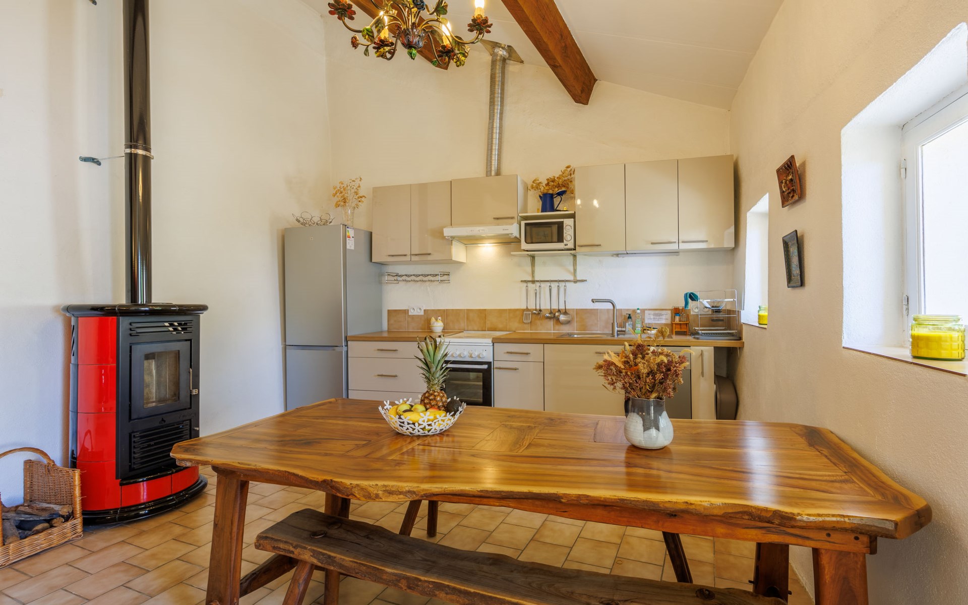 St Jean du Gard: Rustic terraced house "La Volte", renovated in 2020. 7 km from the centre of St. Jean du Gard, in a sunny position on a slope, 10 m from the edge of the forest, in the countryside, in the woods. Private: natural state property 157 m2, garden (not fenced) with wildlife garden and trees. Narrow motor access to the grounds. Stepped path (16 steps) to the house. Parking on the premises. Grocery 7 km, supermarket 7 km, bus stop "La Bernardelle" 700 m. Nearby attractions: Alès 35 km, Nimes 70 km, Montpellier 75 km, Anduze 15 km. Hiking paths: Nombreux chemins de Randonnées GR, Parc national des Cévennes. Please note: car recommended.