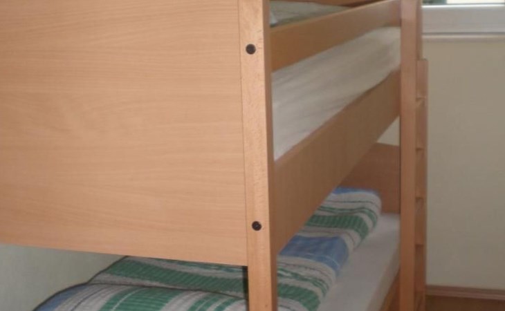 The flat is approx. 45m² in size and is suitable for up to three people. A TV with international programmes, as well as air conditioning from Inverter (with heating function) and W-LAN are available. In addition to two bedrooms with a double bed and three single beds, there is a kitchen as a common room. A small cot can be added. The flat also has a bathroom with toilet, shower cubicle and washbasin, as well as a mirror cabinet and a fully equipped kitchen. In the kitchen there are electric and gas hobs, a fridge with freezer compartment, a microwave with baking function, coffee machine, kettle and cutlery and crockery. Bed linen, towels, drying towels, washing-up liquid and toilet paper are provided and our washing machine can also be used. Washing racks are available in the flat.