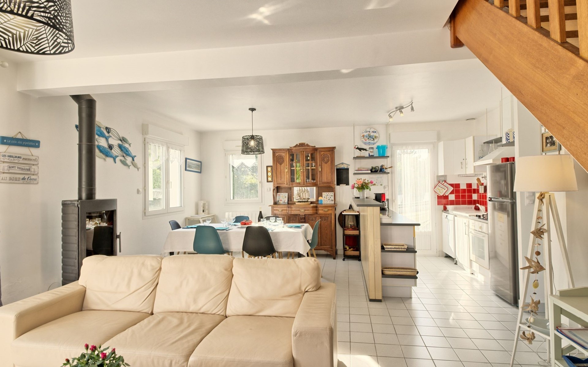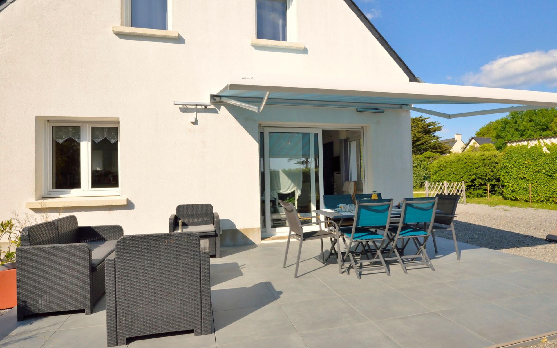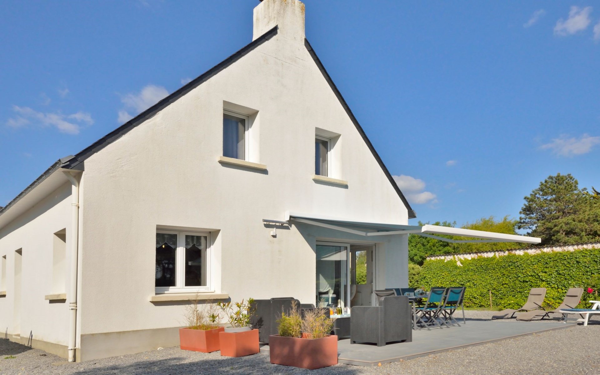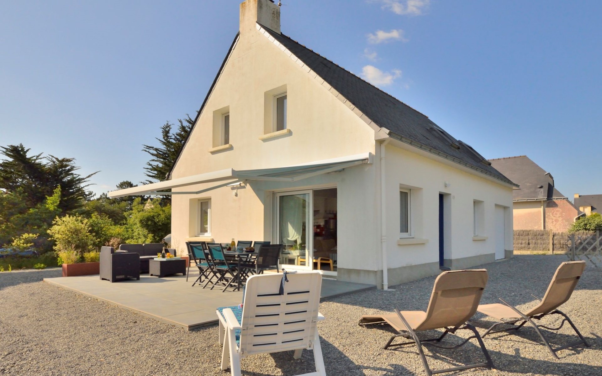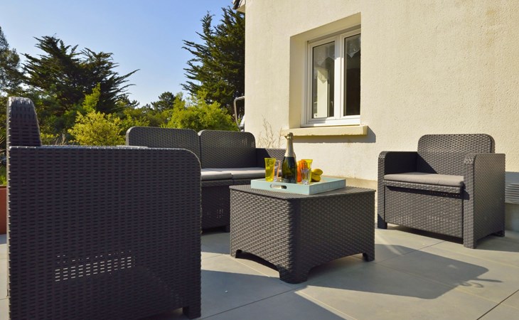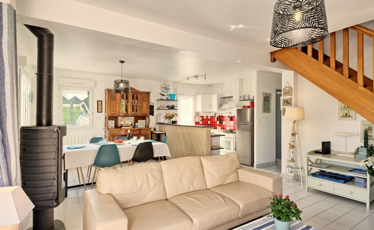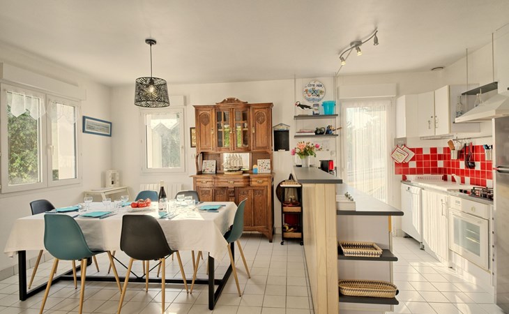 Single-family house "Melflo". 1.5 km from the centre of Piriac-sur-Mer, in the residential district, 500 m from the sea, in a cul-de-sac. Private: property 500 m2, parking on the premises. Grocery 1.5 km, restaurant 1.5 km, bus stop 1.5 km, sandy beach 500 m, indoor swimming pool 3 km. Sports harbour 1.5 km. Nearby attractions: Parc Régional de Brière 12 km, Marais Salants 12 km, Le Croisic 23 km, La Baule-Pornichet 28 km. Hiking paths: GR34.