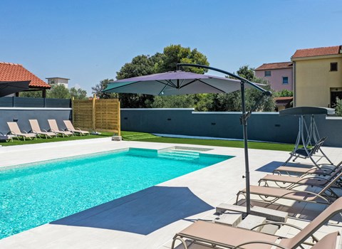 This house is a stone villa, built in the Dalmatian style, surrounded by a park with typical Mediterranean plants, through which a private path leads to the beach. The villa consists of ground floor and first floor. On the ground floor there is a kitchen, dining room with fireplace, two bedrooms and a bathroom. On the first floor there is an aperitif bar with a pool table, two bedrooms with wooden floors, a bathroom and a balcony. The floor is reached via an external staircase. All rooms have air conditioning. Two of the four rooms are furnished with a French bed (150 x 195 cm) and the other two rooms each have two single beds (90 x 195 cm). From the house you can access the large, partially covered terrace with its cosy lounge furniture. Relax by the pool and use the outdoor barbecue to prepare meals. There are plenty of sun loungers available. There is also a small arbour that provides protection from the sun.