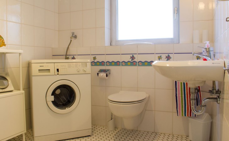 On the ground floor entrance area with cloakroom, shower with WC here is the washing machine