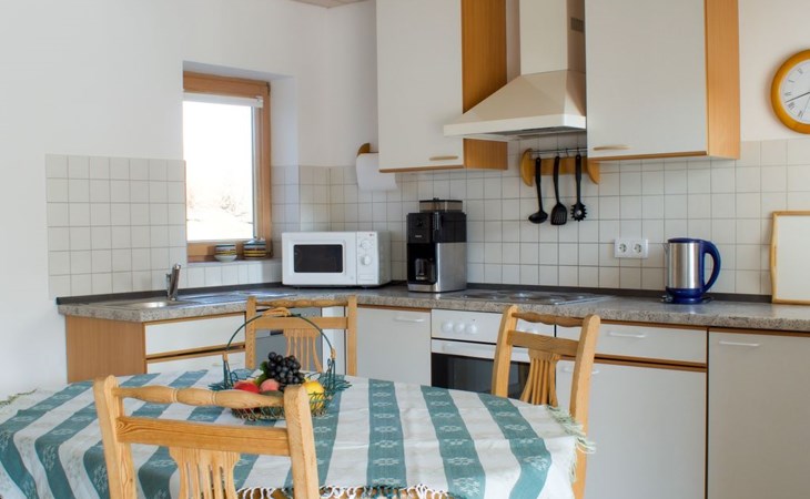 Kitchenette with dishwasher, 4 ring hob, oven, microwave, fridge with freezer compartment, coffee machine for beans and ground coffee
