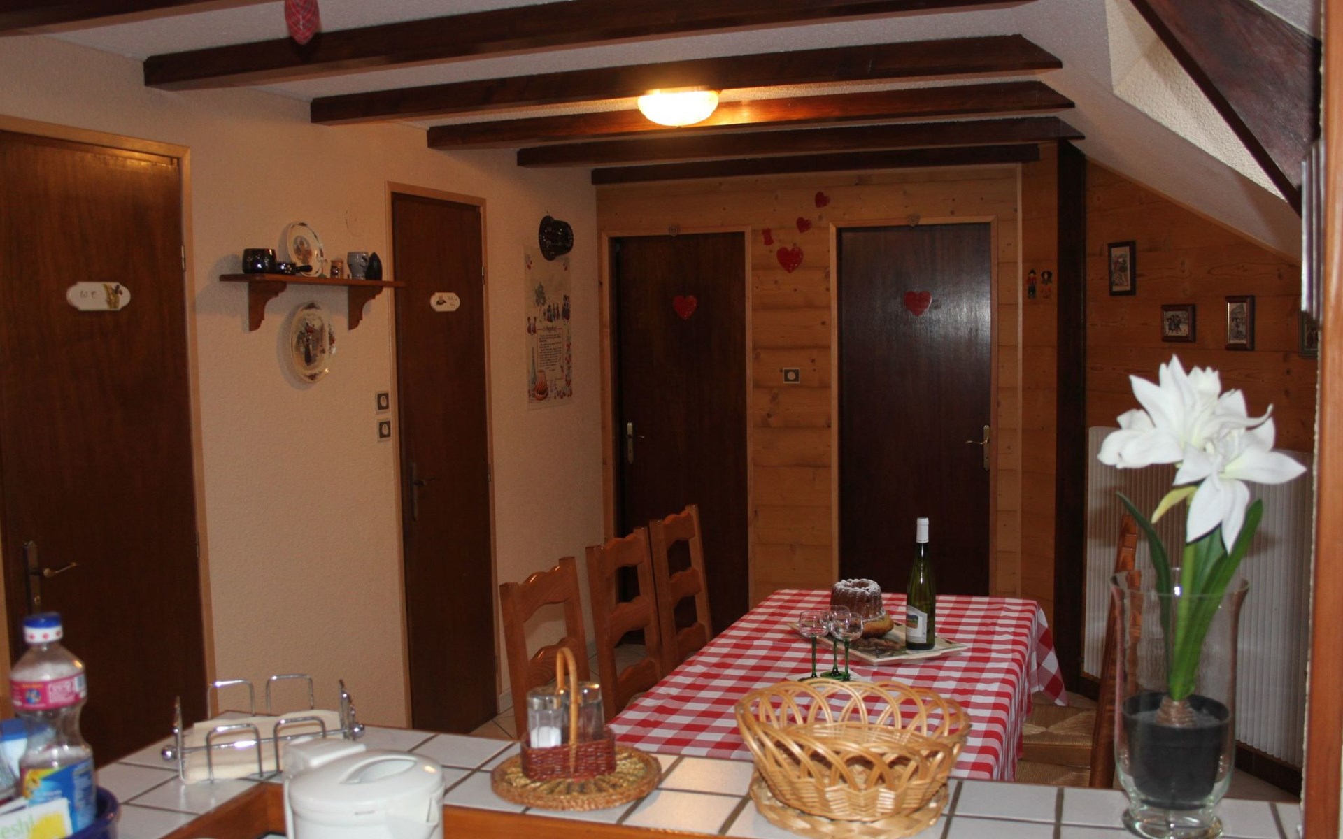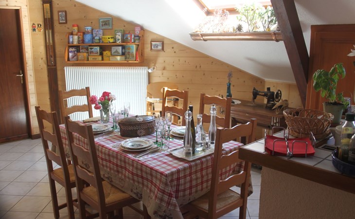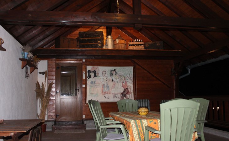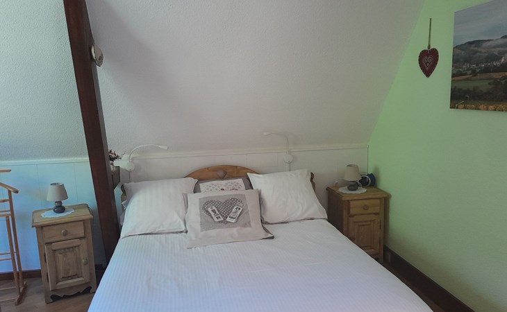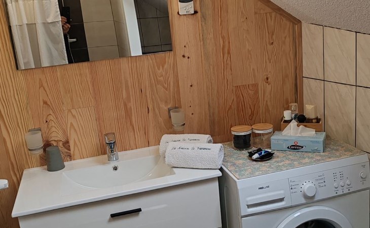 The gîte comprises: - 1 fully-equipped kitchen: oven, dishwasher, microwave, coffee machine, kettle, toaster, various frying pans, etc. - 1 living room with sofa bed, armchair, coffee table, bookcase with many books, mini-stereo with charging station for Iphone, TV (TNT HD) with DVD player (DVDs available free of charge) - 1 dining area with a large table and 6 chairs. 1 bedroom with a 160 x 200 bed, two bedside tables, a wardrobe and a cot. 1 bedroom with two separate 90 x 190 beds, wardrobe and bedside tables. - 1 WC separate from the showers. - 1 shower room with shower, washbasin, washing machine and storage cupboard for towels (provided free of charge). - 1 large covered terrace with barbecue and garden furniture. On the ground floor you will find a room dedicated to the various options we can offer you, such as breakfasts, table d'hôtes, etc.