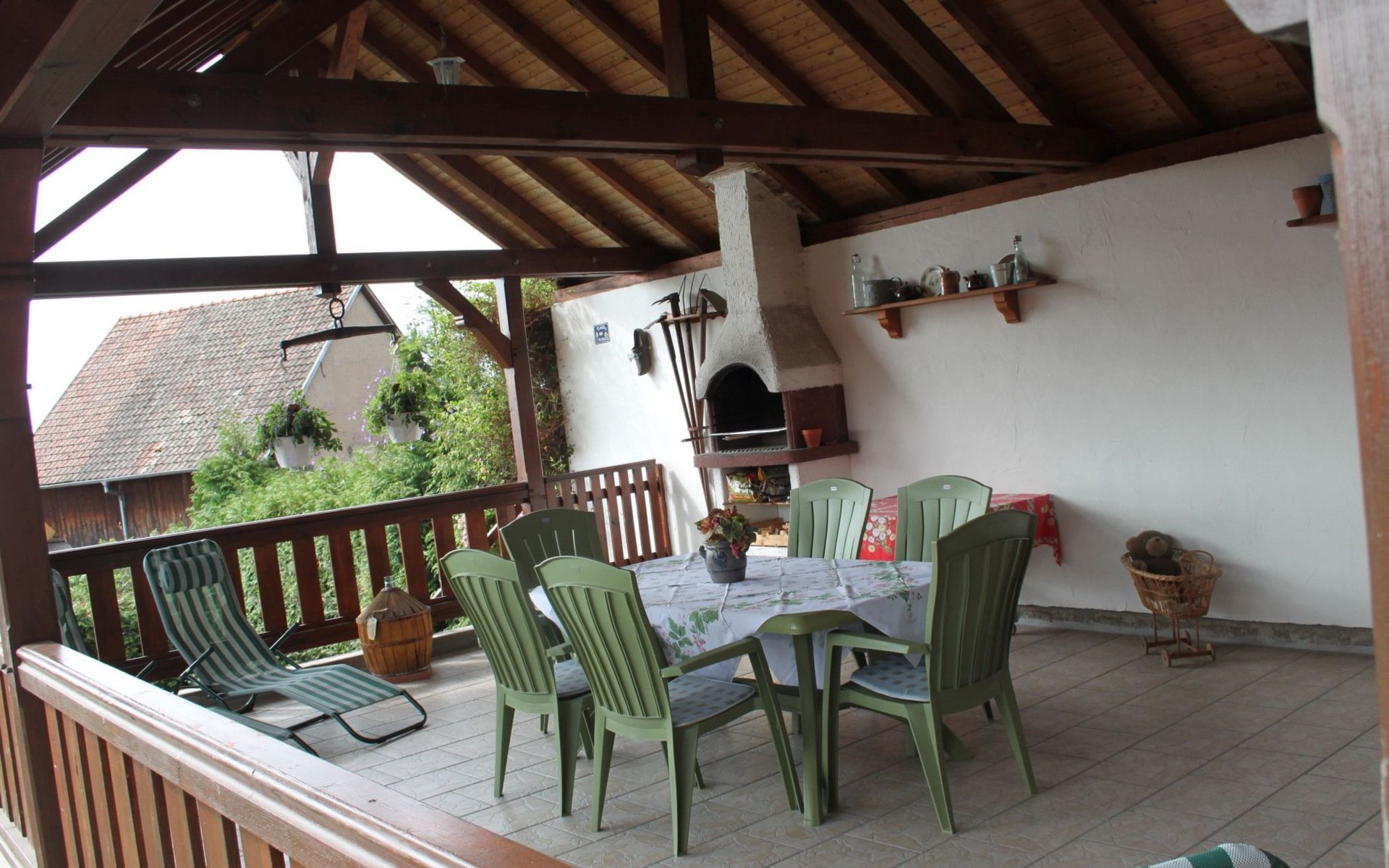 A large 35m2 private covered terrace with barbecue and garden furniture. A courtyard for parking cars. A 60 m2 lawn area with table, chairs and bench is at your disposal.