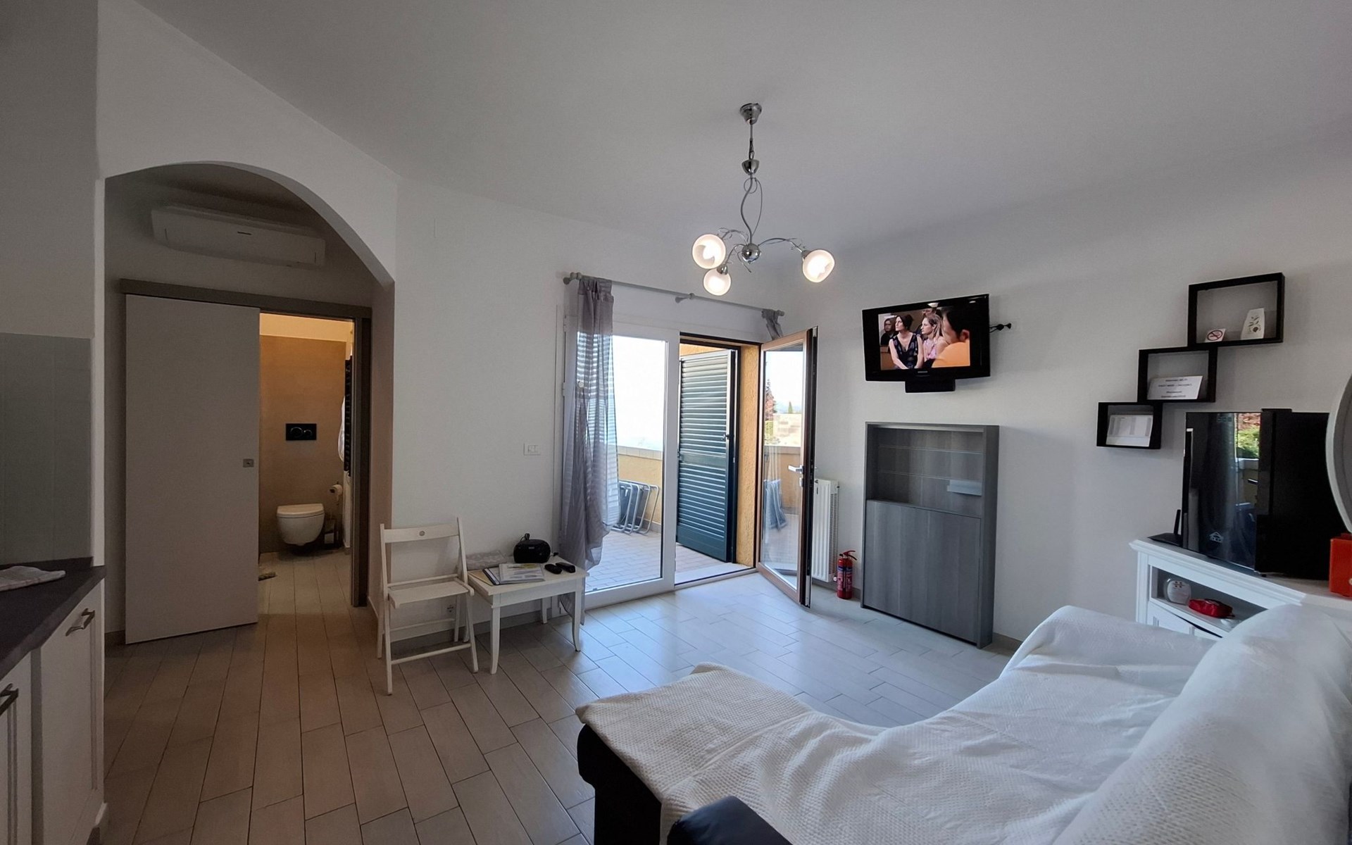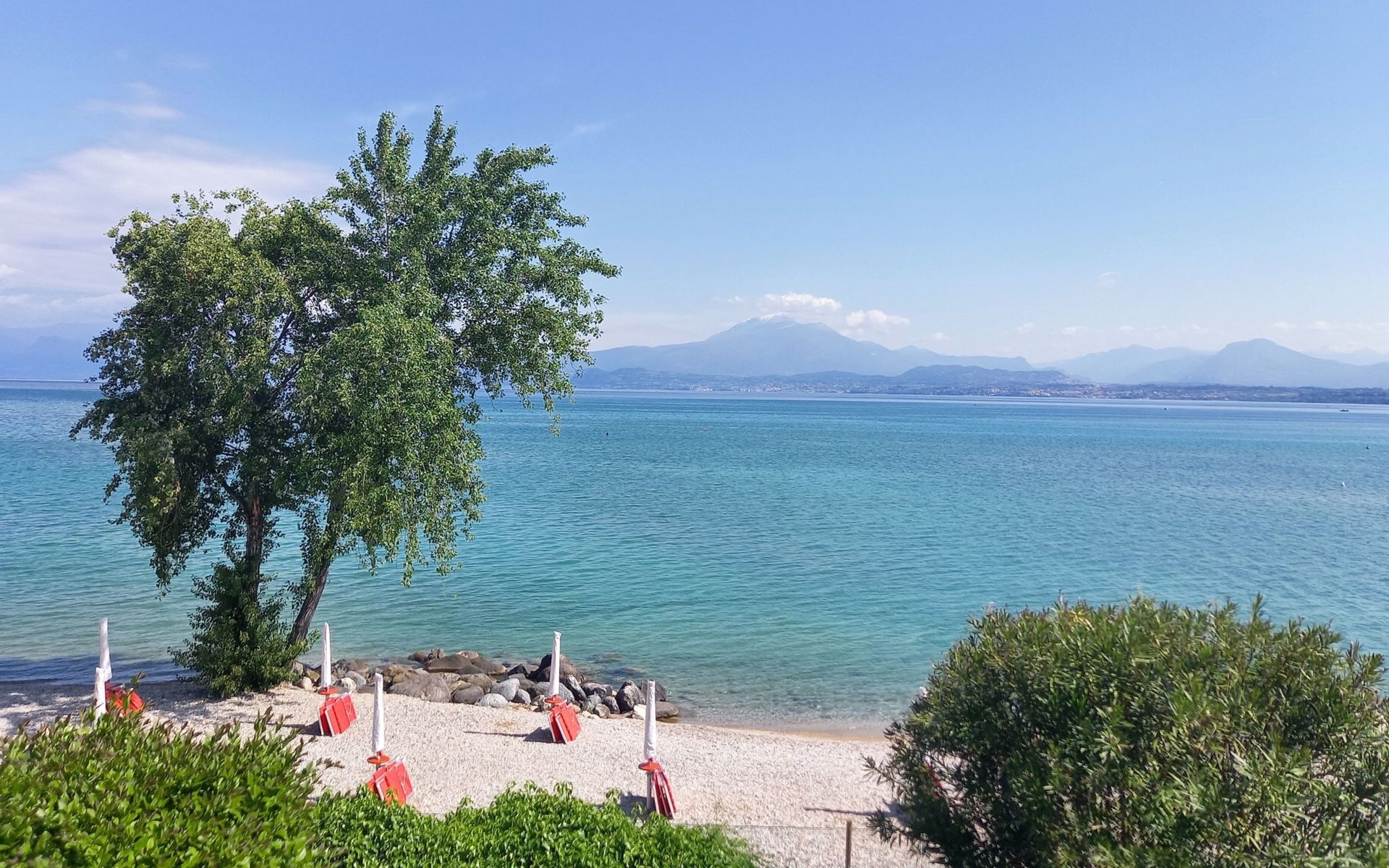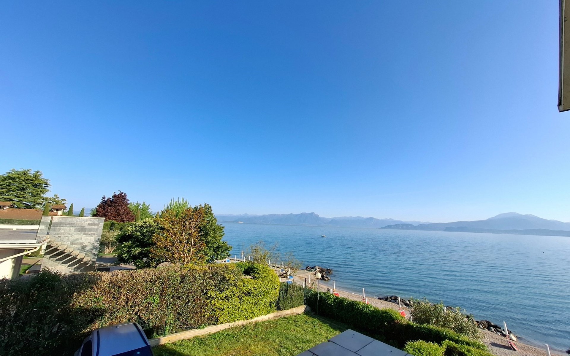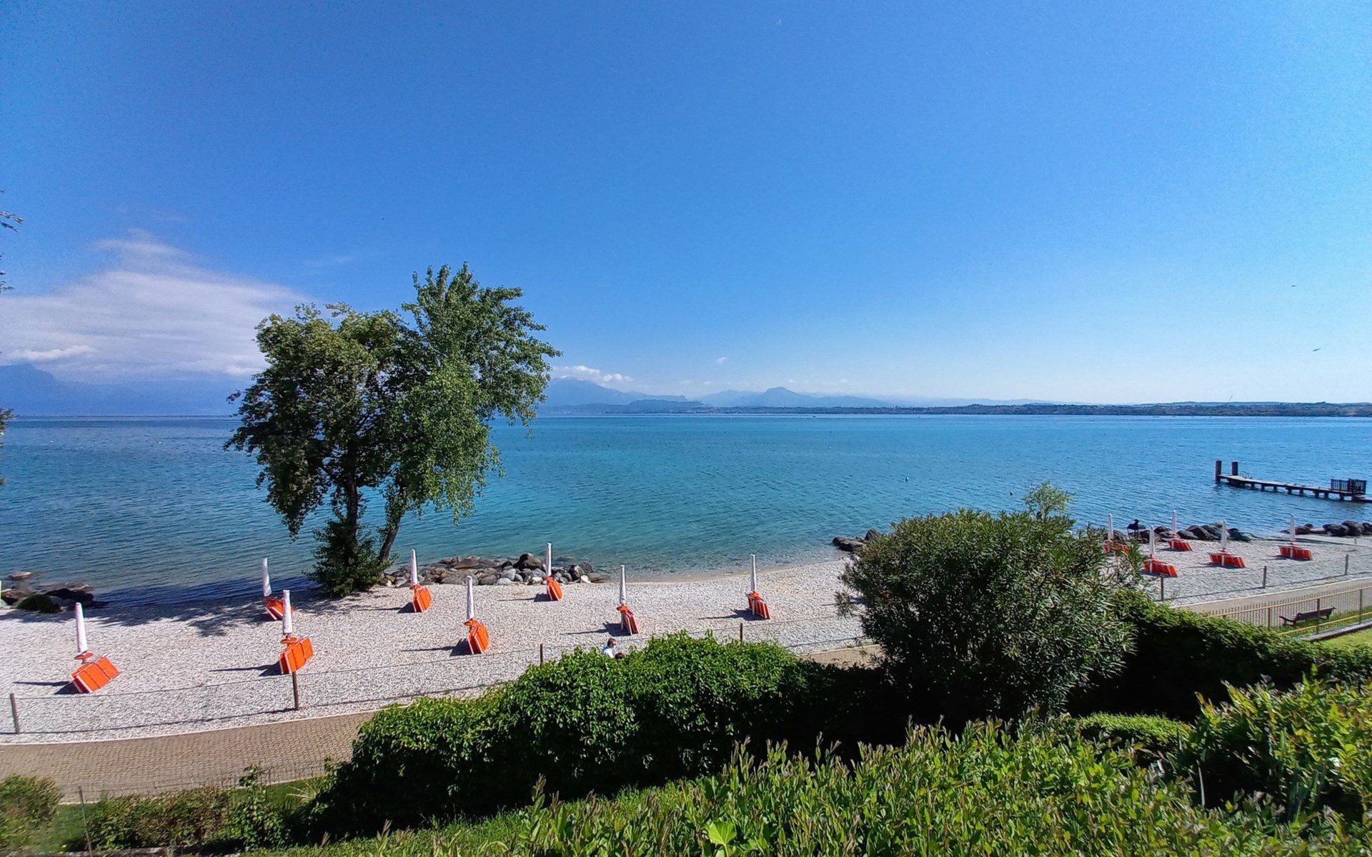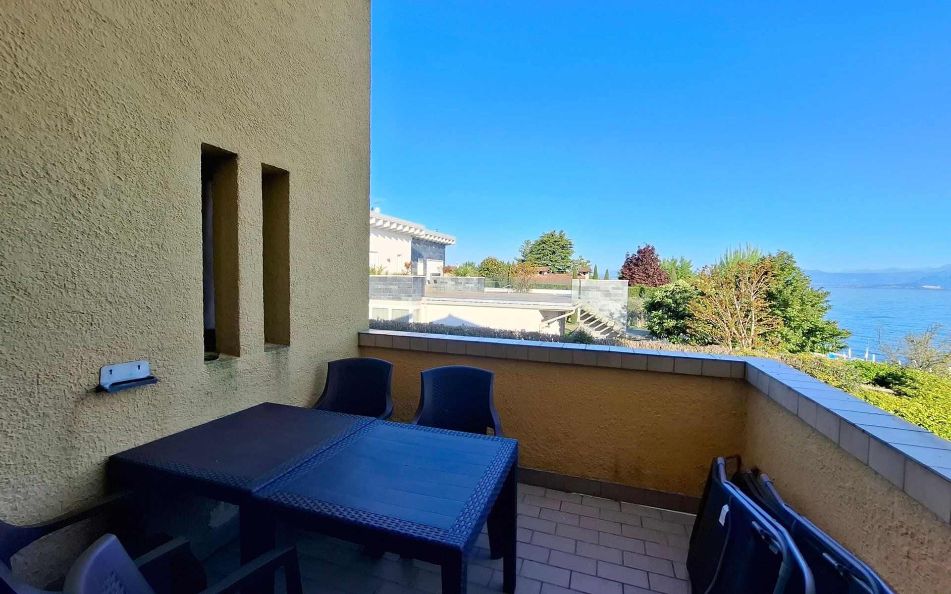 The holiday flat is located in an enviable position near Peschiera del Garda, with shopping facilities just 600 metres away and the nearest restaurant directly on the lakeshore about 400 metres away. Discover the surrounding amusement parks such as Gardaland and the Natura Viva Safari Park or immerse yourself in the spas of the thermal park in Colá near Lazise. The cultural treasures of cities such as Verona and Venice are also within easy reach.