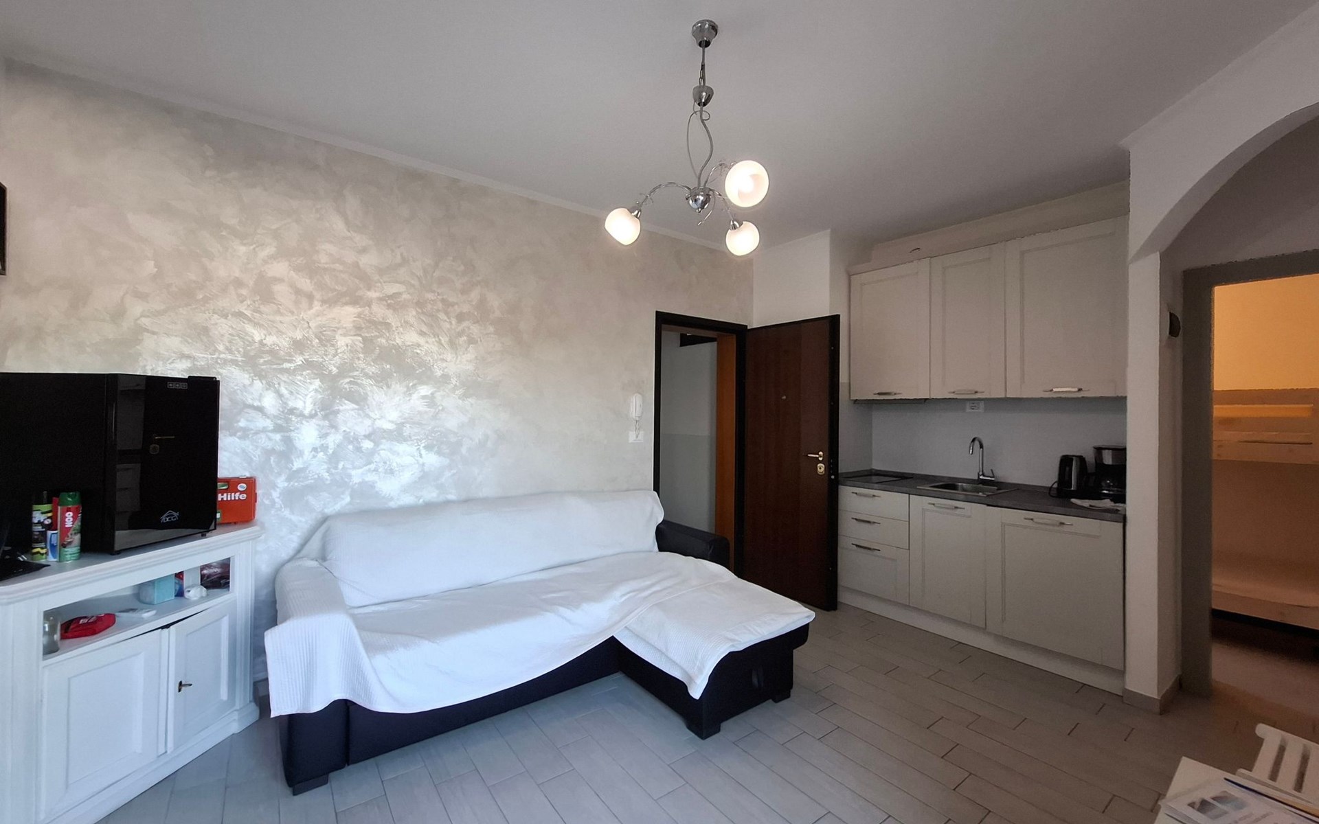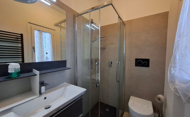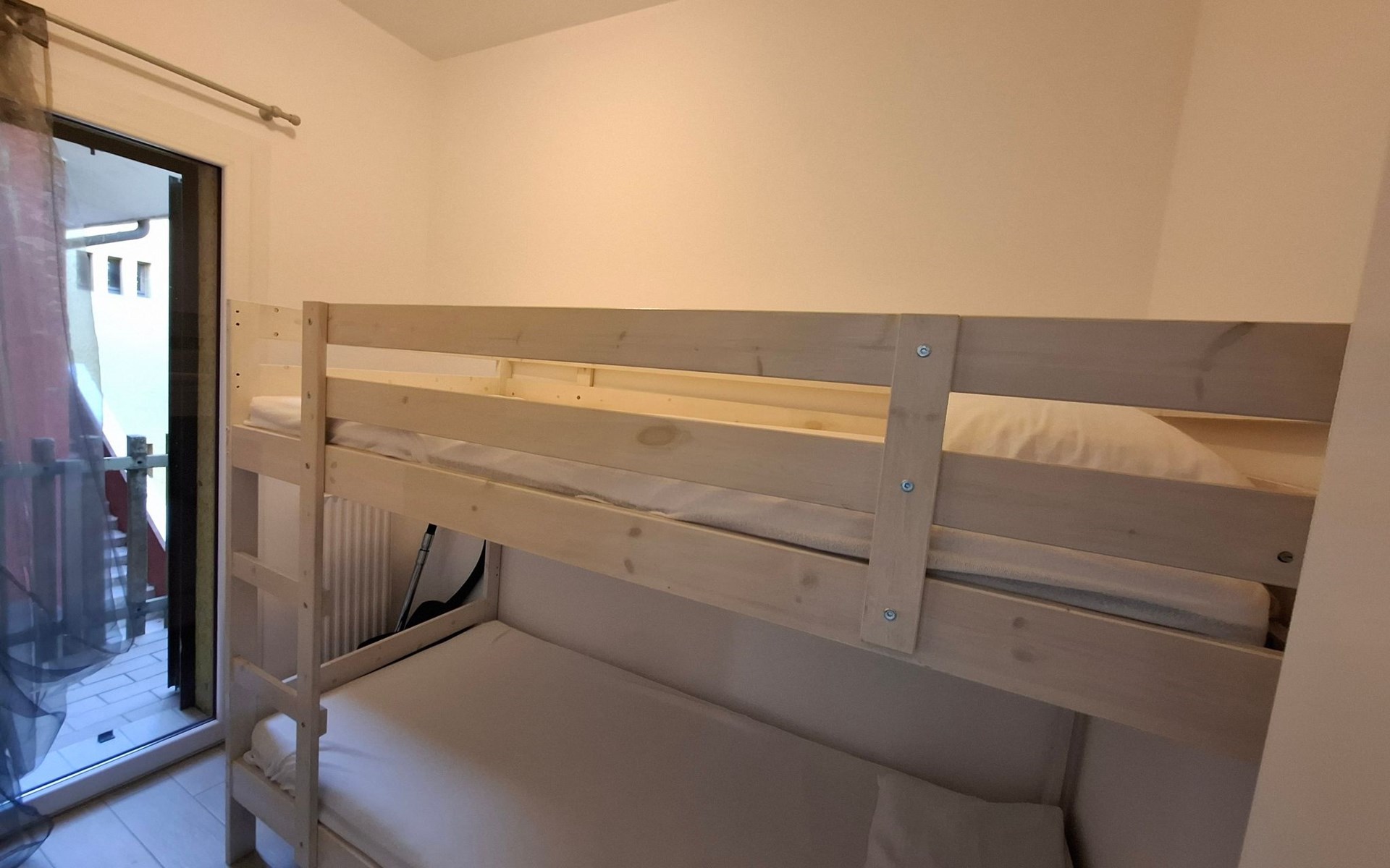 Inside, a lovingly furnished flat of around 50 m² awaits you, leaving nothing to be desired. It has a cosy living room with sofa bed and satellite TV, a fully equipped kitchen, two bedrooms - one with a double bed and one with bunk beds - and a bathroom with shower and WC. Facilities include air conditioning, unlimited Wi-Fi, a first aid kit and a wide range of household appliances to make your stay as comfortable as possible.