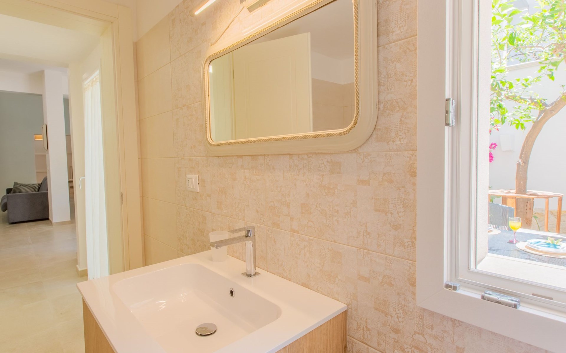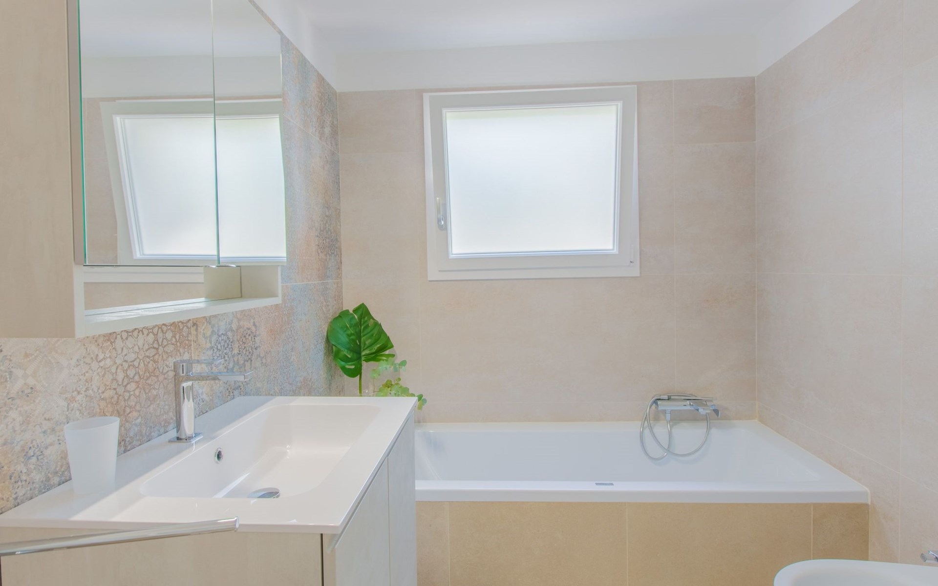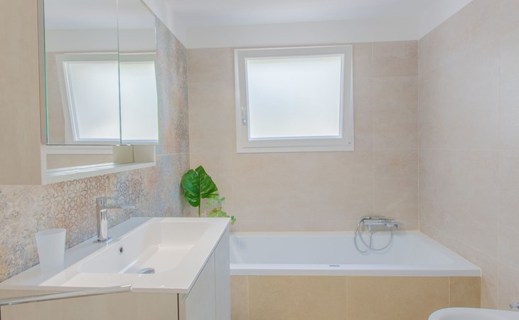 n.1 double bedroom, n.1 bedroom with two single beds that can be joined together and a window overlooking the living room, n.1 living room with kitchenette and double sofa bed, n.1 bathroom with bathtub, n.1 bathroom with shower, n.1 entrance hall. A cot is offered on request.