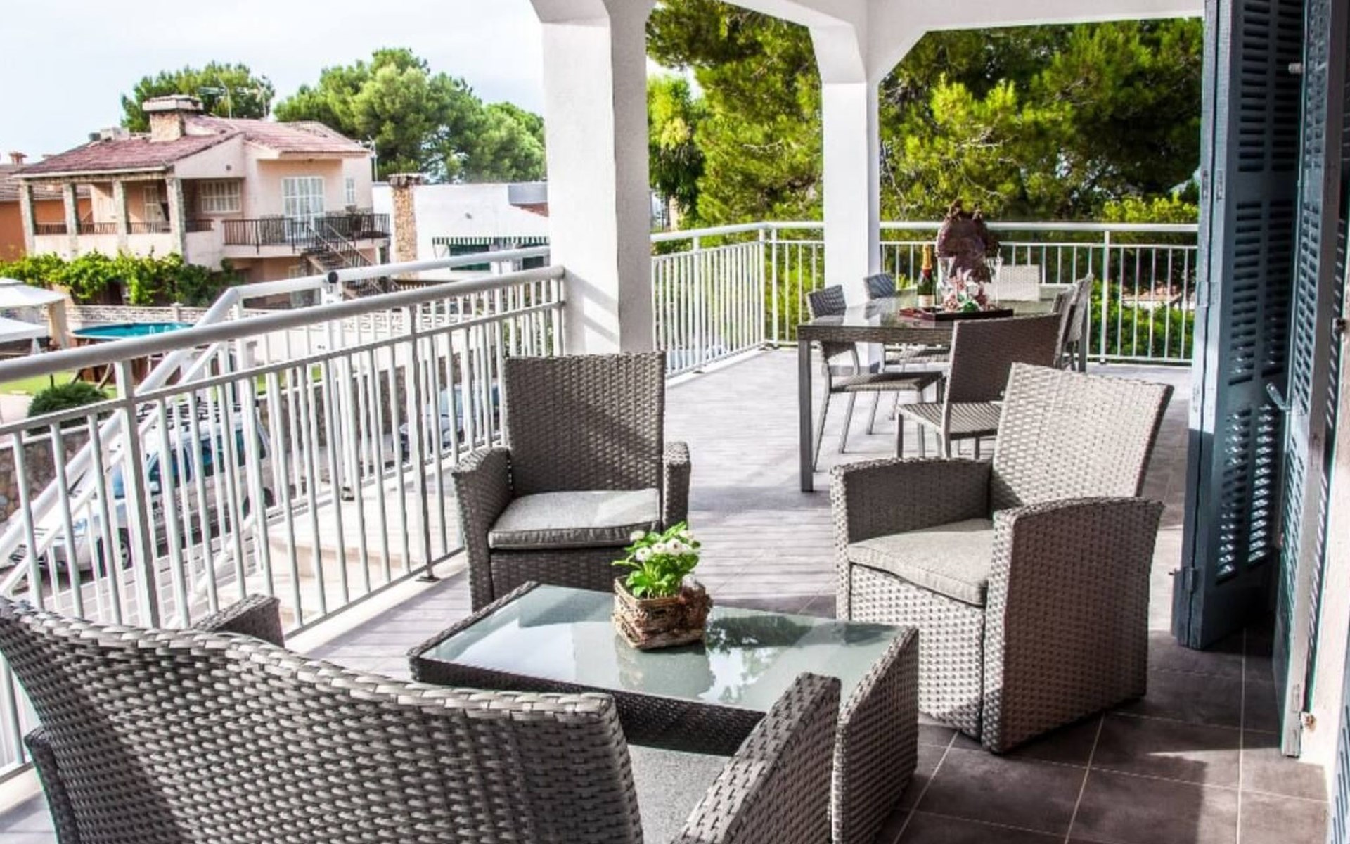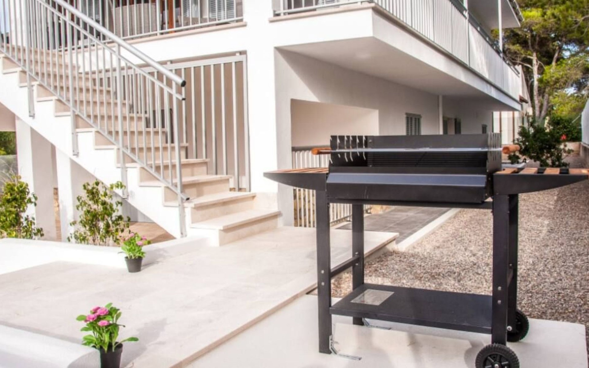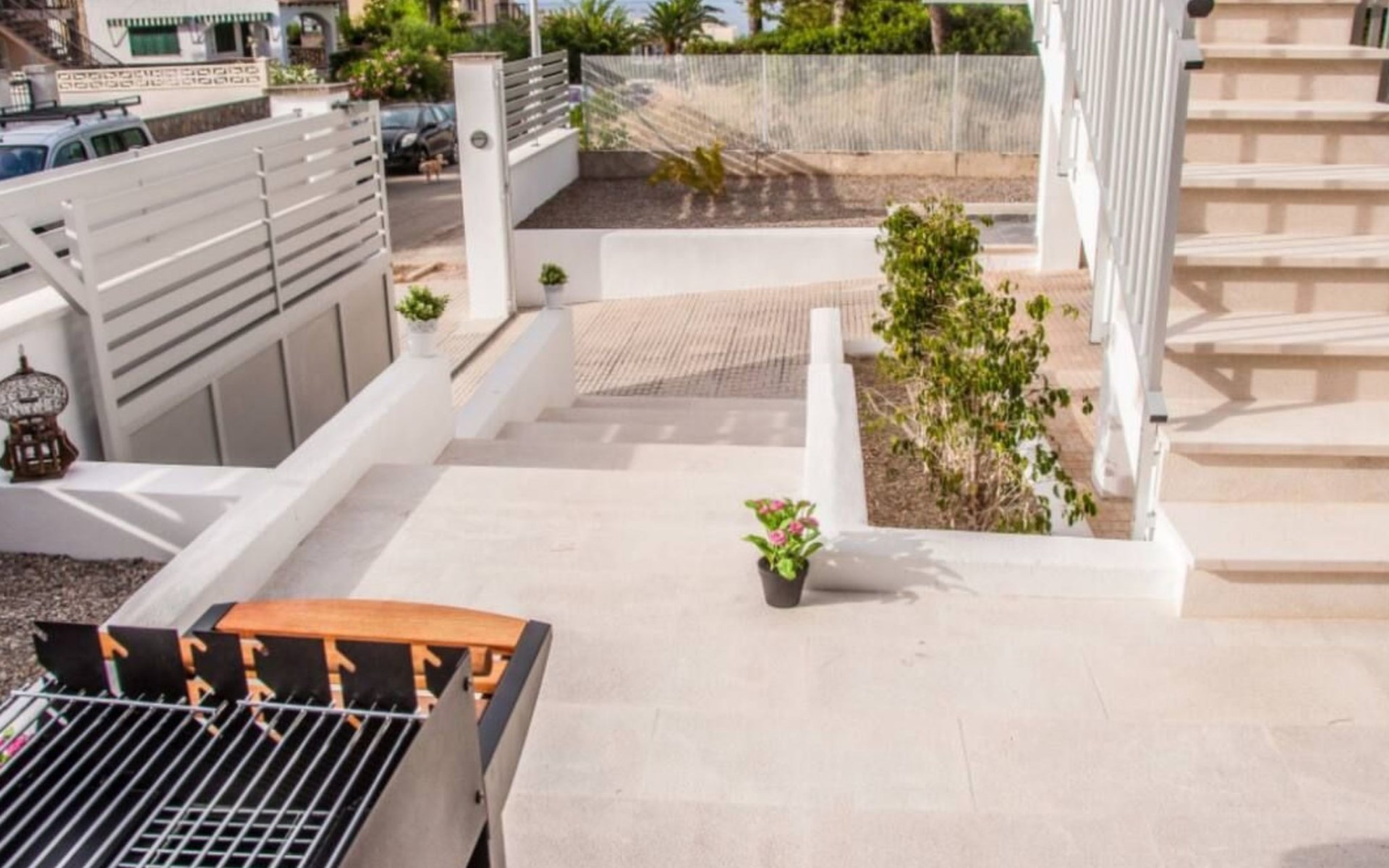 The exterior of the house is a true paradise for those who love the outdoors. The large terrace offers the perfect space to relax, whether sunbathing or enjoying a barbecue in good company. The outdoor shower is ideal for cooling off after a day at the beach, and the on-site parking eliminates any worries about where to leave your vehicle.