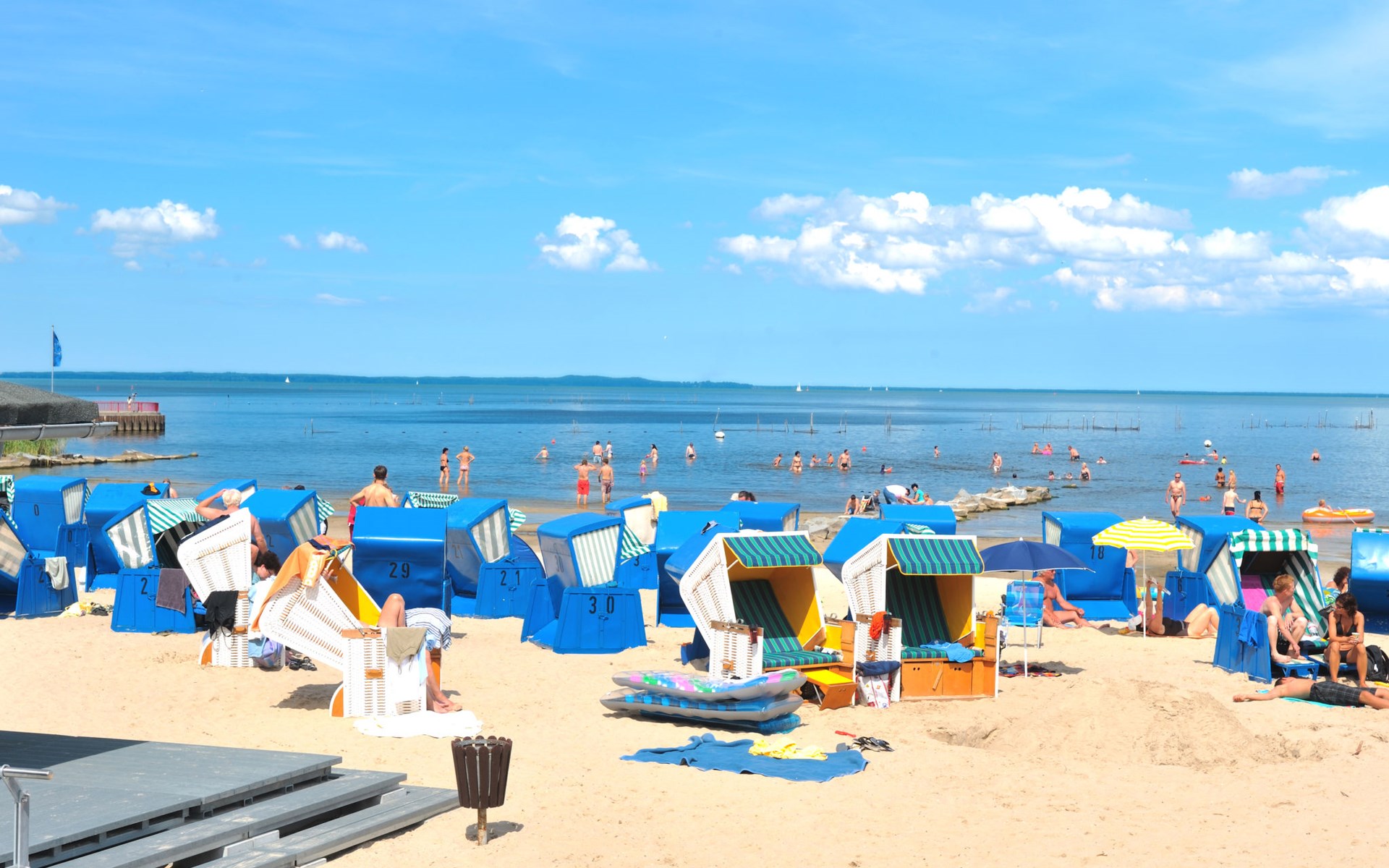 The surrounding area has something for everyone. The beach is just 500 metres away, and there is also a restaurant and a snack bar for your physical well-being. The first shopping facilities are approx. 800 metres away. Sports enthusiasts can look forward to a wide range of activities: from fishing, canoeing, climbing and cycling tours to horse riding and sailing. Ueckermünde itself fascinates with water, forest, beautiful hiking trails, an old town centre and a wide range of leisure activities.