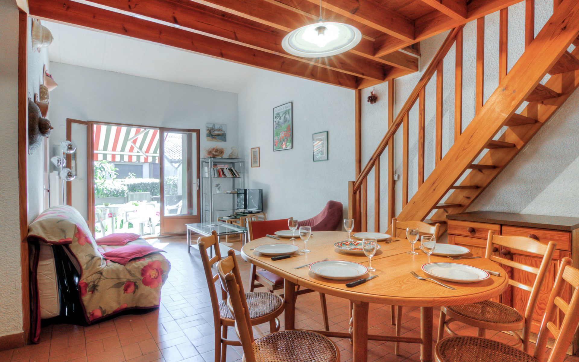Seignosse Le Penon 6 km from Hossegor: The residence "Juncades" is a complex of terraced houses, lush green surroundings. Terraced house "Juncades". 500 m from the sea, 5 km from the lake. Parking. Shop 800 m, sandy beach 500 m. Golf course (18 hole) 3.5 km, tennis 300 m.