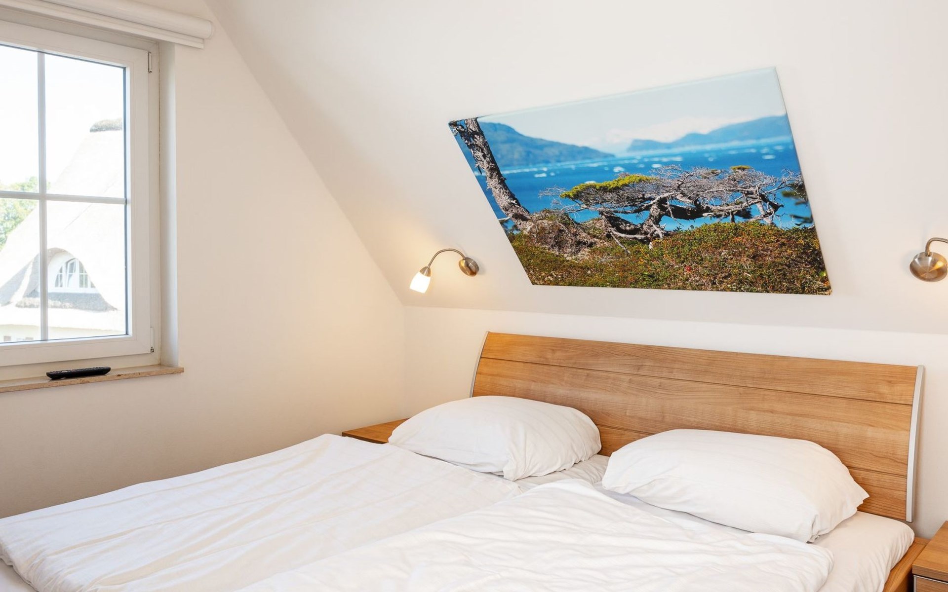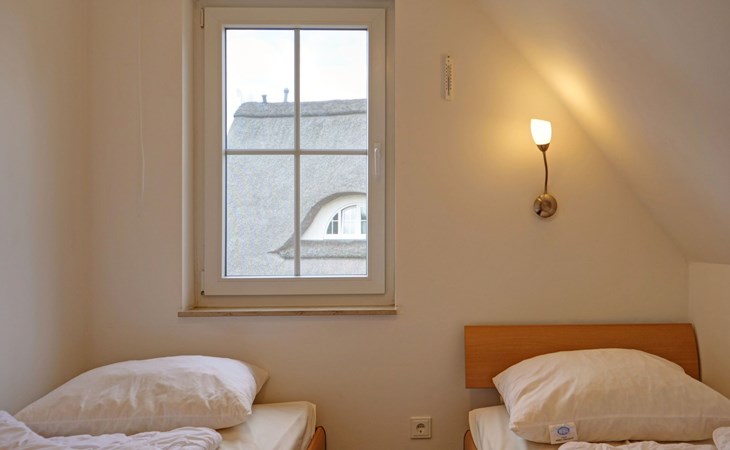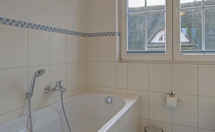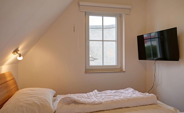 The child-friendly FAMILY house offers around 89 m² of living space for up to 8 guests - ideally four adults and four children. It has two bedrooms with double beds and two more with single beds, complemented by modern furnishings that leave nothing to be desired: two bathrooms (with shower on the ground floor and bathtub on the upper floor), including hairdryer, a fully equipped fitted kitchen with dishwasher, microwave and oven as well as a flat-screen TV with soundbar and radio. There is another TV in one of the upstairs bedrooms.