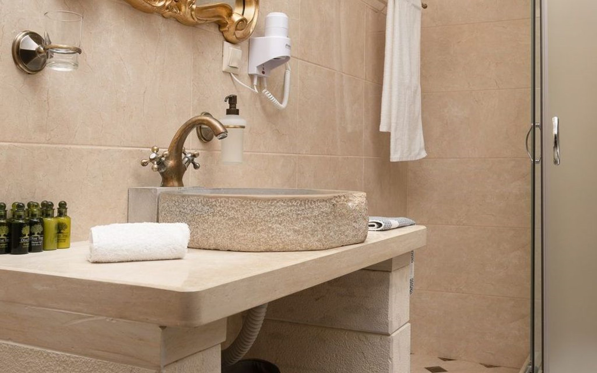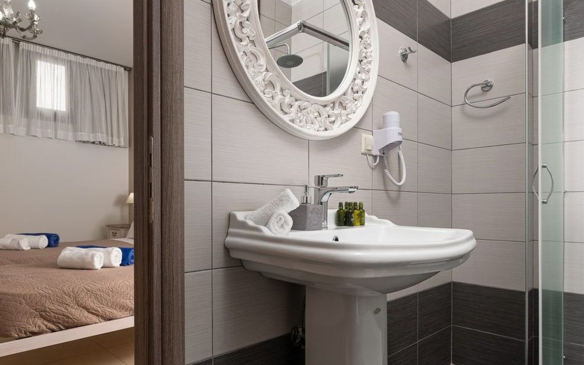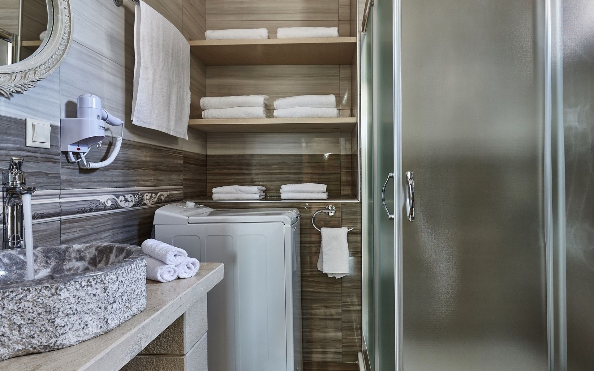 The bathrooms are well equipped with shower cubicle, shampoo, towel sets, hairdryer and a first aid kit, in one bathroom there is a washing machine.