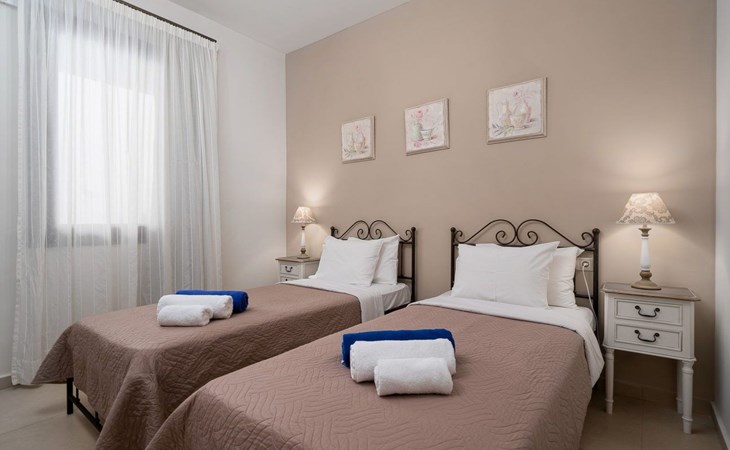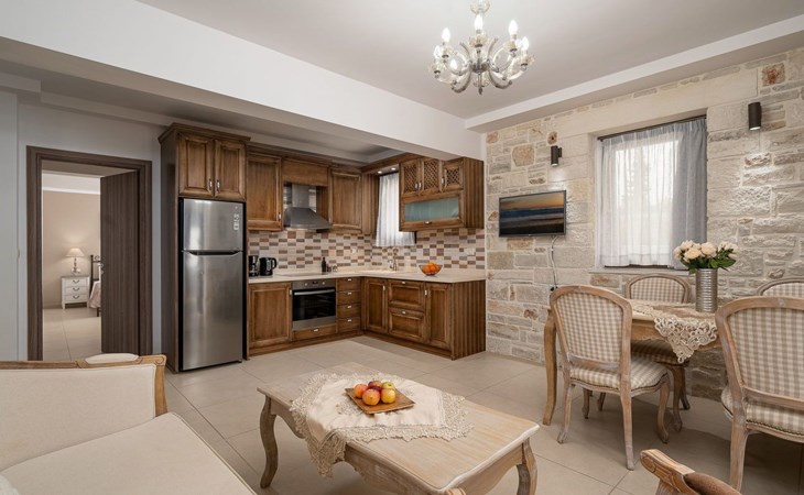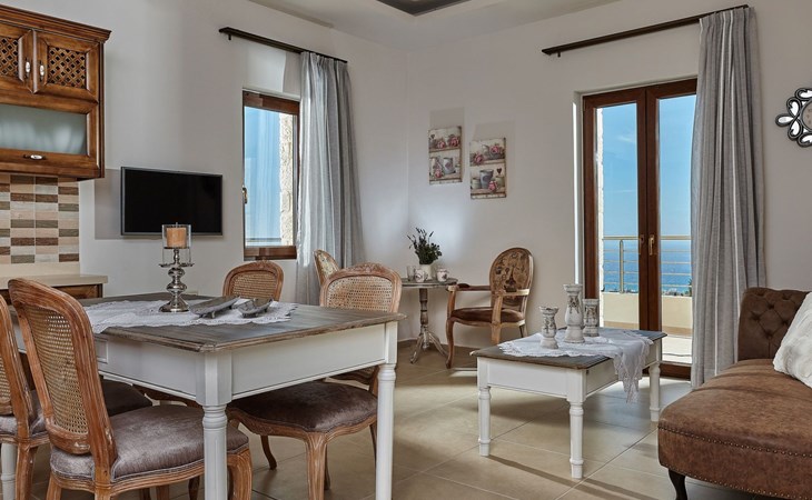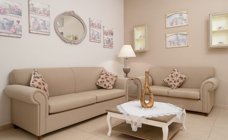Voula studied philosophy in Athens but her love for Crete brought her back to the beautiful island. Her father, a former captain, built the villas and the new luxury flats with the utmost respect for the island's architecture. In addition to their involvement in agriculture, the family has a special focus on what Crete is famous for: "Cretan hospitality".
