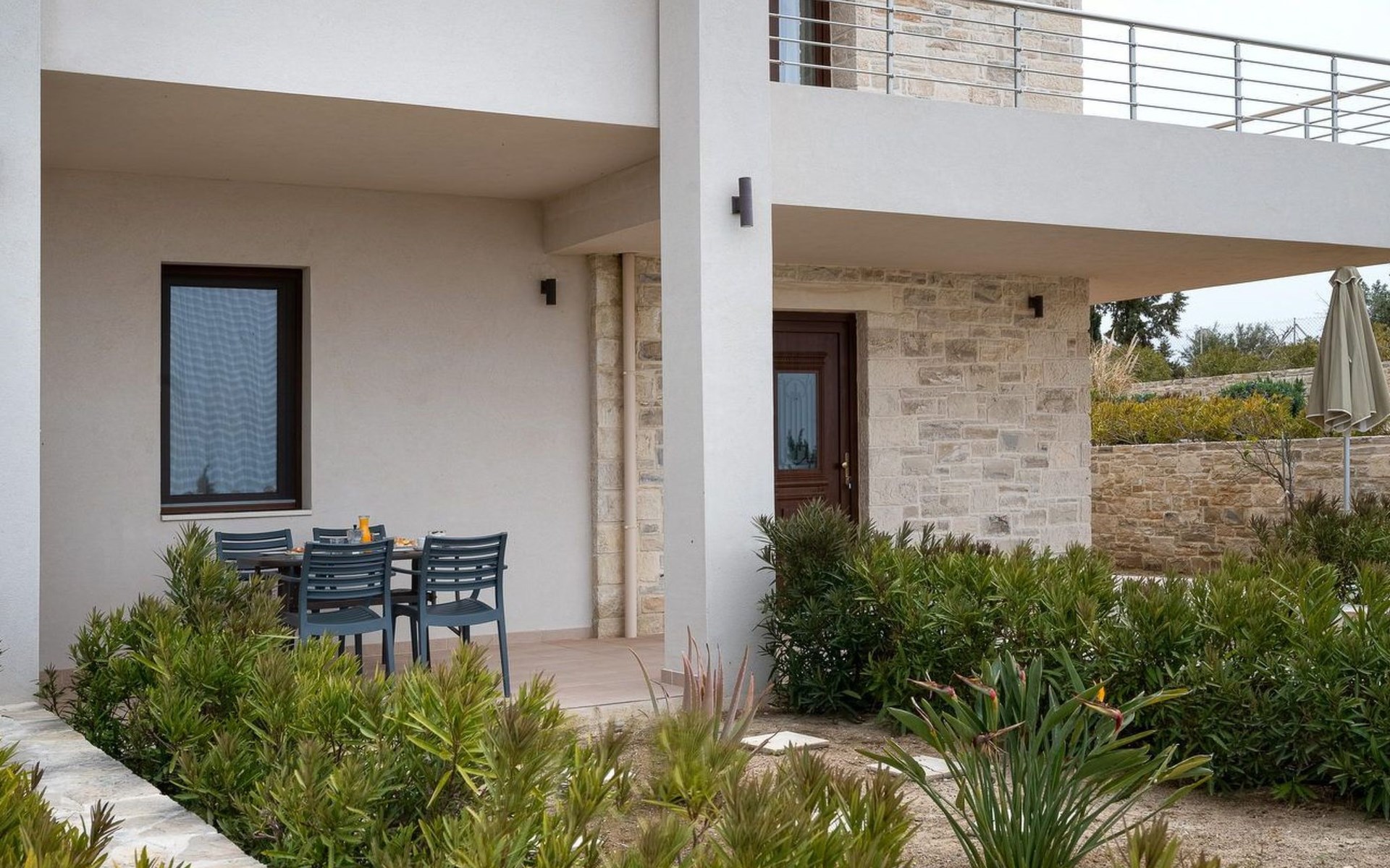 - The balcony or terrace is fully equipped with tables and chairs and a parasol.