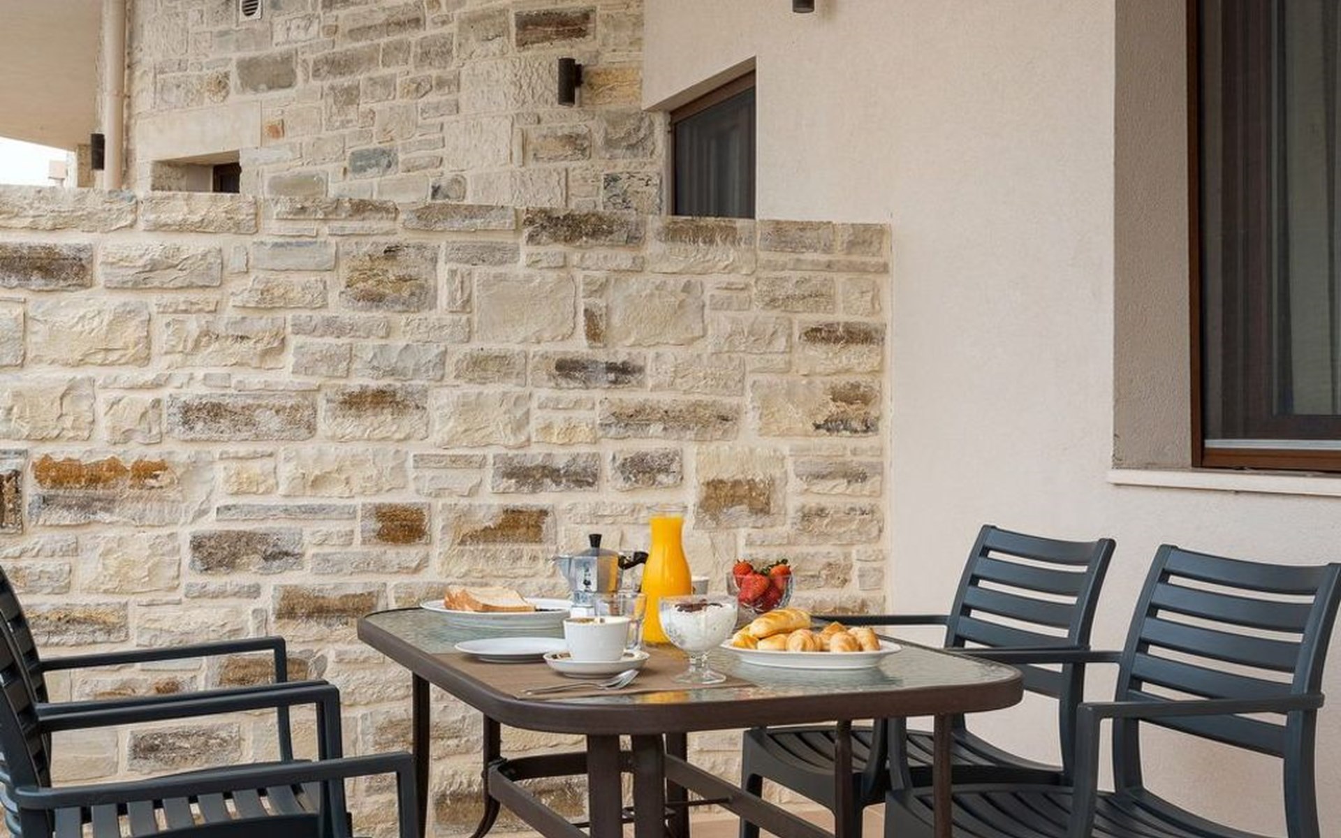 Each holiday flat has its own entrance with a private balcony or terrace, so you can enjoy your coffee or meals in complete serenity at any time of the day. Whenever you arrive to start your holiday, everything you need for a pleasant stay will be waiting for you, including a welcome basket.