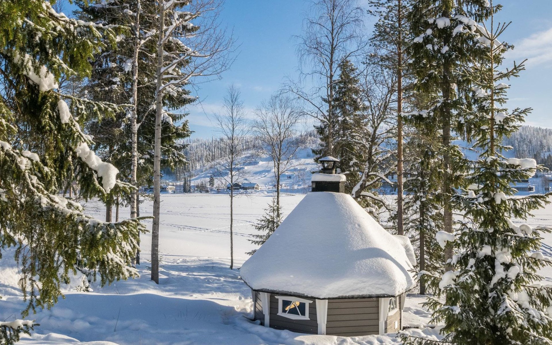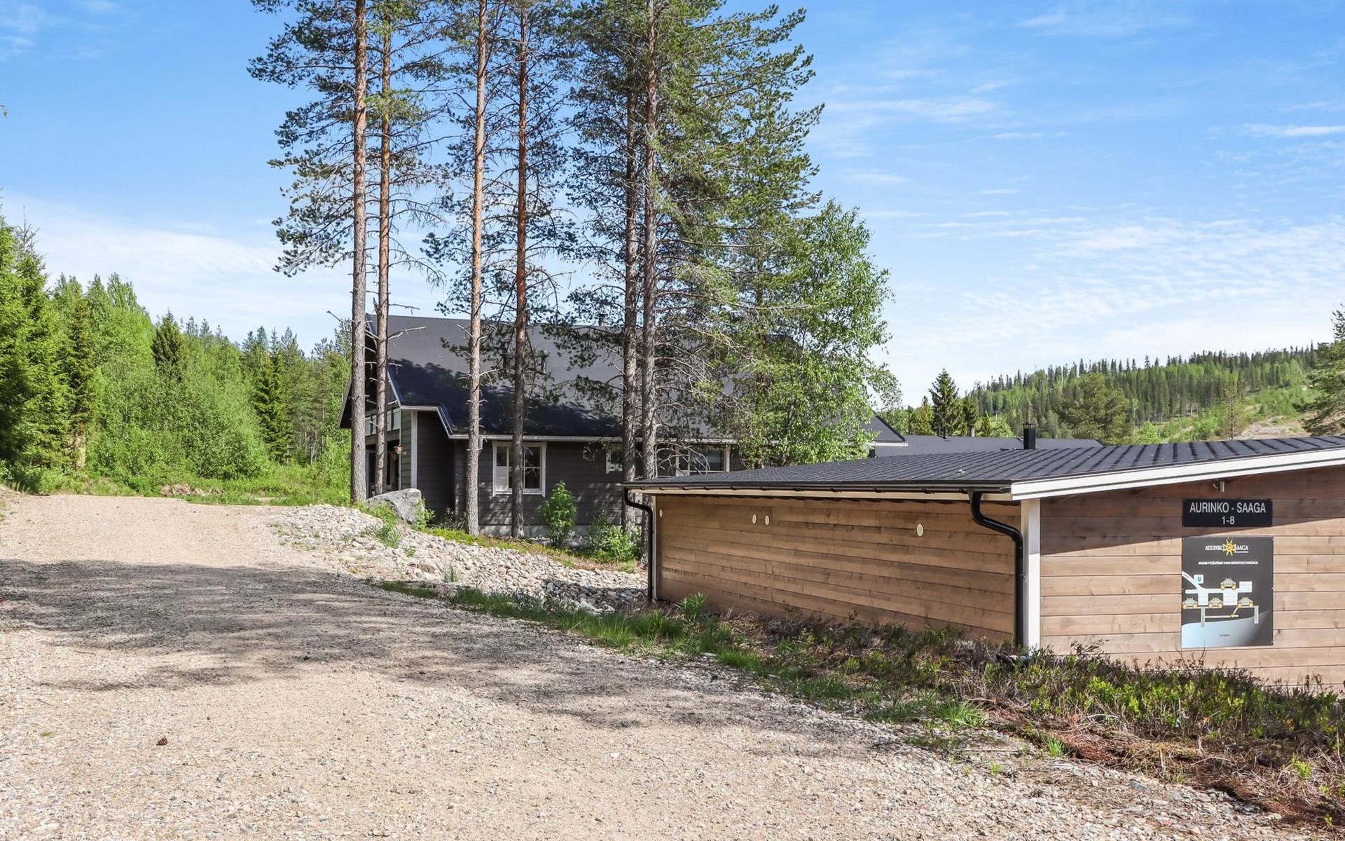 Distance to the Ukkohalla services 0.7 km. Kajaani airport 86 km, Oulu 170 km, Helsinki 650 km, bus stop Hyrynsalmi 18 km, railway station Kontiomäki 66 km.