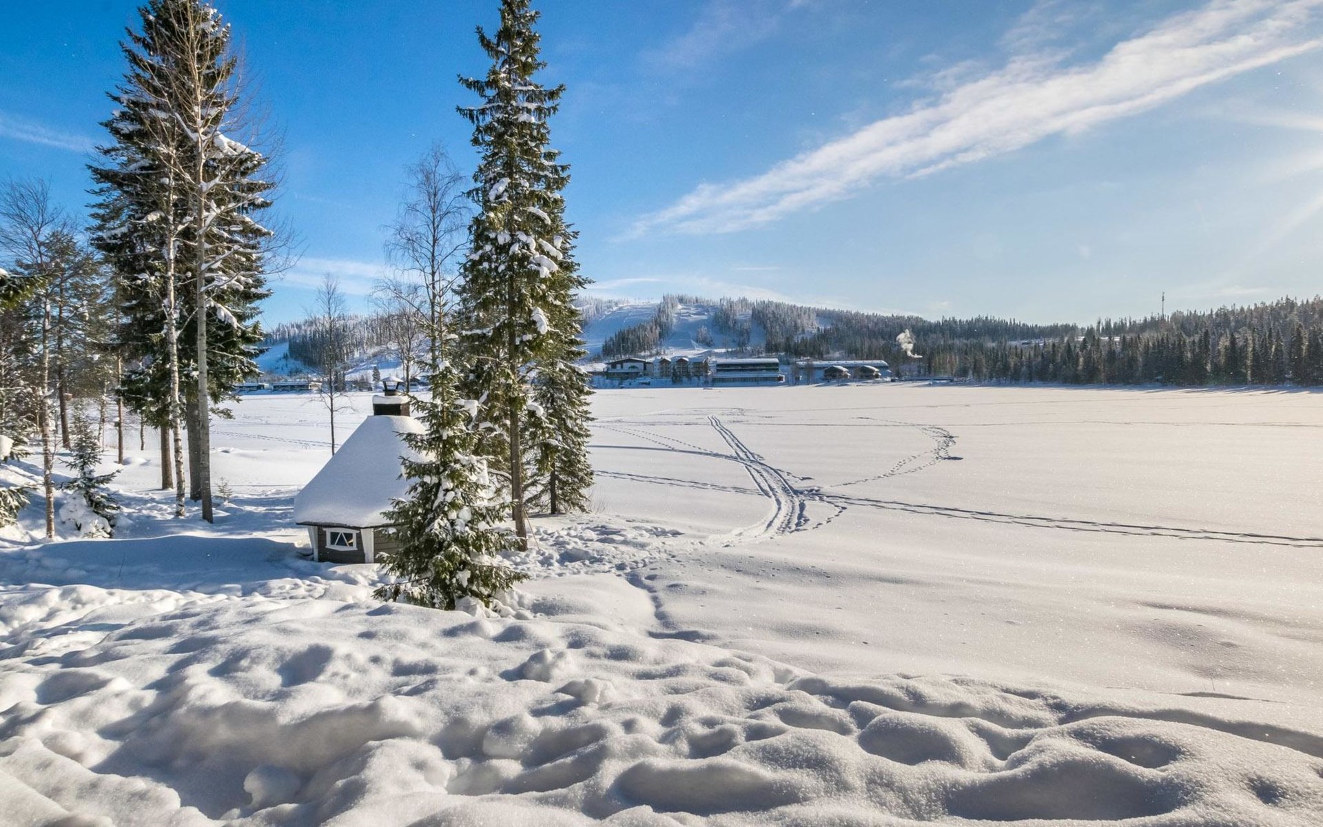 Beautiful view over the slopes and Lake Syväjärvi.