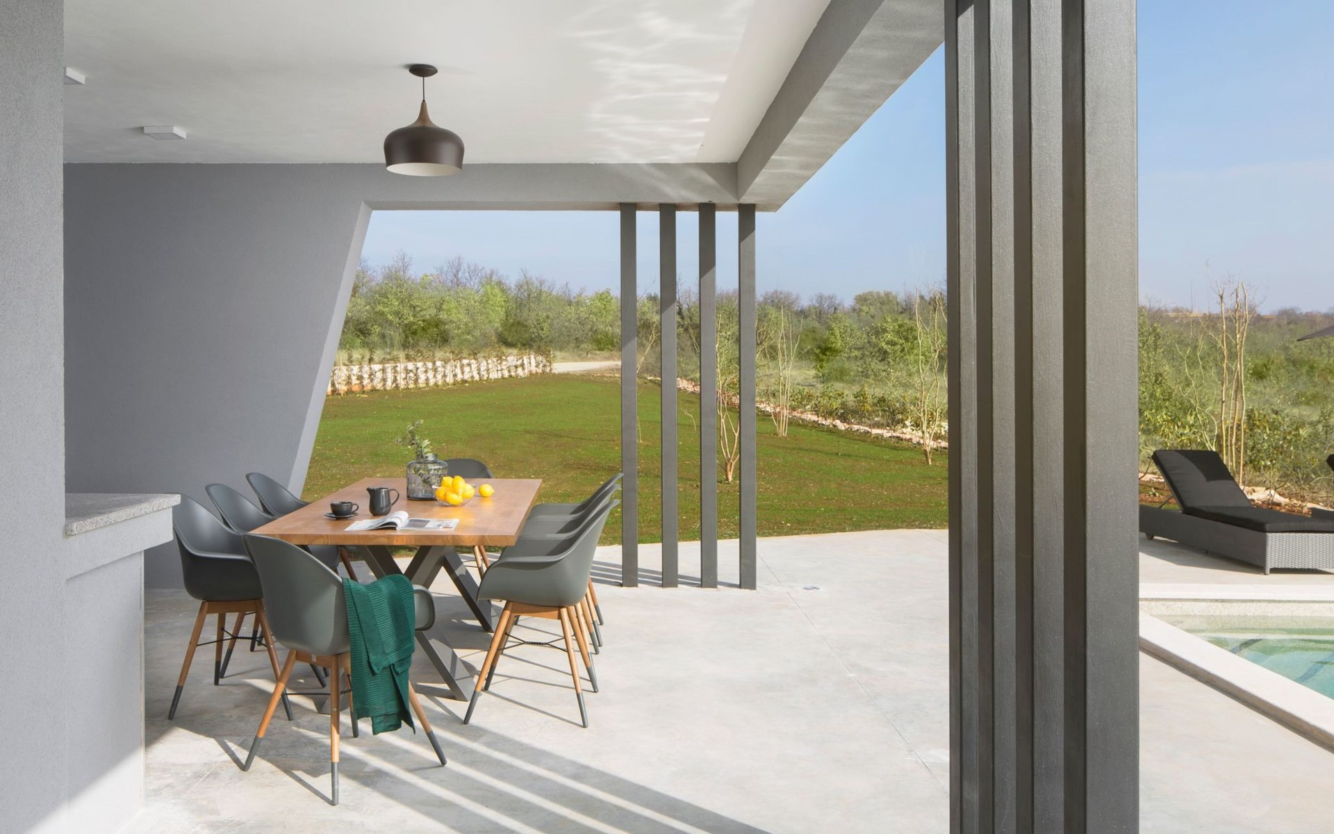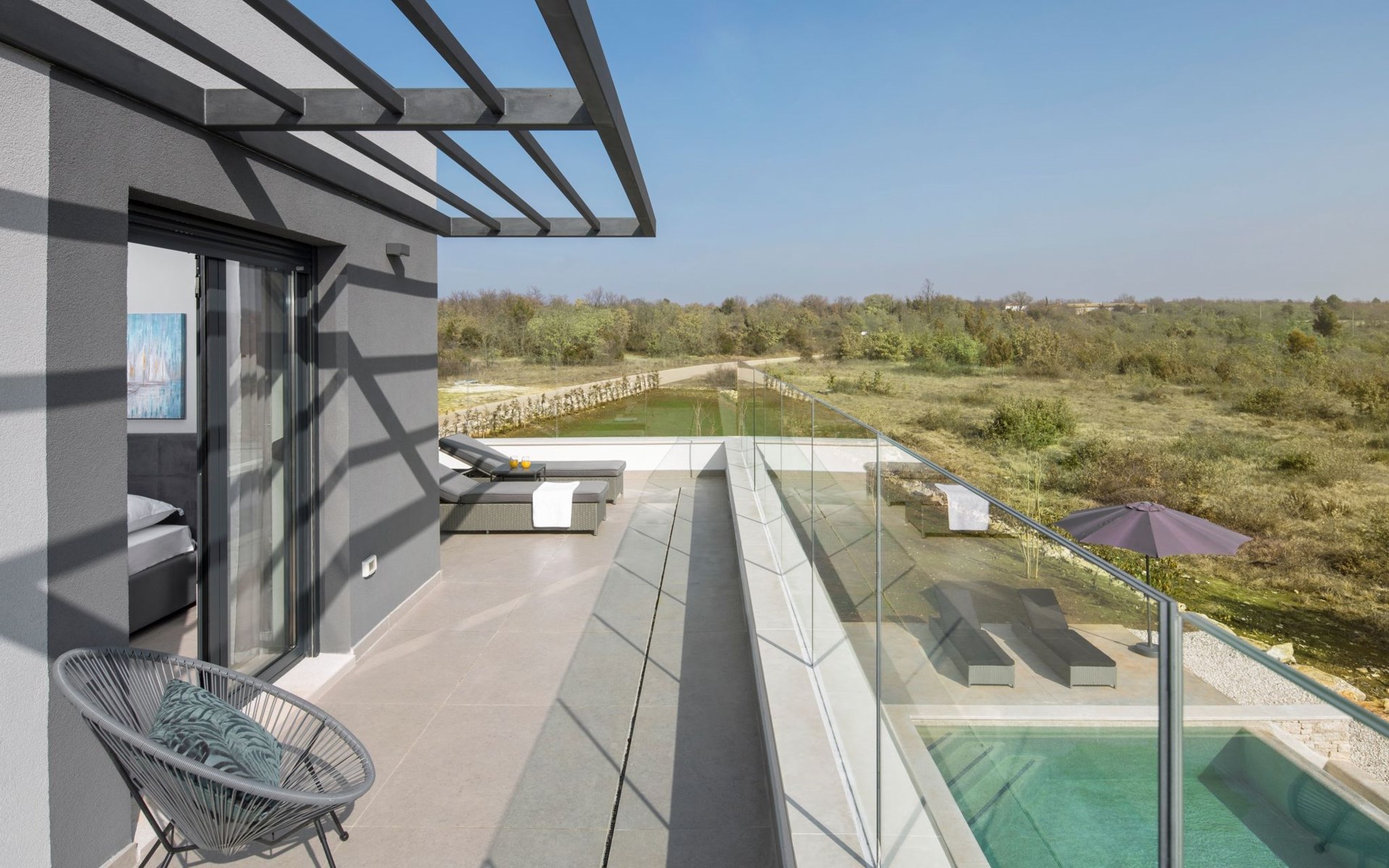 The outdoor area of Villa Infinity is as inviting as its interior. A private pool is the centerpiece, perfect for cooling off on hot summer days or simply lounging by the water. The terrace provides a lovely setting for al fresco dining, or simply enjoying the peaceful surroundings. The grounds are well-maintained, ensuring that every moment spent outside is as enjoyable as those spent indoors.