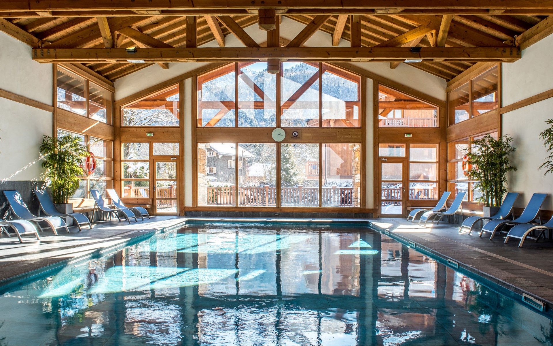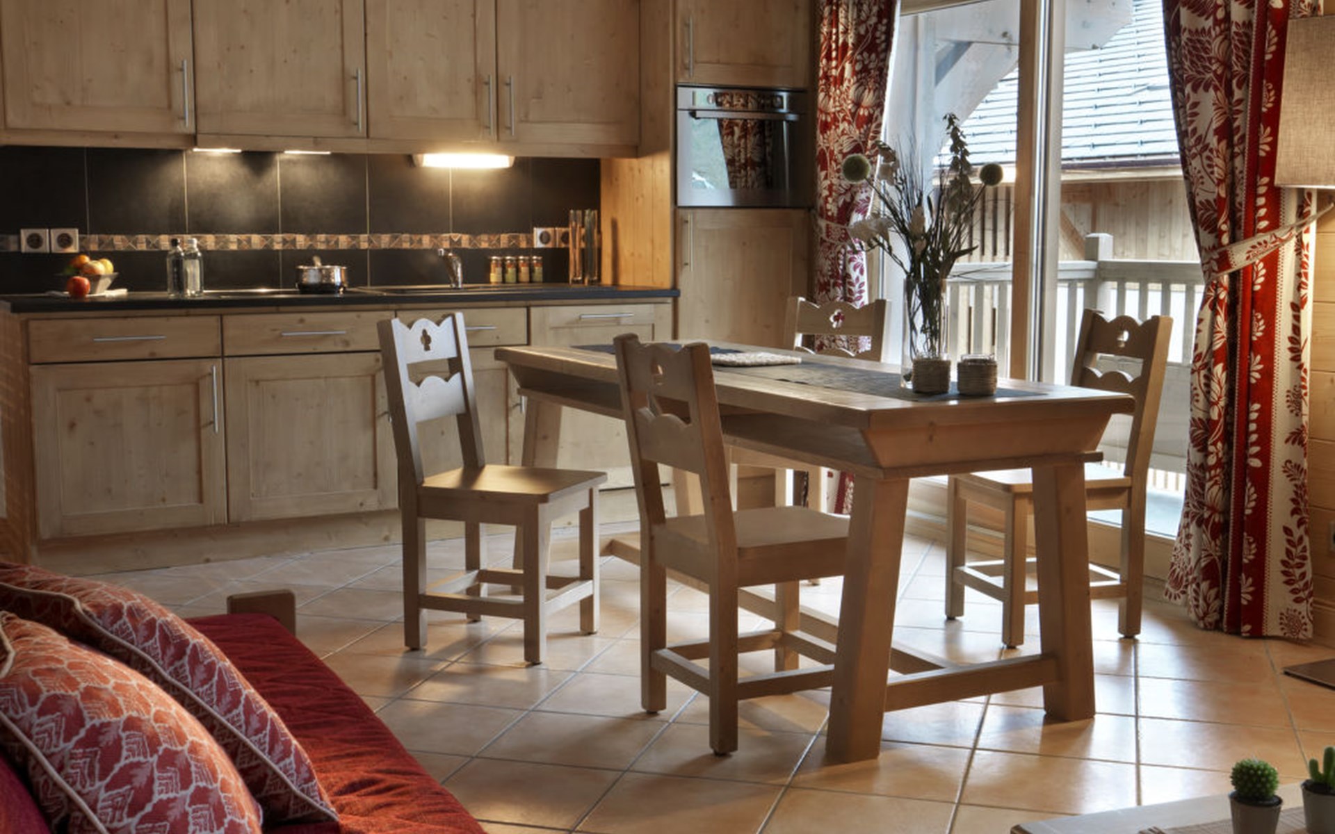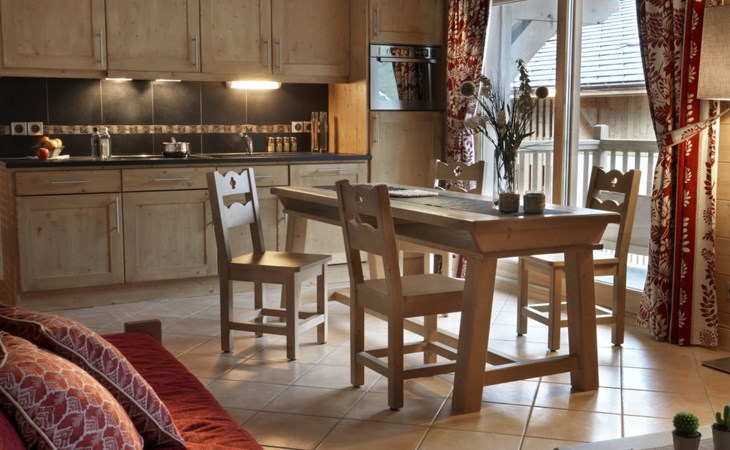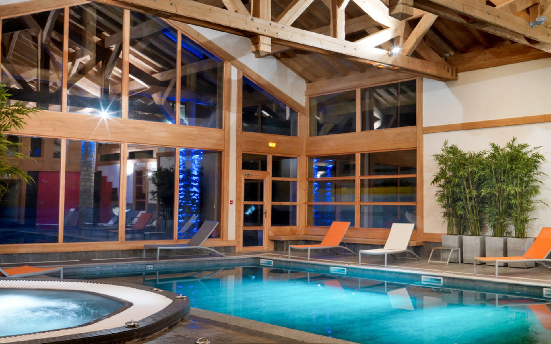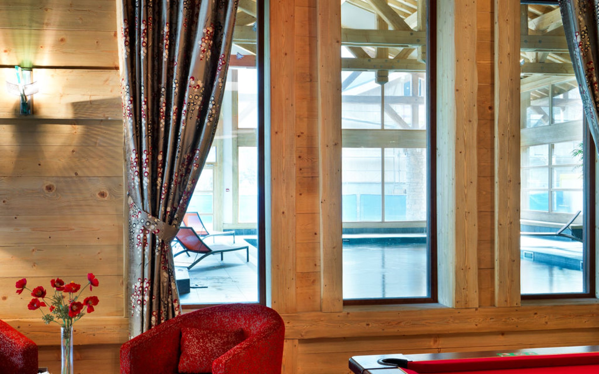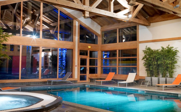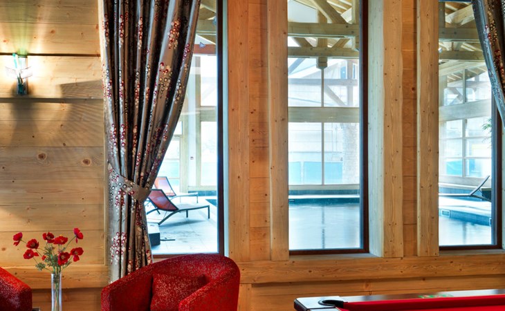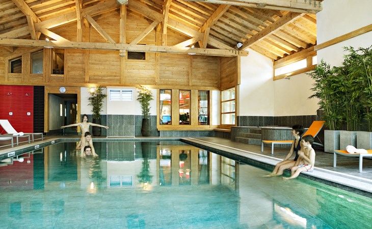 Beautiful, rustic, comfortable residence "CGH Résidence&Spa La Reine des Prés". 8 houses in the residence. 80 apartments in the residence. 500 m from the centre of Samoëns, 15 km from the centre of Cluses, 55 km from the centre of Genf, 1 km from the lake, directly by the skiing area. For shared use: indoor pool heated (14 x 7 m, seasonal availability: 01.Jan. - 31.Dec.). In the complex: reception, lounge, WiFi, sauna, fitness room, massage (extra). Steam room, hot tub, billiard table, lift, storage room for skis, washing machine (extra), ski boot dryer. Bread roll service. Storeroom available. Communal covered parking (extra). Parking space or garage only for small to medium-sized cars. Dimension: height 180 cm. Supermarket 150 m, restaurant 150 m, railway station "Cluses" 20 km, lake Lacs aux Dames 1 km. Walking paths from the house, cycle lane, gondola lift 400 m, slopes. Well-known ski regions can easily be reached: Le Grand Massif 400 m. Please note: the photograph shows a typical example. The holiday properties may differ in living space, floorplan, equipment and furnishing.