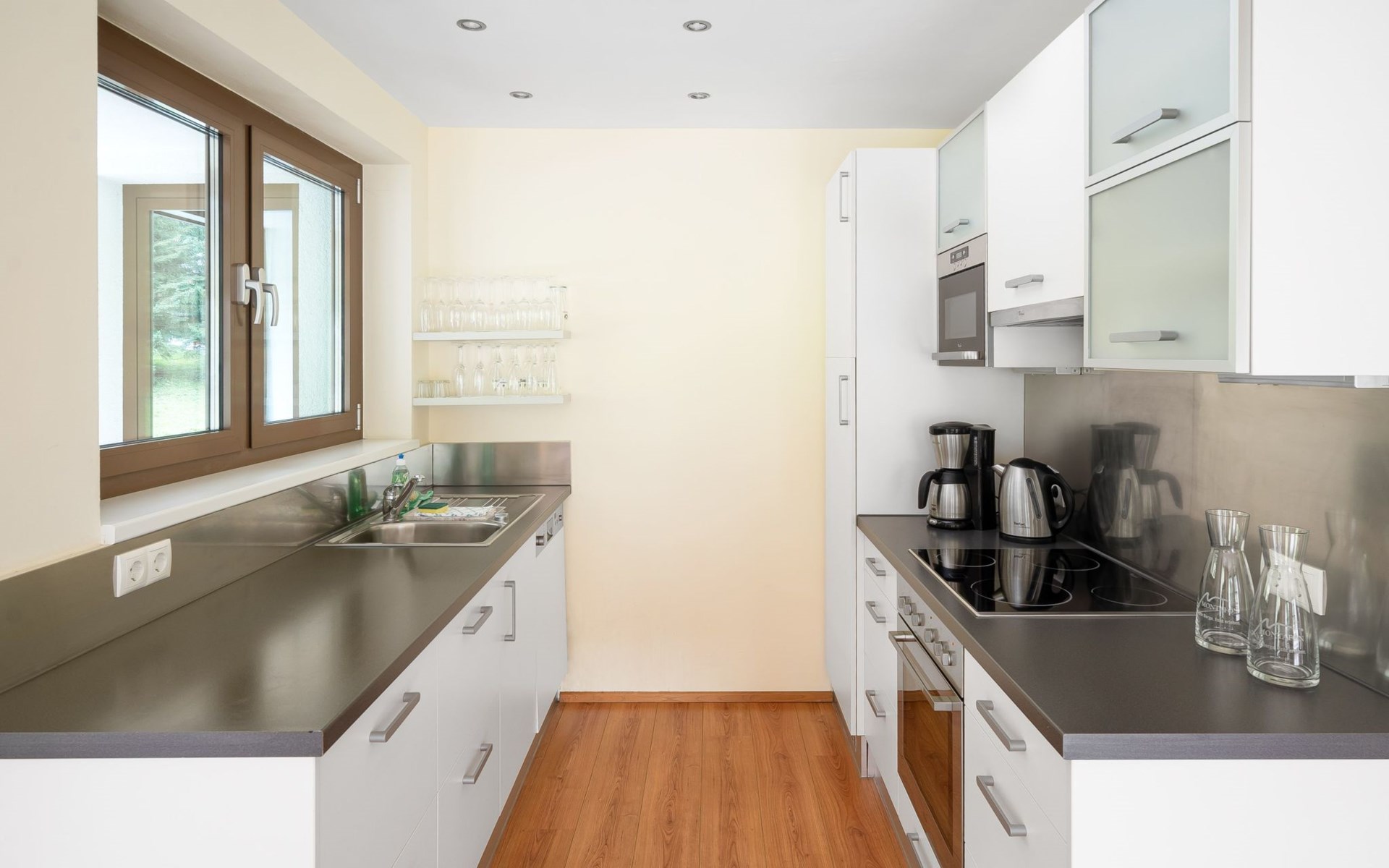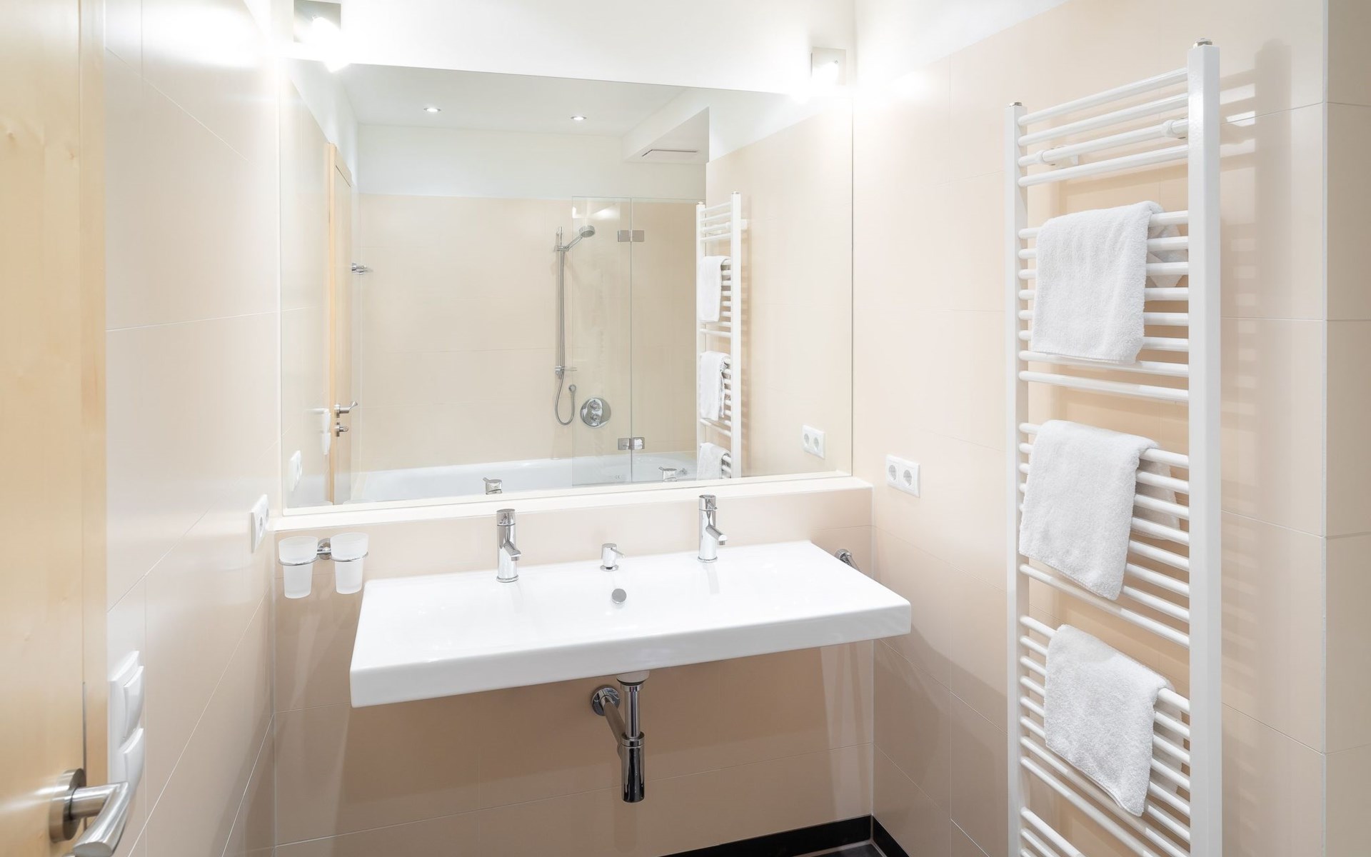 There is also an infrared cabin for 1 person. The bathrooms have a bath, shower, WC and some have double washbasins. The kitchen is equipped with a dishwasher, microwave, coffee machine, cooker with oven and kettle.