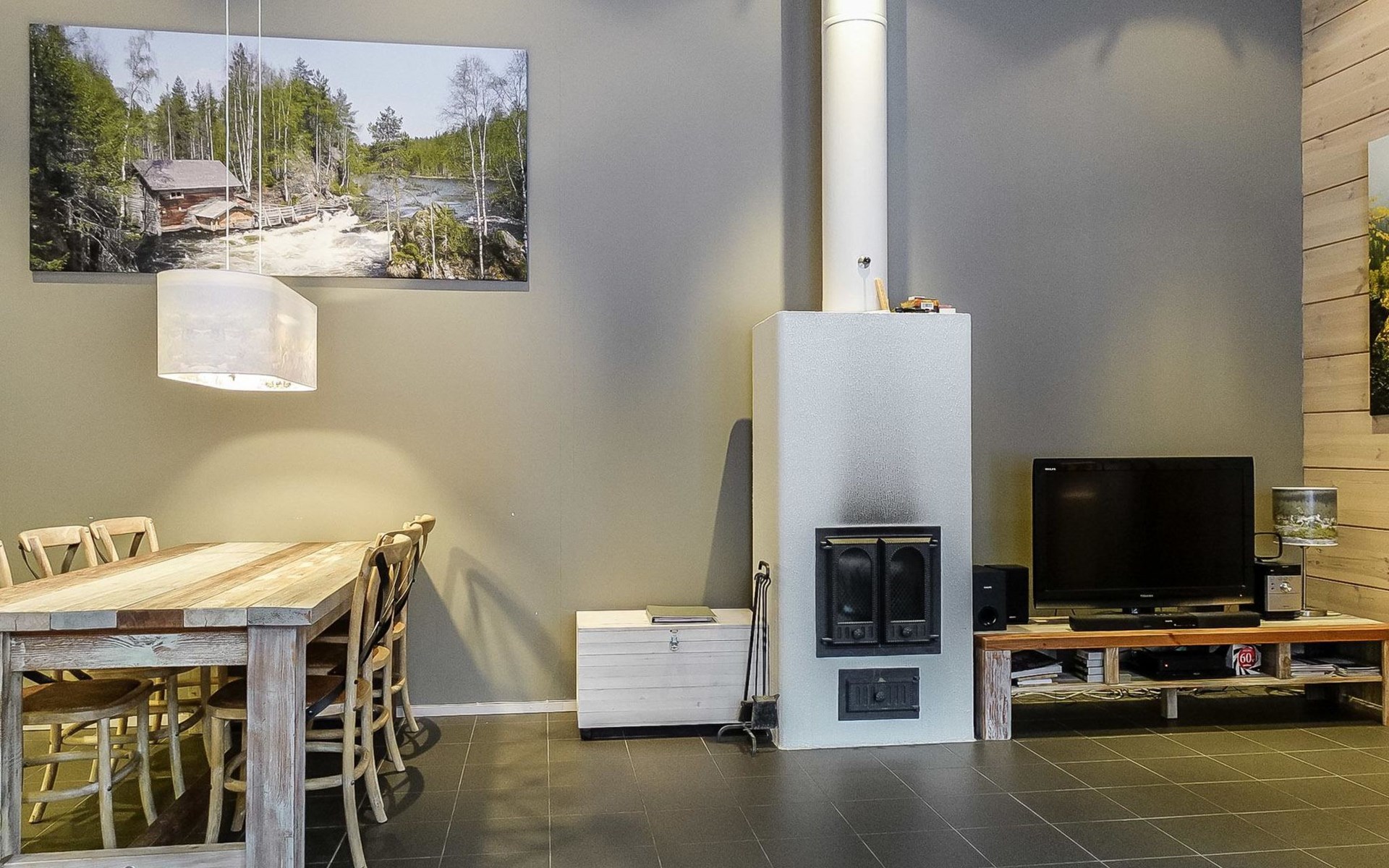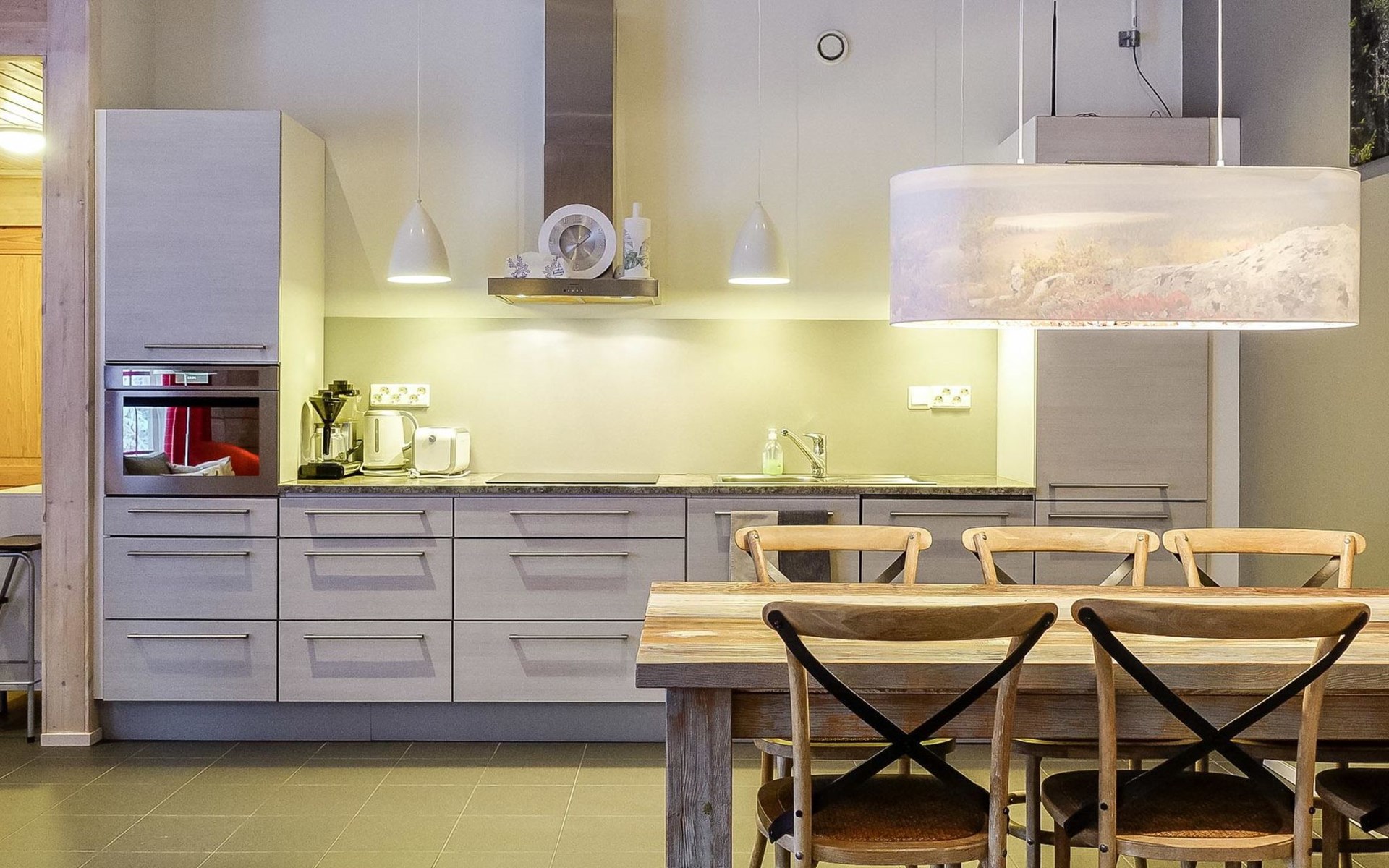 There is floor heating (water heating) in the apartment, in addition to the drying cabinet dryer, mechanical ventilation, wireless Internet access and satellite channels. Besides livingroom there is tv also in one bedroom. Apartment is partly suited for disabled persons (spacious), but there are a couple of stairs at the front door.