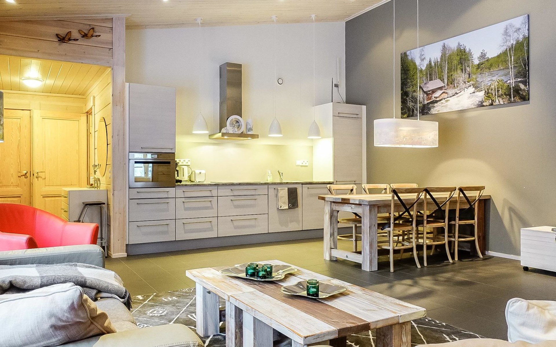 Just beside Salla nationalpark, near by hiking routes. In winter maintained skiing tracks in pristine forests and fell terrain. In summer cycling and hiking routes.
