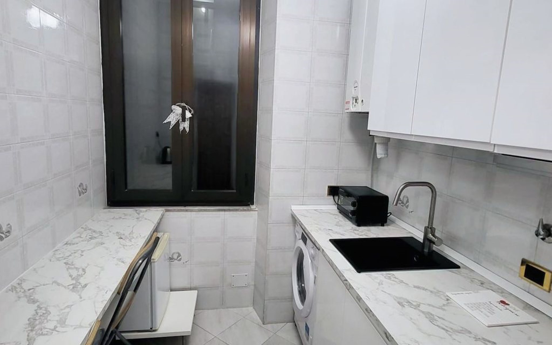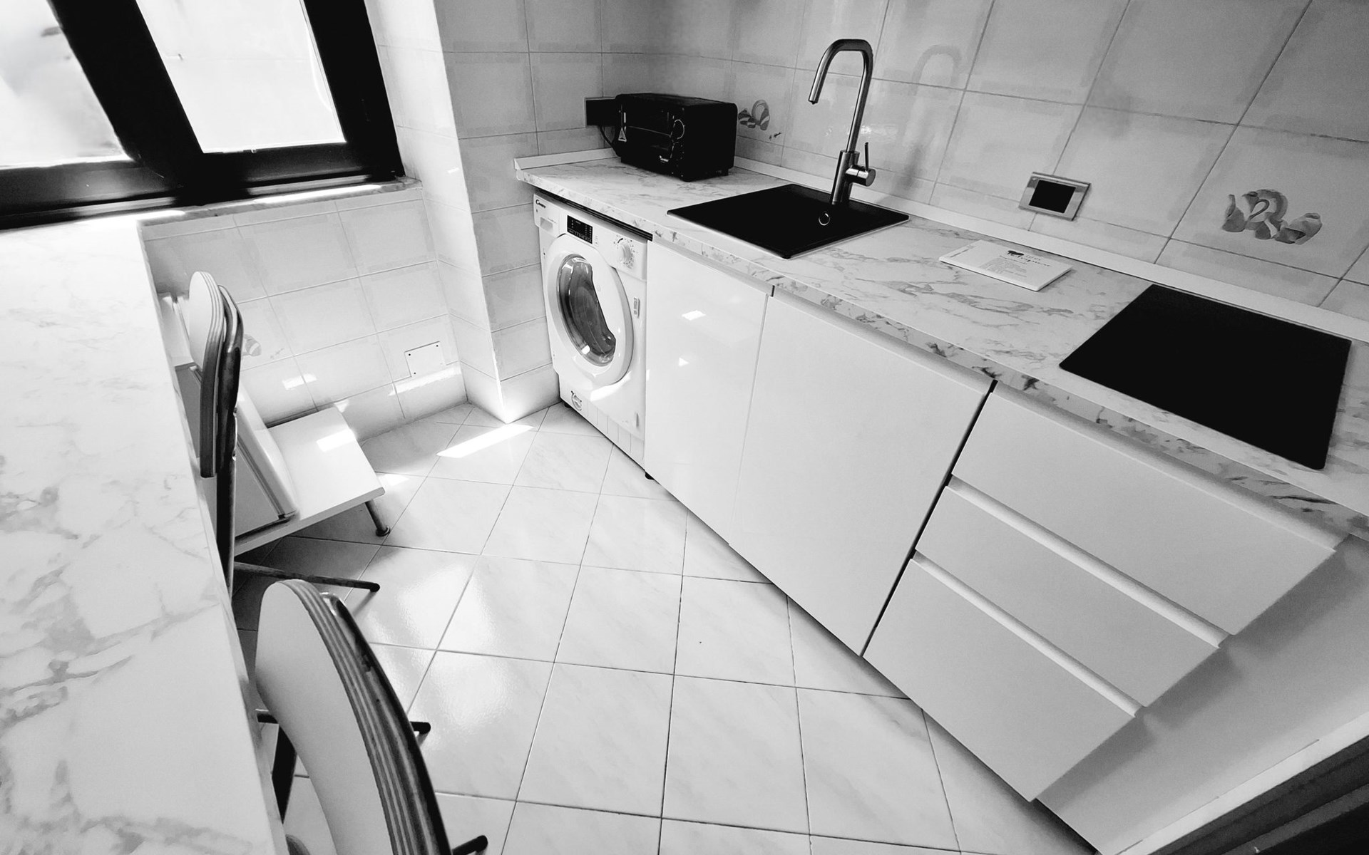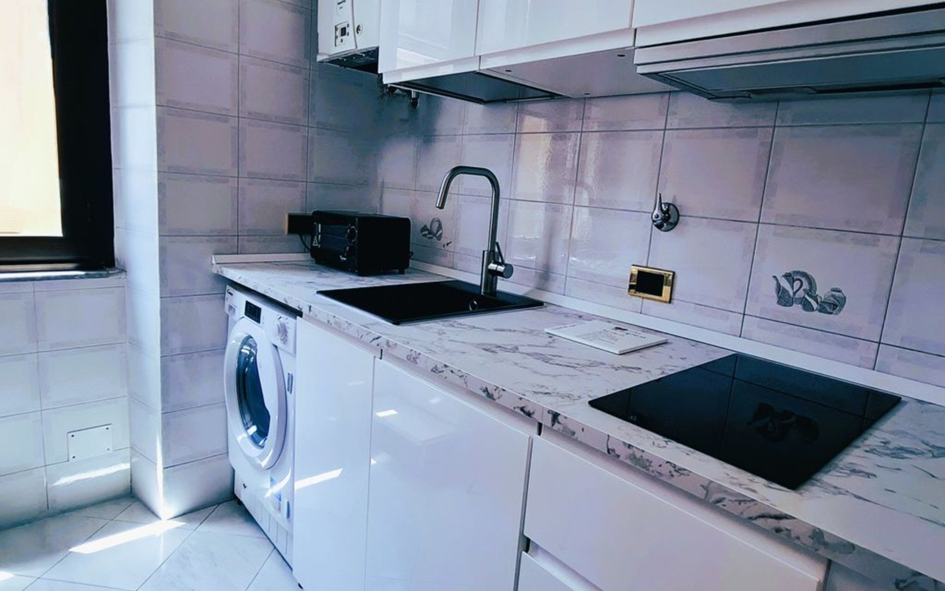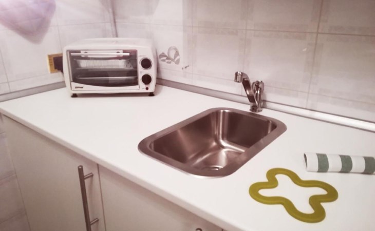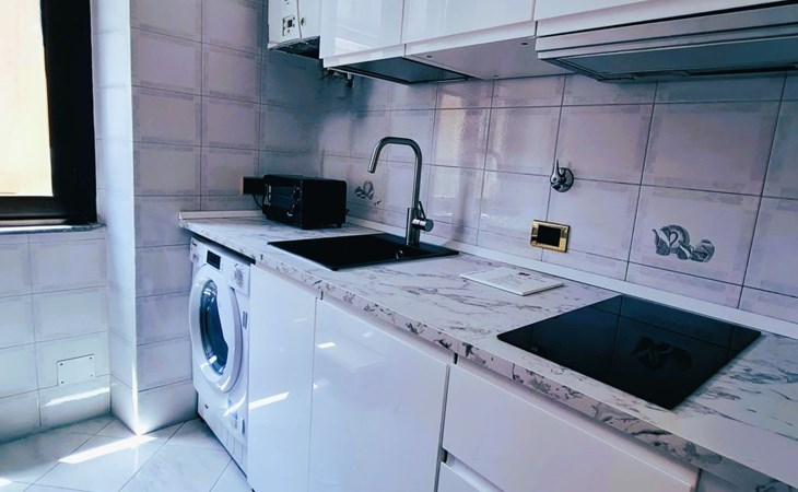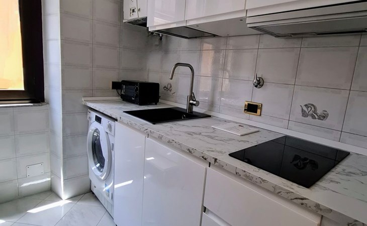 Inside, you will find an air-conditioned environment that guarantees maximum comfort during the hot and cold months. The flat includes a washing machine for your exclusive use, which is useful for long stays and for having clean clothes at hand at all times. The kitchen is equipped with a two-burner induction cooker, a moka coffee maker, a dishwasher, a mini oven and a mini-bar, providing you with everything you need to prepare delicious meals as if you were at home.