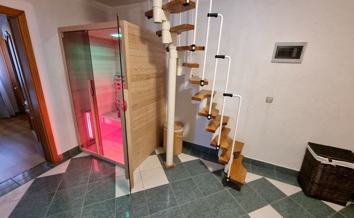 Venturing outside, guests are greeted by the house's crown jewel - a private outdoor swimming pool nestled within a lush backyard oasis. Adorned with deck chairs, a parasol, garden furniture, and a gas grill, available for leisure from the 1st of May until the 1st of October, this space is designed for ultimate relaxation. The allure of the outdoors is further enhanced by a hot tub (Jacuzzi) on the terrace, accommodating up to 5 persons, and a sauna perfect for the intimate relaxation of 2 persons, creating an unforgettable environment for soaking up the sun.