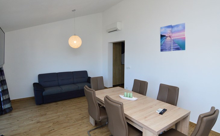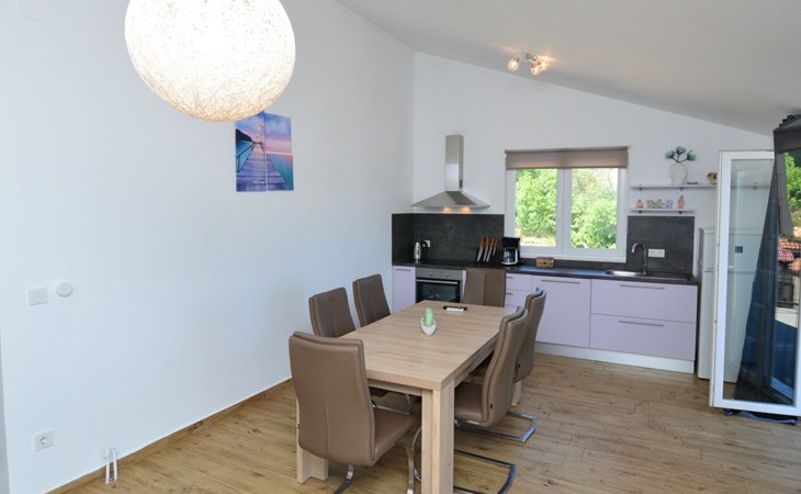 3-family house "Lavanda". In the district of Šparadići 2.5 km from the centre of Grebaštica, 8 km from the centre of Primošten, 18 km from the centre of Šibenik, on a slope, 70 m from the sea, 70 m from the beach. For shared use: property 1'500 m2, trees. In the house: internet access. Narrow motor access to the house (20 m via unmade road). Parking on the premises. Shop 2 km, supermarket 15 km, restaurant 3 km, bus stop 600 m, pebble beach 70 m.