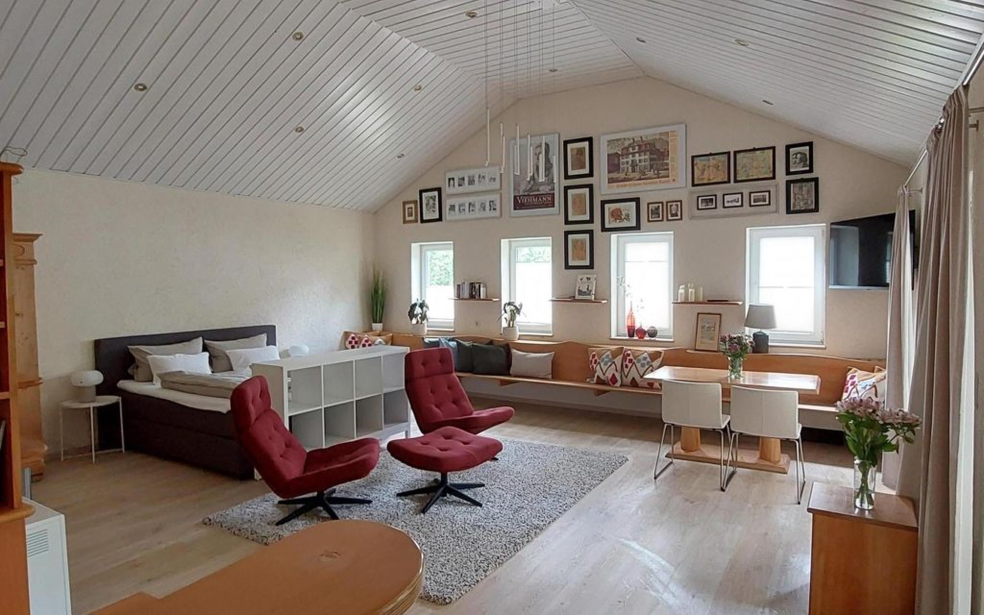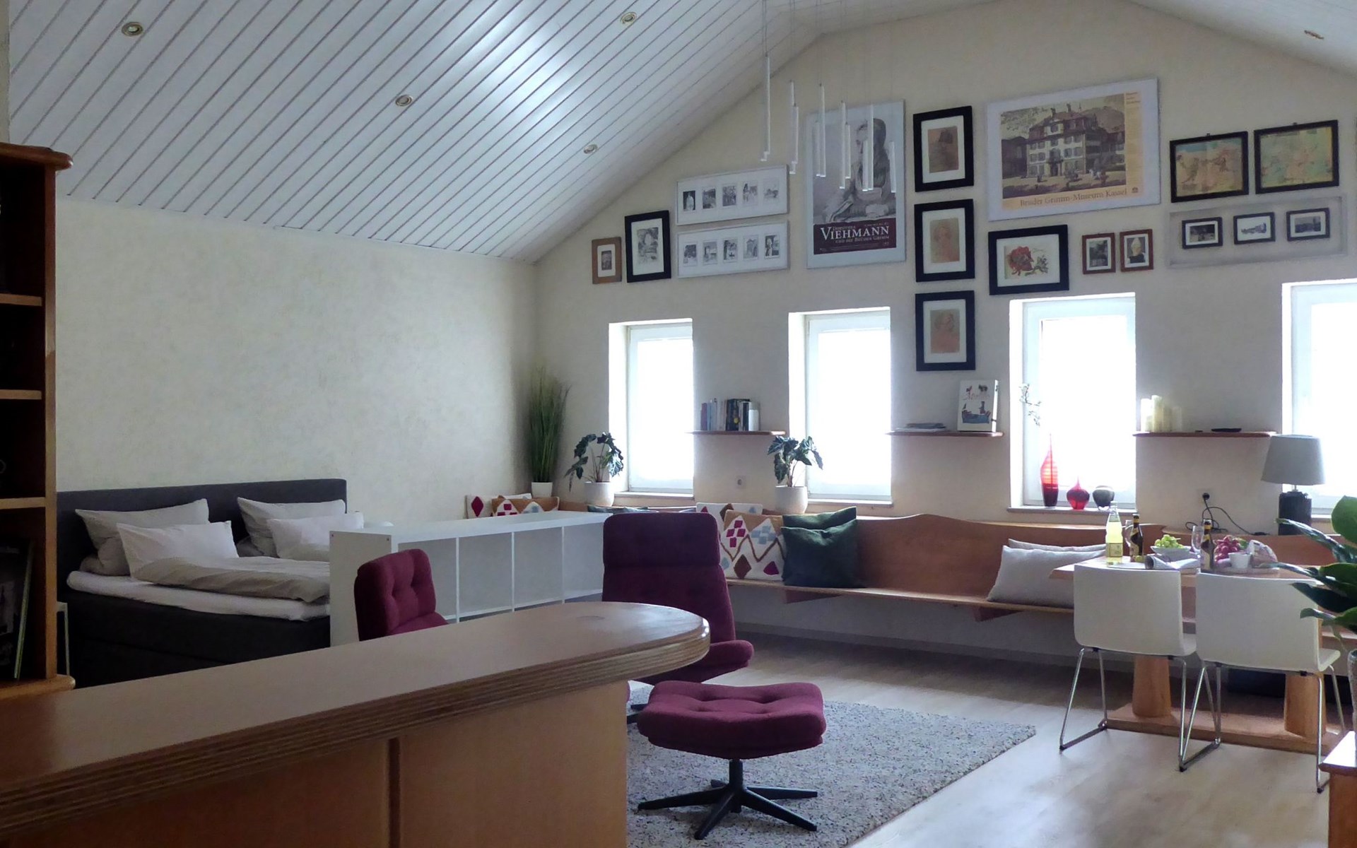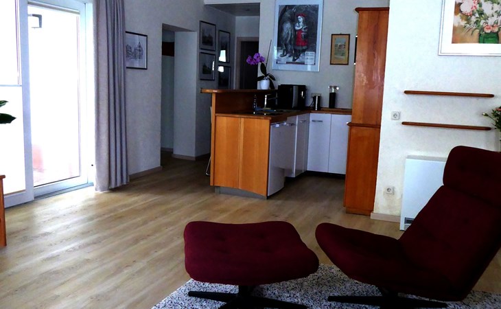 Other living room furnishings: 2 armchairs, small desk, 2 table lamps, 1 reading lamp, side table, large table with 2 chairs, wardrobe