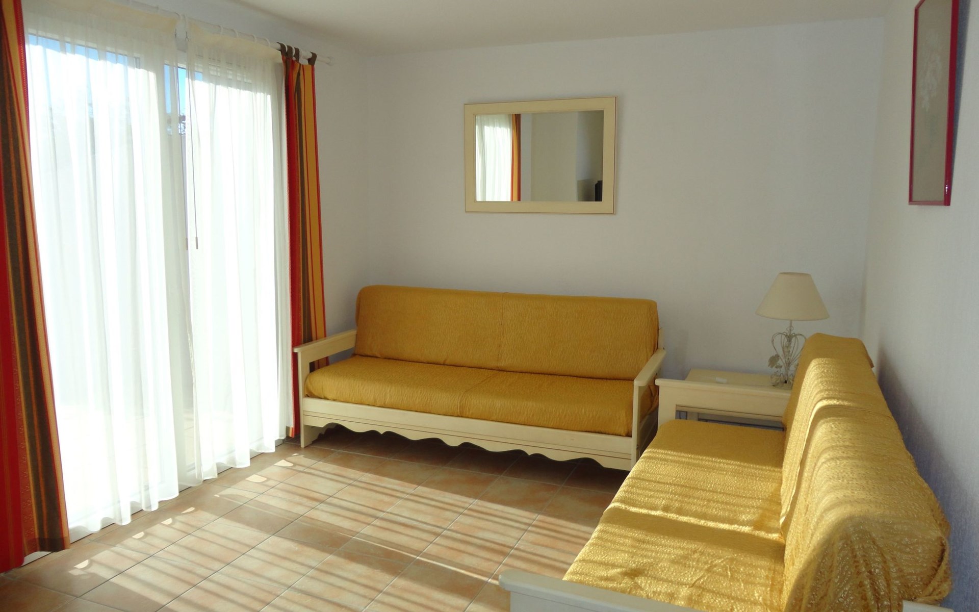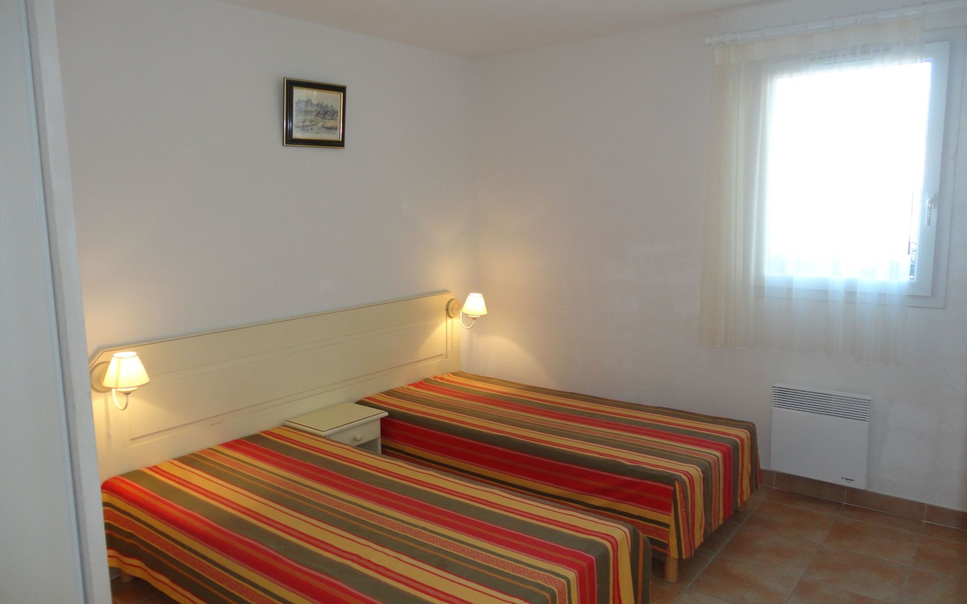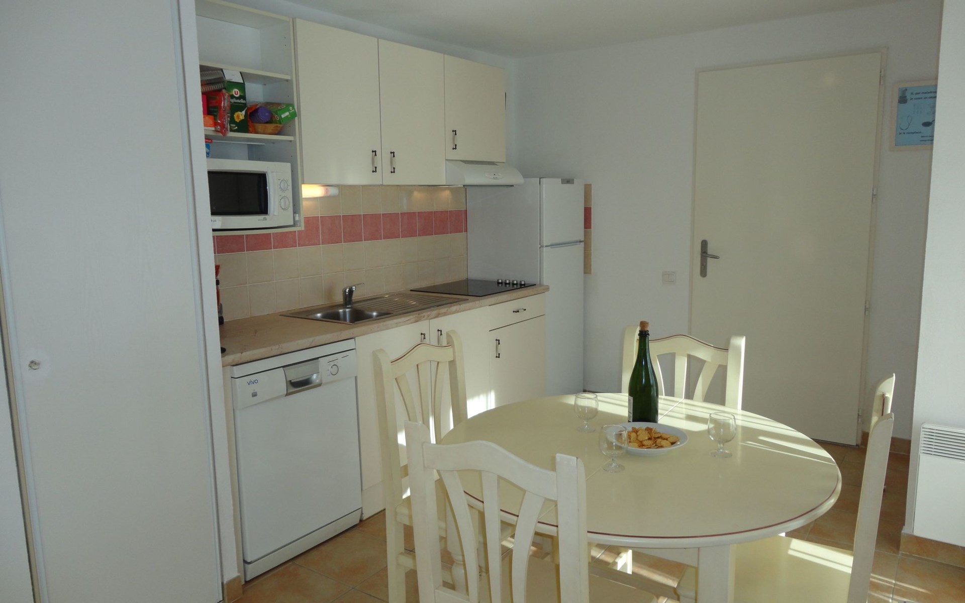 - Dining area/kitchenette (4 ceramic hobs, microwave oven and grill, dishwasher, fridge, coffee maker, electric kettle, toaster, crockery, ironing board and iron), hoover, fan, TV, baby equipment. - Living room with 2 sofa beds - Bedroom with 1 double bed (140cm) - Bedroom with 2 single beds (90cm) - Shower room with washbasin, shower and WC.