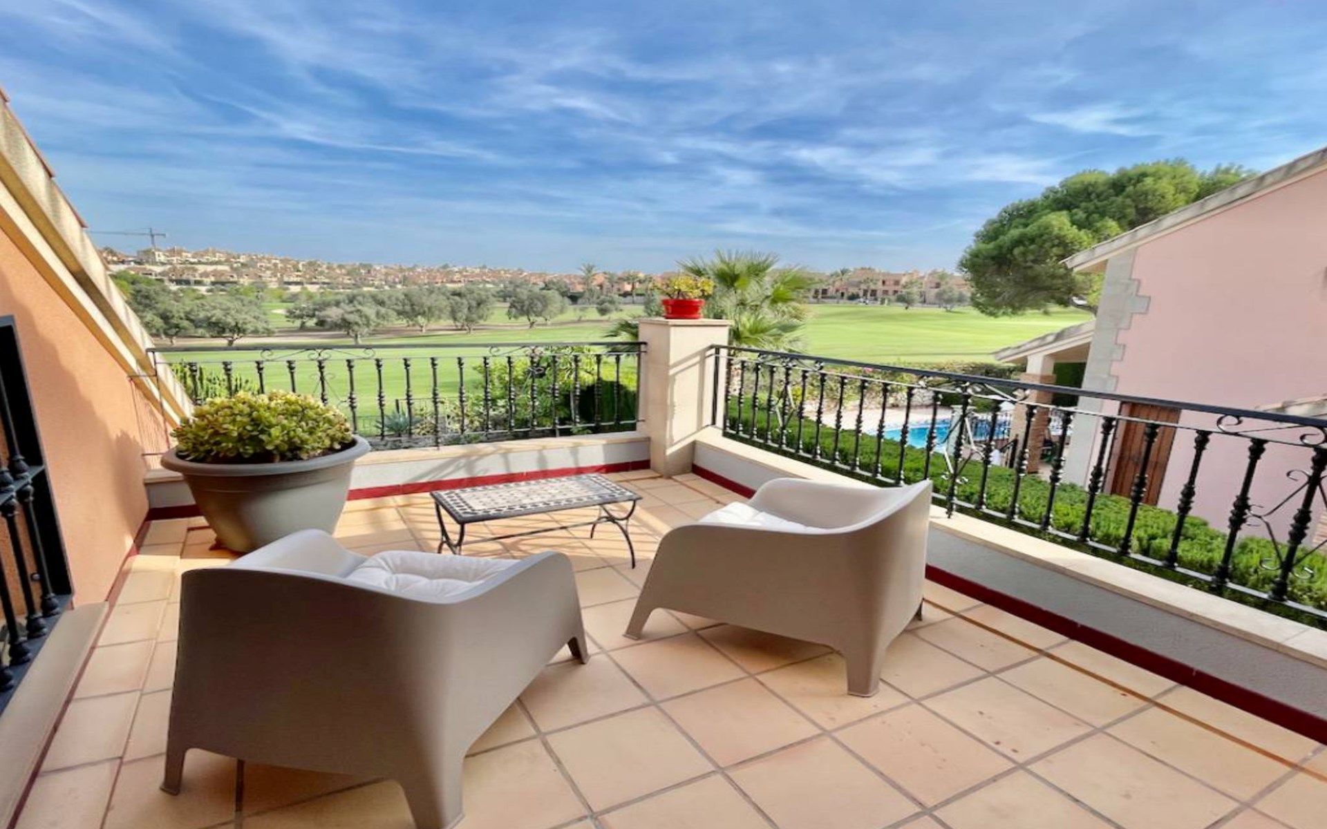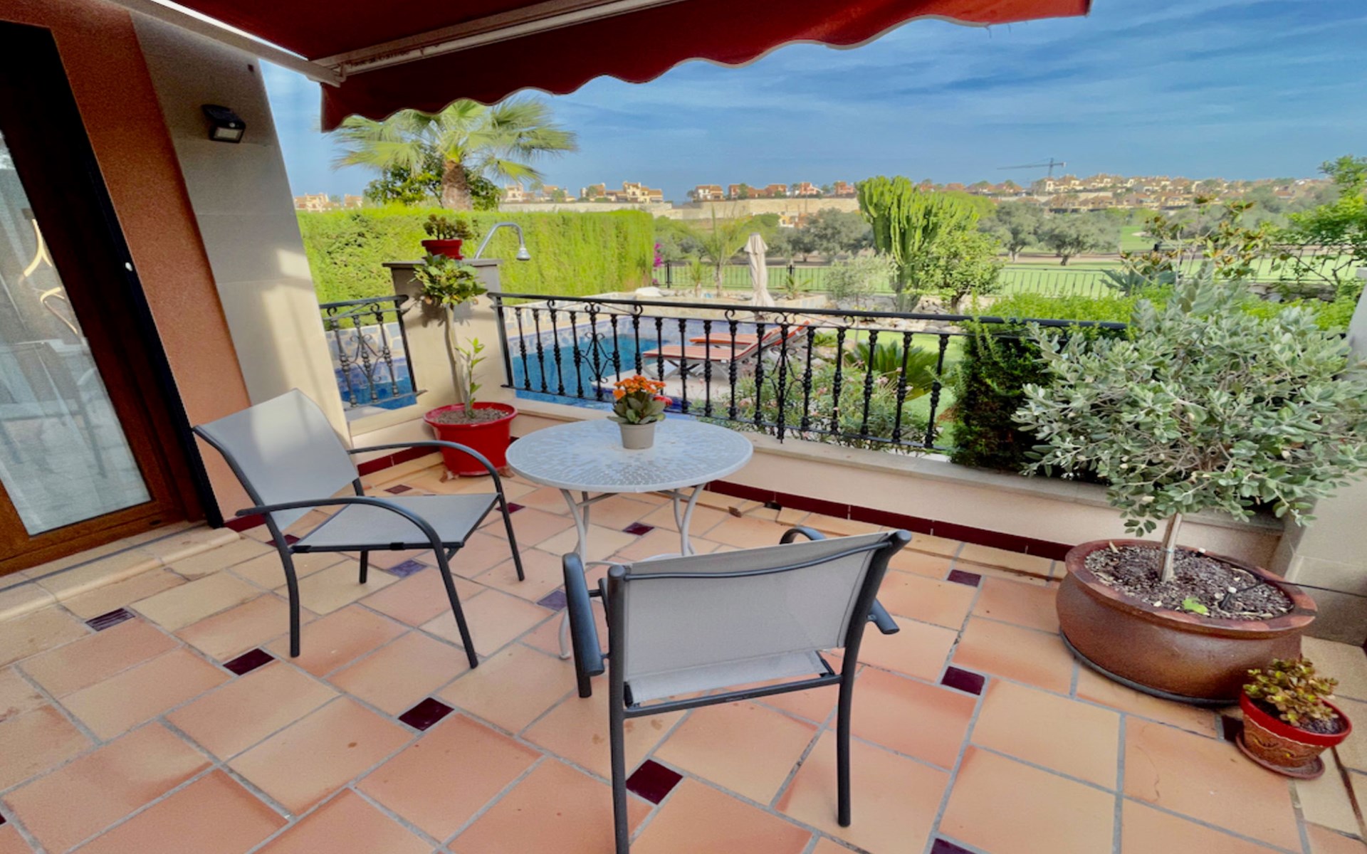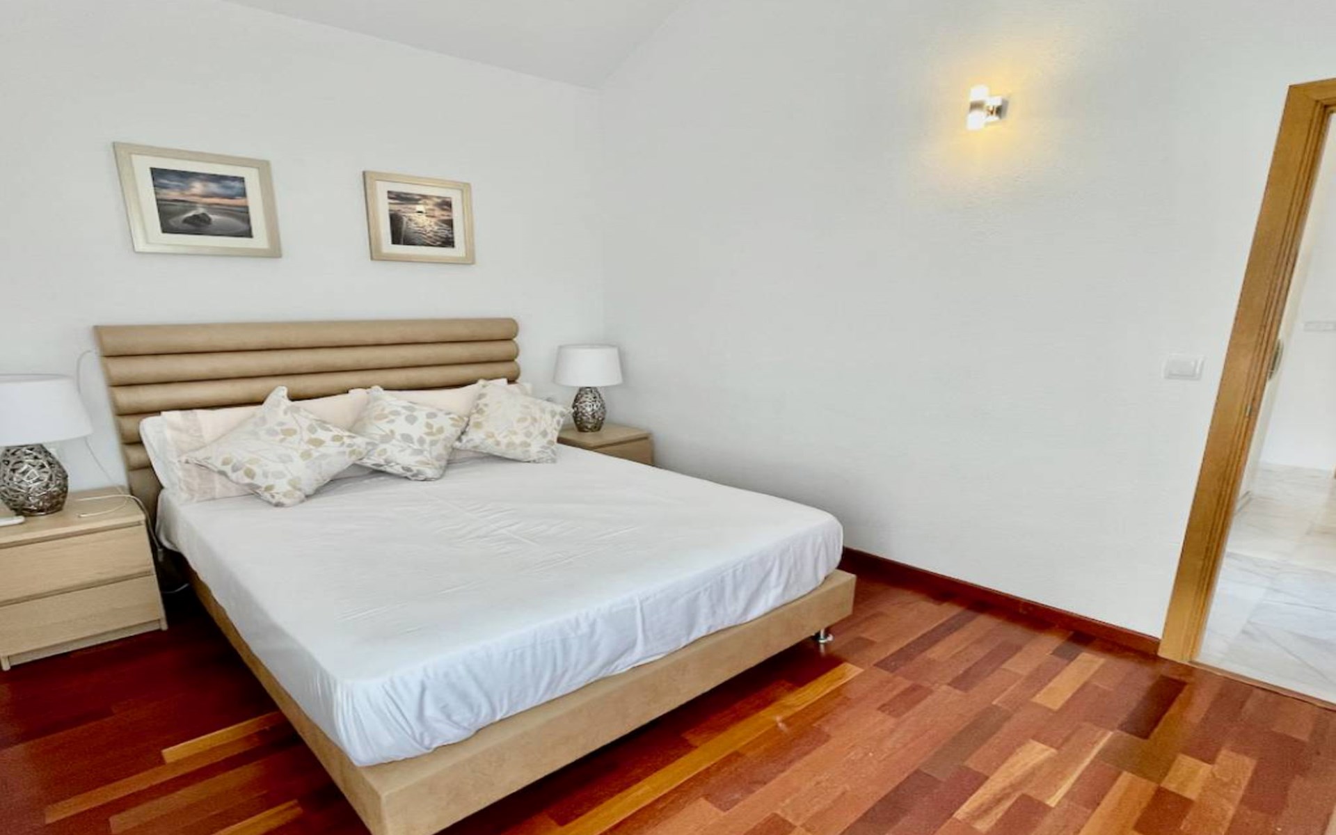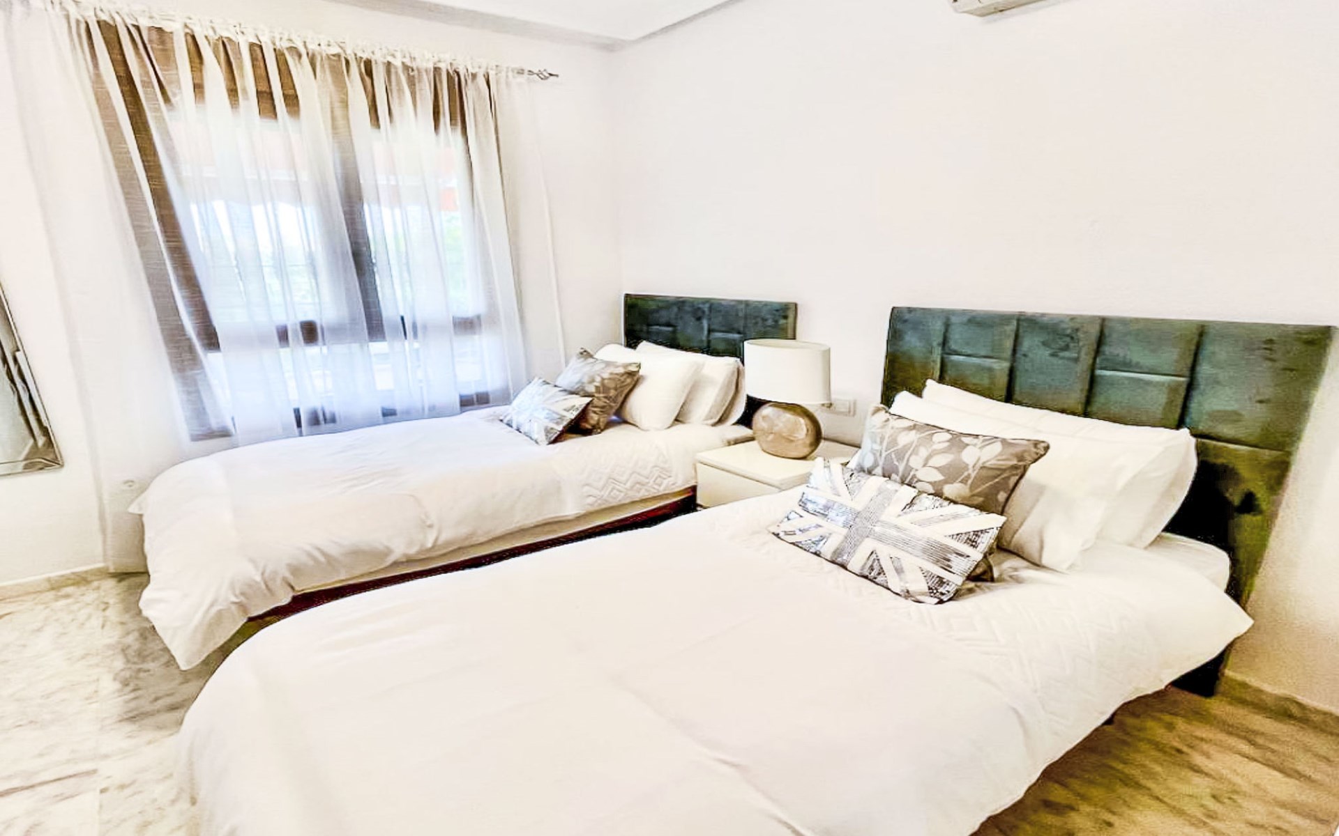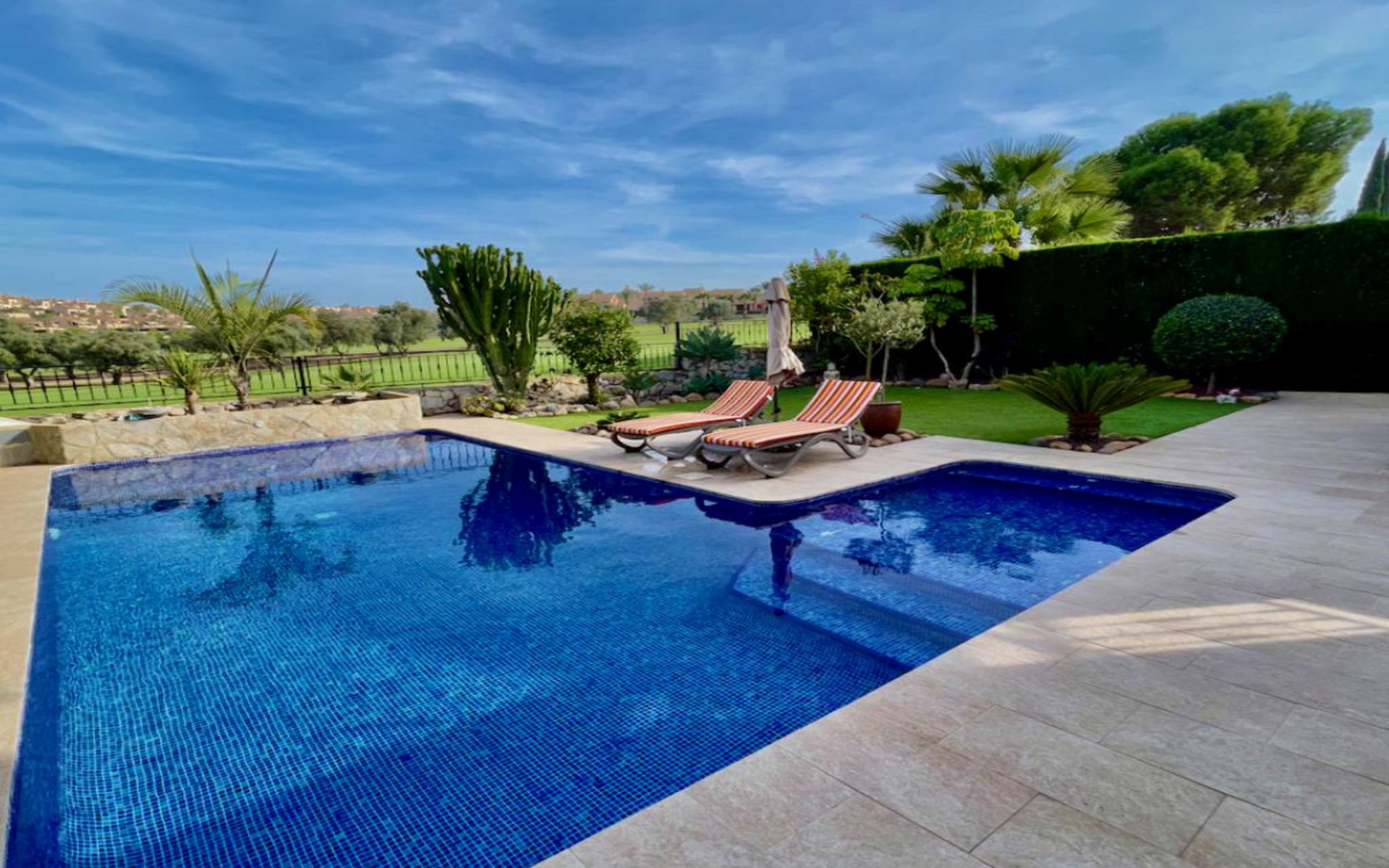 Beautiful house "La Finca Frontline", 2 storeys, semi-detached. 7 km from the centre of Los Montesinos, 9 km from the centre of Quesada, in a quiet, sunny position residential area (villas), traffic calmed area, 16 km from the sea, 16 km from the beach, on the golf course. Private: property (fenced), beautiful, well-kept garden, swimming pool (8 x 4 m, seasonal availability: 01.Jan. - 31.Dec.) with internal staircase. Outdoor shower, terrace, garden furniture, barbecue. Grocery 2 km, supermarket 2 km, restaurant 2 km, bus stop 2 km, sandy beach "Playa La Mata" 20 km. Golf course (12 hole) 200 m. The owner does not accept any youth groups.