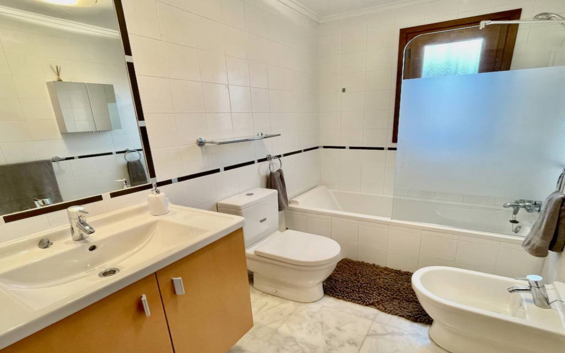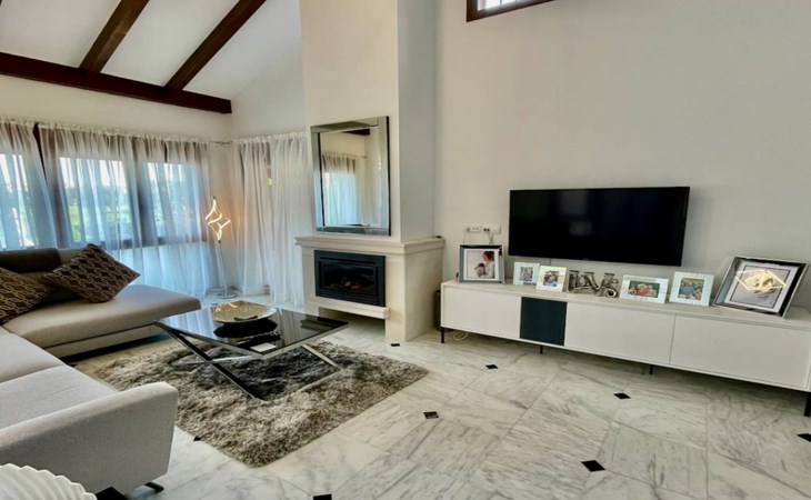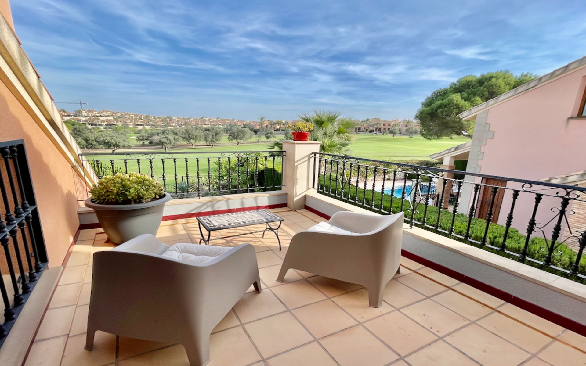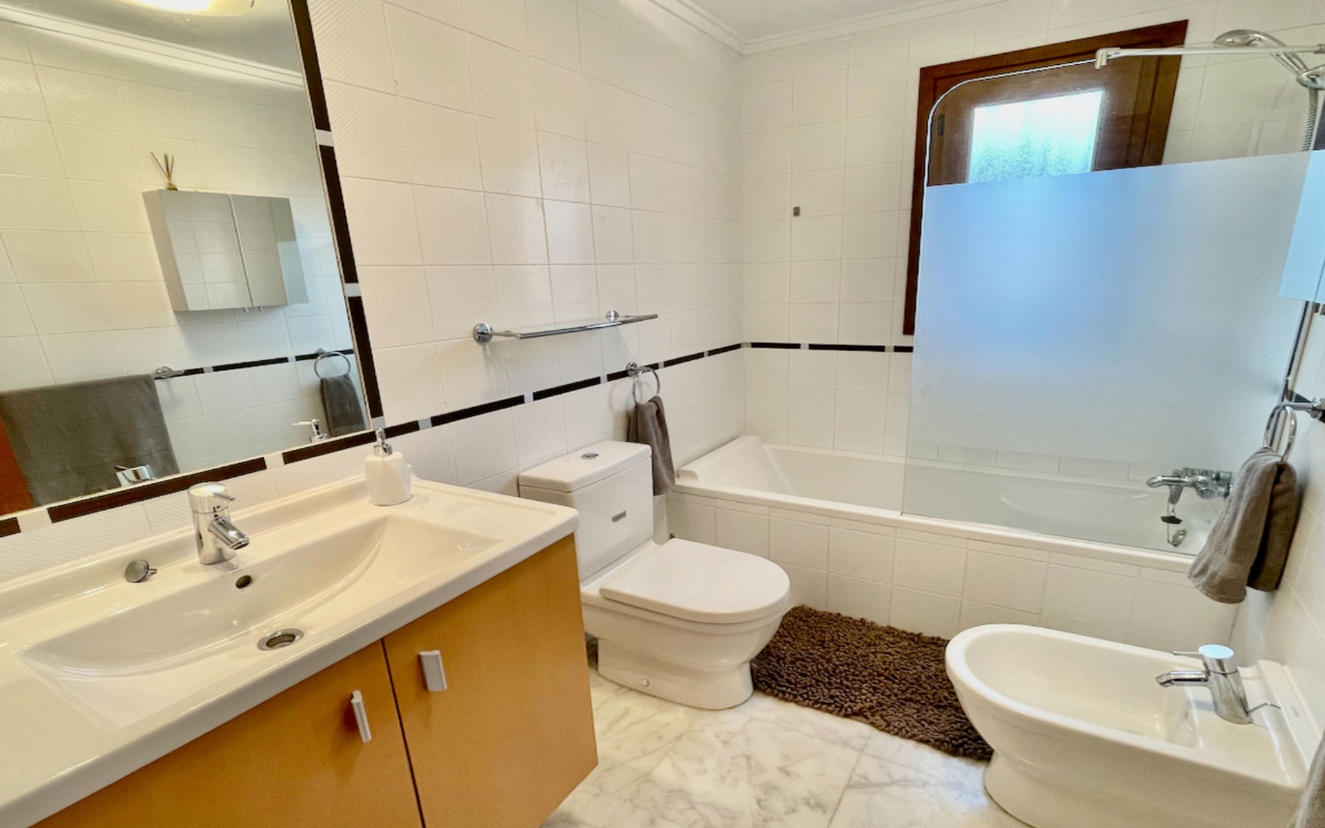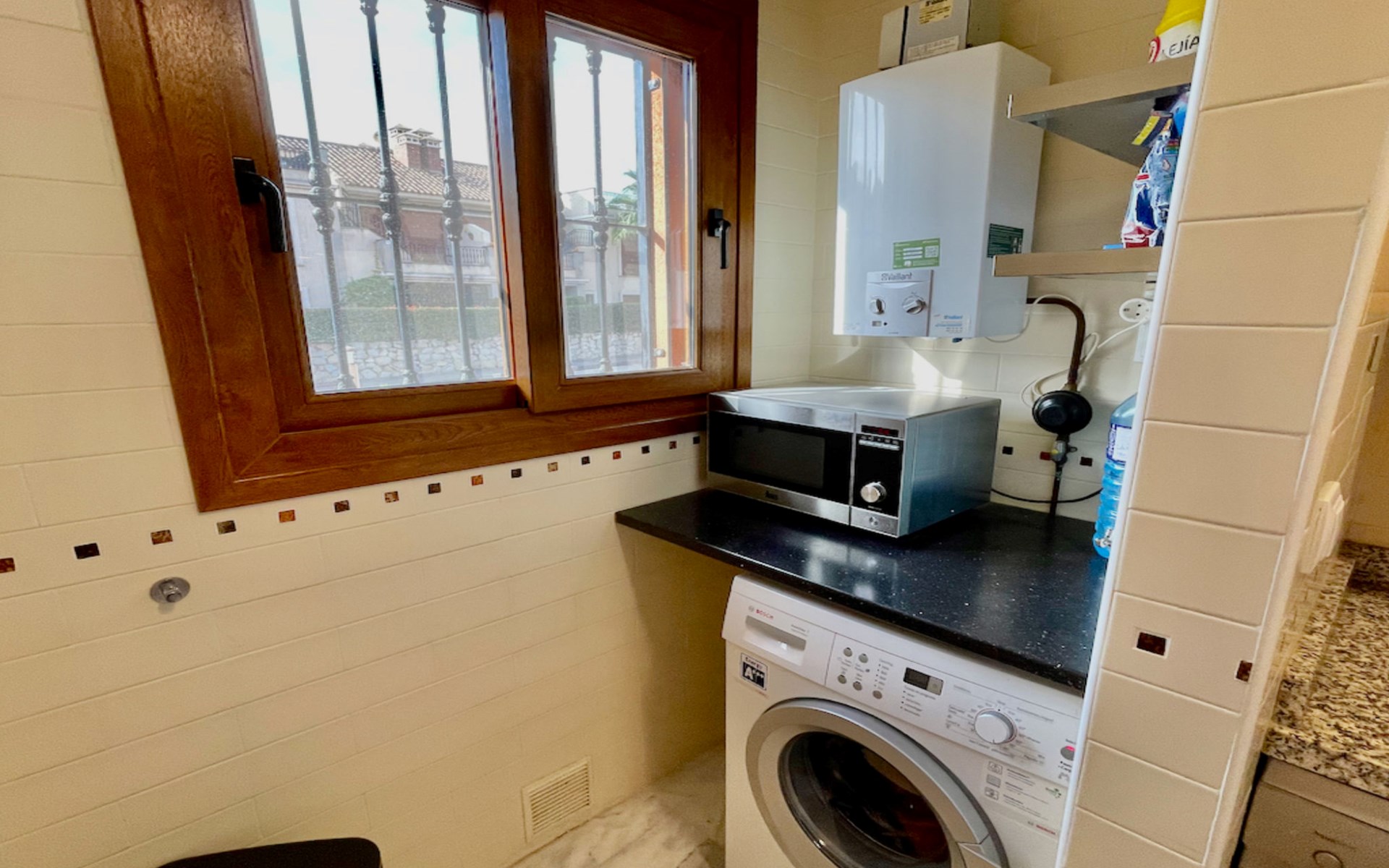 Beautiful house "La Finca Frontline", 2 storeys, semi-detached. 7 km from the centre of Los Montesinos, 9 km from the centre of Quesada, in a quiet, sunny position residential area (villas), traffic calmed area, 16 km from the sea, 16 km from the beach, on the golf course. Private: property (fenced), beautiful, well-kept garden, swimming pool (8 x 4 m, seasonal availability: 01.Jan. - 31.Dec.) with internal staircase. Outdoor shower, terrace, garden furniture, barbecue. Grocery 2 km, supermarket 2 km, restaurant 2 km, bus stop 2 km, sandy beach "Playa La Mata" 20 km. Golf course (12 hole) 200 m. The owner does not accept any youth groups.