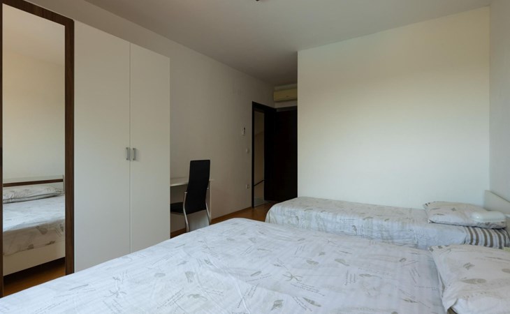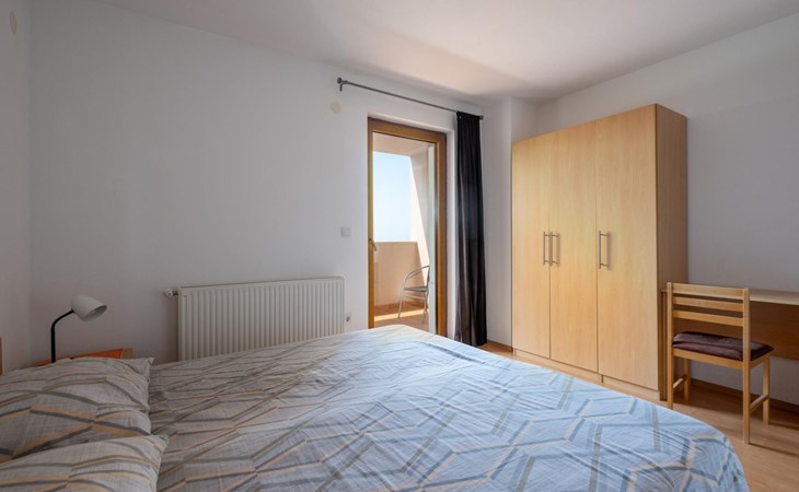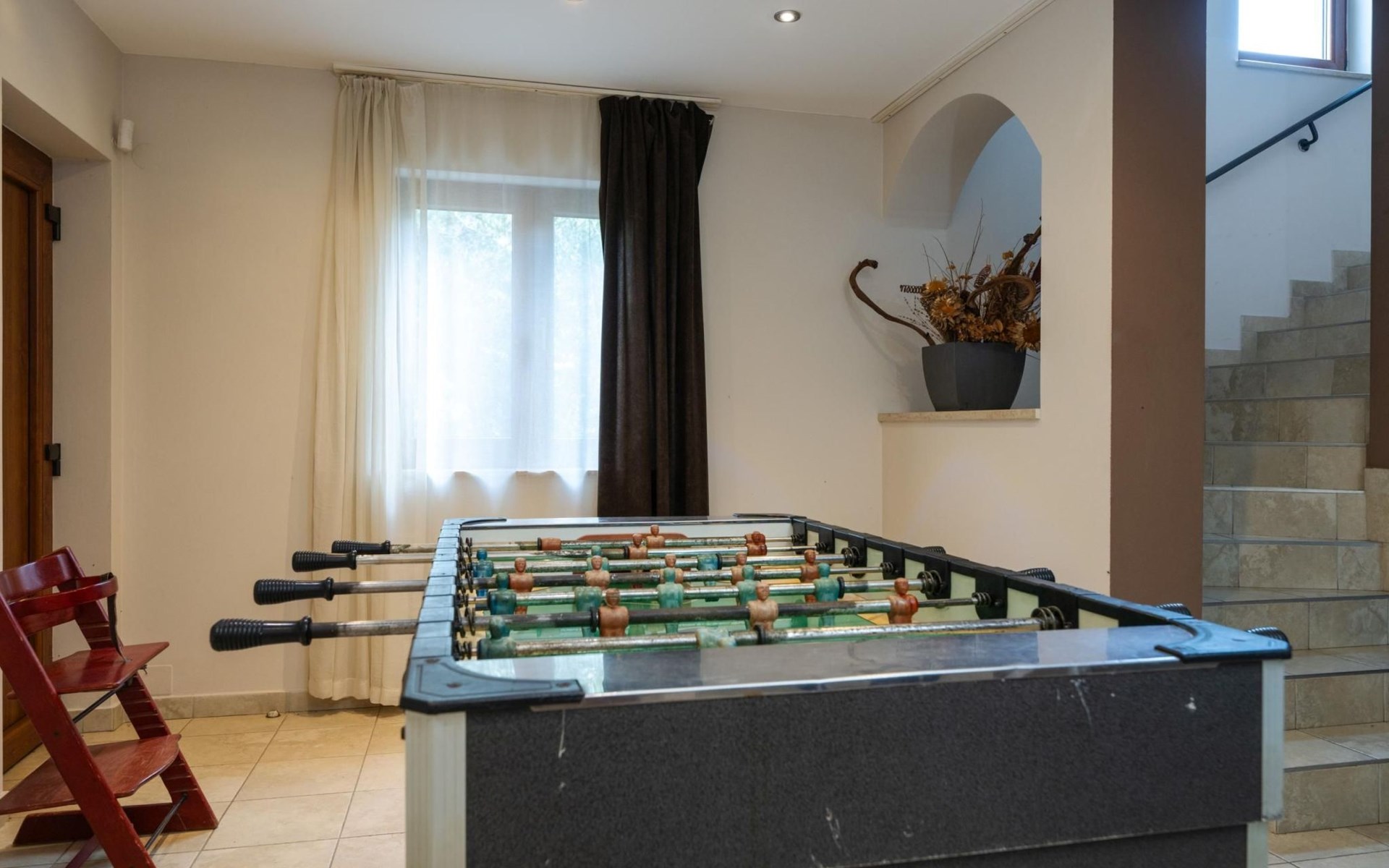 The fully equipped kitchen and living room offer comfortable shared spaces, while two balconies provide lovely views of the countryside. All bedrooms and the living area are air-conditioned. For entertainment, there's a football table.