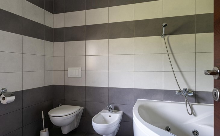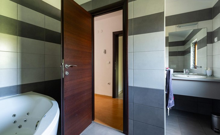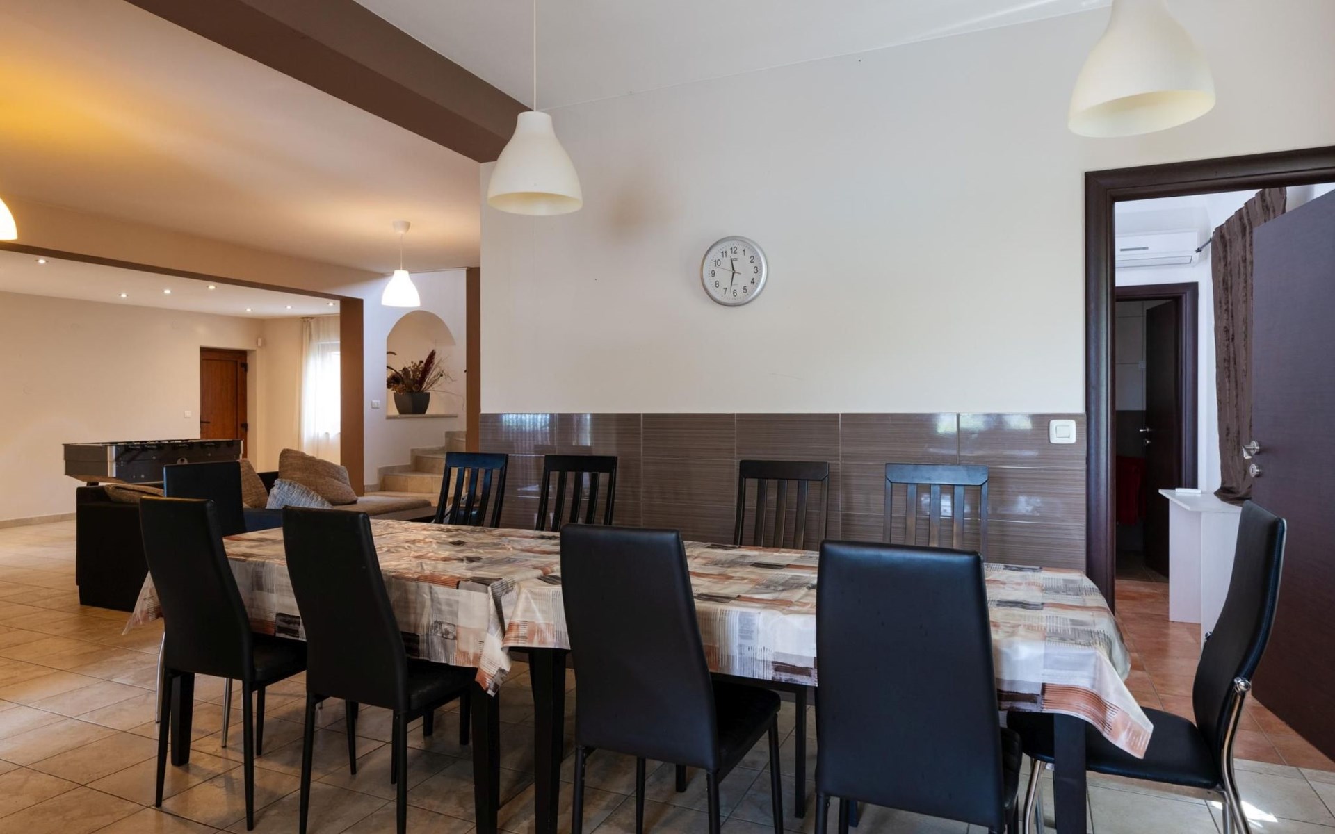 The villa features five bedrooms: four with double beds and one with both a double bed and a single bed. There are five bathrooms and one separate toilet.