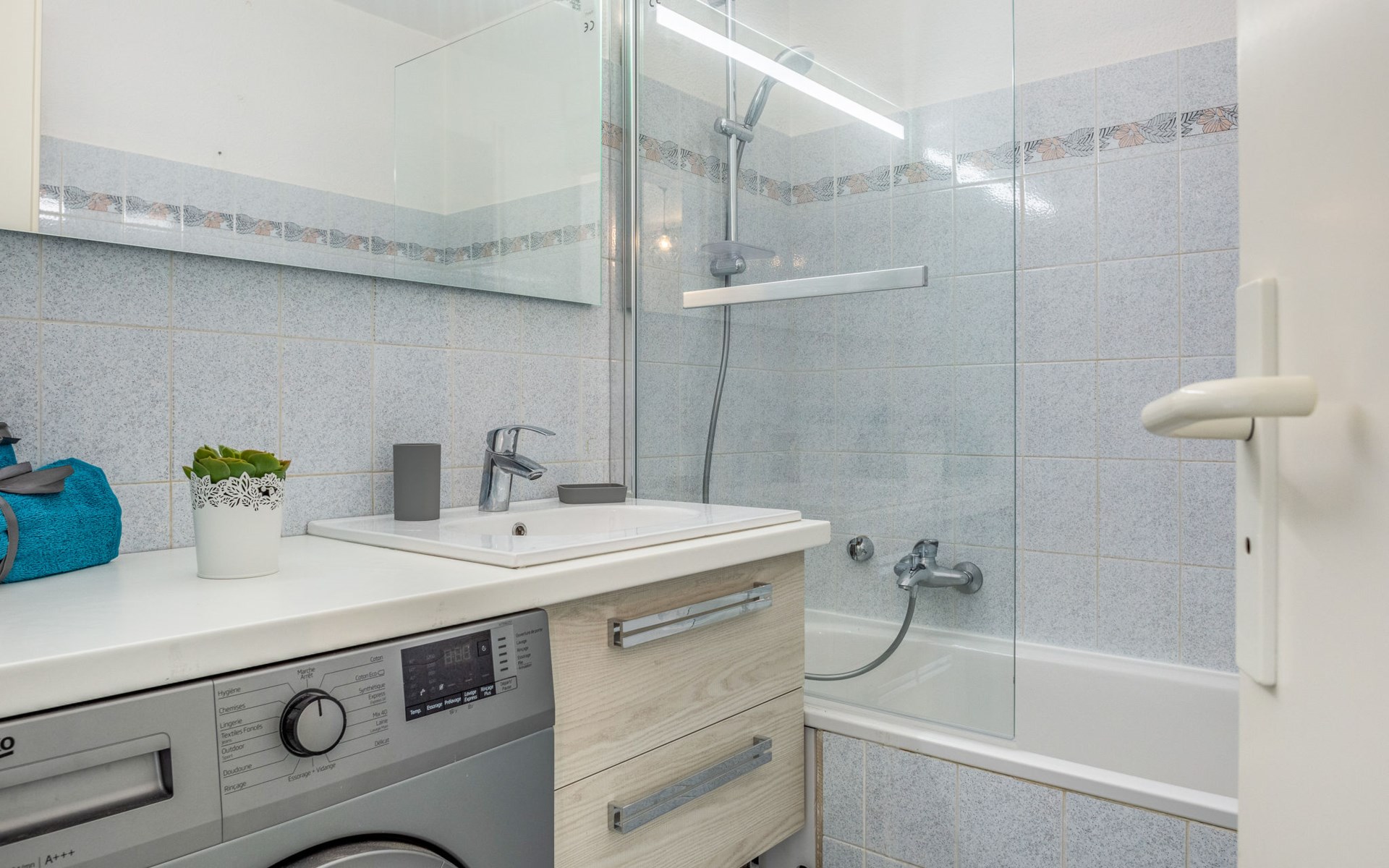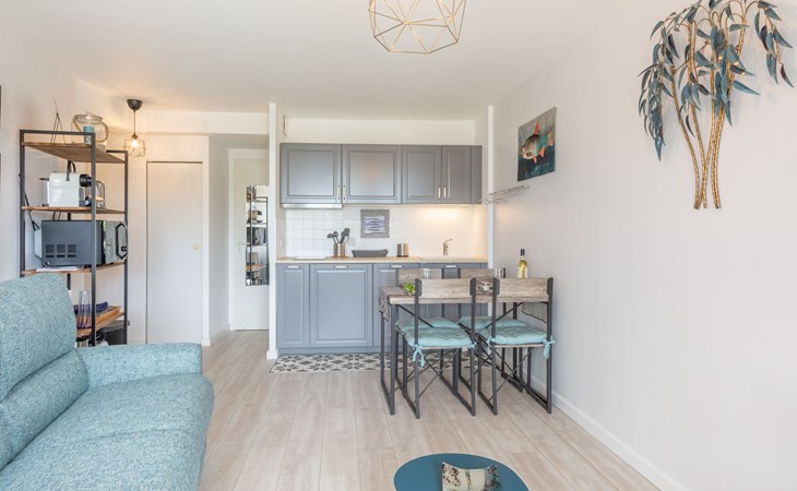 Quiberon: Residence "Résidence Du Grand Bleu", 3 storeys. In the centre of Quiberon, 100 m from the sea, 100 m from the beach. Shop 10 m, grocery 15 m, supermarket 1.5 km, restaurant 15 m, café, sandy beach "Gande Plage De Quiberon" 100 m, indoor swimming pool 900 m, thermal baths "Thalassothérapie de Quiberon" 1 km. Tennis 2 km. Nearby attractions: Thalassothérapie de Quiberon 2 km, Les Alignements de Carnac 18 km, Auray 30 km, Vannes 40 m, Belle-ile-en-Mer, Houat, Hoedic. The keys‘ handover takes place by the agency Interhome in Quiberon, 1 km.