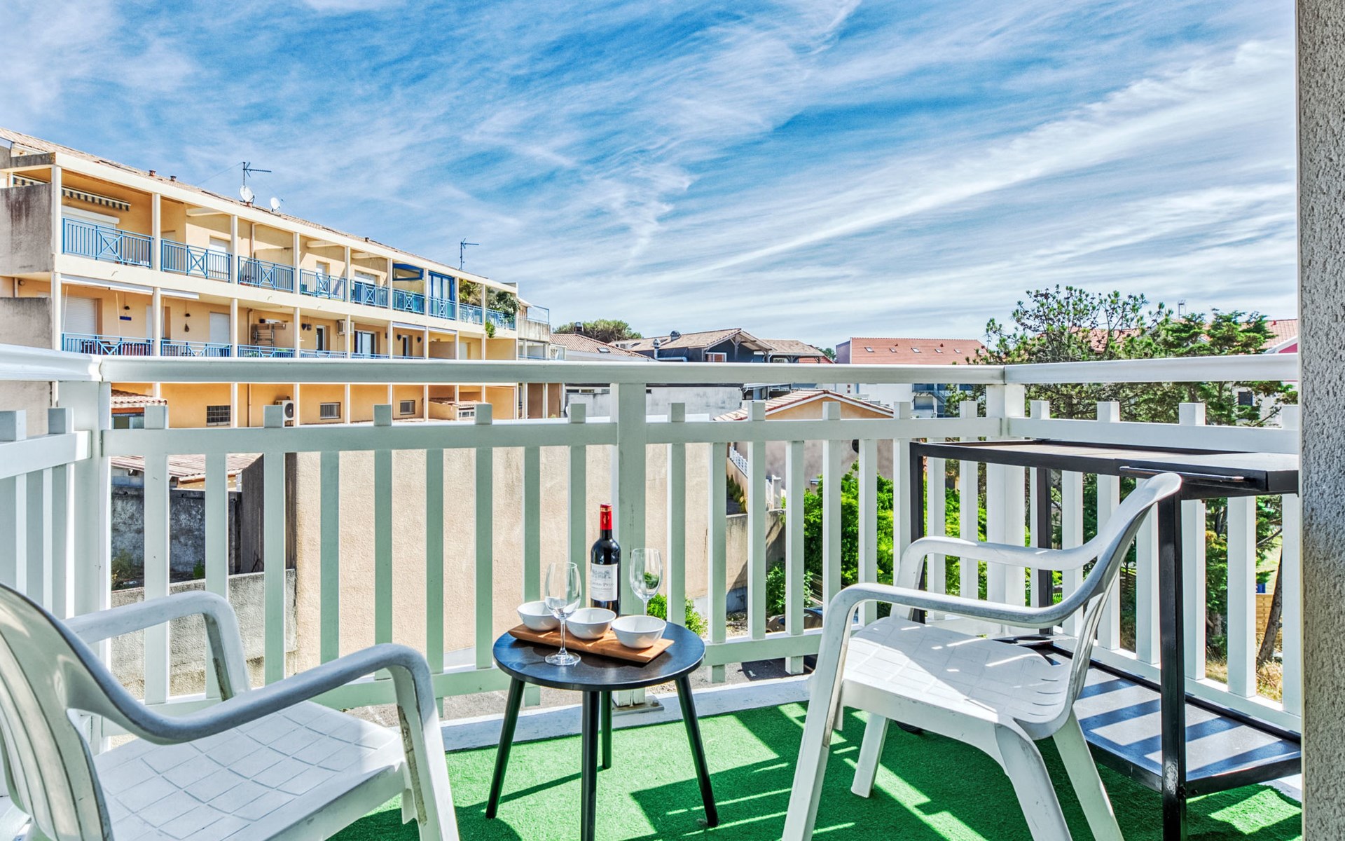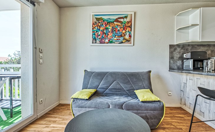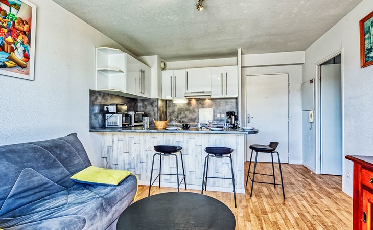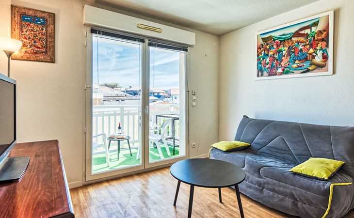 Lacanau Océan: Residence "Les Alizés", 3 storeys. In the centre of Lacanau Océan, 100 m from the sea, 6 km from the lake, 100 m from the beach. In the house: lift. Parking. Shop 50 m, supermarket 20 m, restaurant 100 m, bakery 20 m, bus stop "Salle l'Escoure Océan" 550 m, sandy beach "Lacanau Océan" 100 m, bathing lake "Moutchic" 6 km. Golf course (18 hole) 4 km, surf school 200 m, tennis 3 km, riding stable 4 km. Nearby attractions: Dune du Pilat 90 km, Bordeaux 60 km, Saint Emilion 98 km, Cap Ferret 48 km. Well-known lakes can easily be reached: Moutchic 6 km, Maubuisson 14 km.