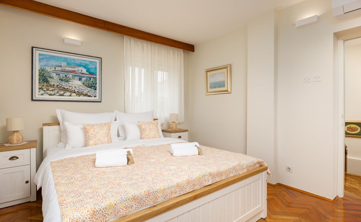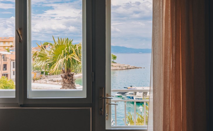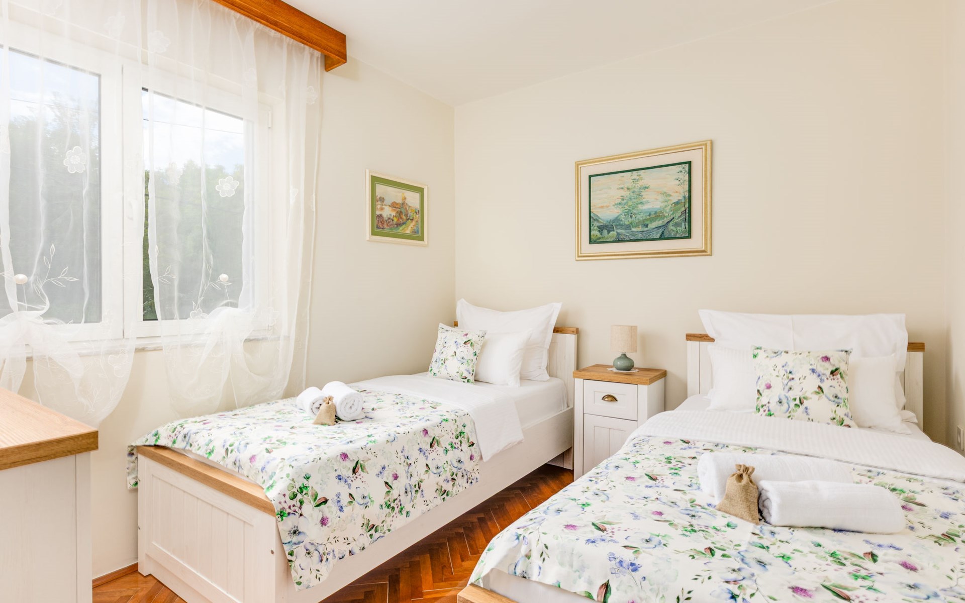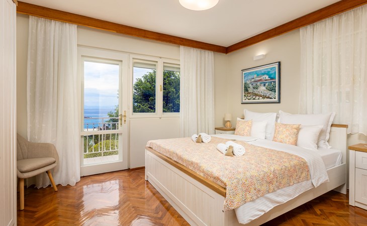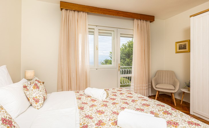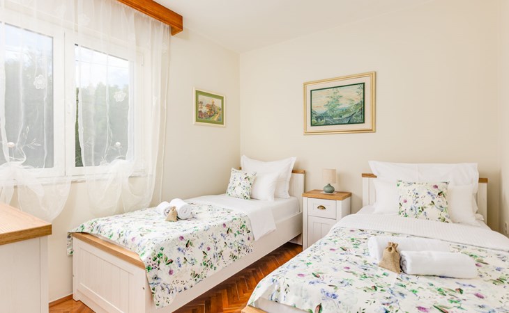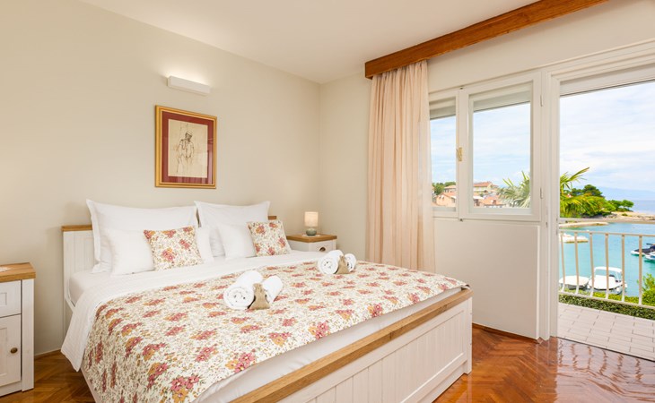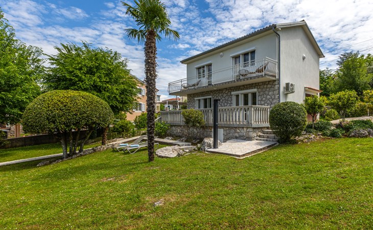 Cosy single-family house "Villa Gisela", 2 storeys, detached. In the hamlet Vantačići 3 km from the centre of Malinska, 10 m from the sea, 50 m from the beach, direct access to the beach. Private: property 600 m2 (fenced) with natural garden. Barbecue, parking (for 2 cars) at the house on the premises. Shop 100 m, supermarket 3.5 km, bakery 80 m, bus stop 100 m, pebble beach 50 m. Groups of teenagers on request only. Please note: airfield 18 km from the property.
