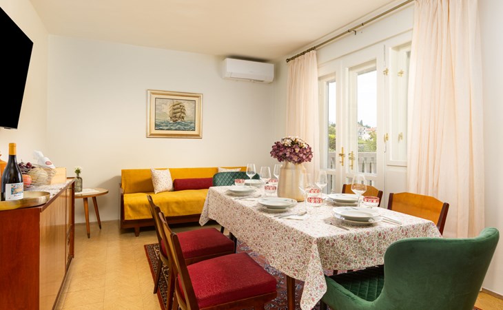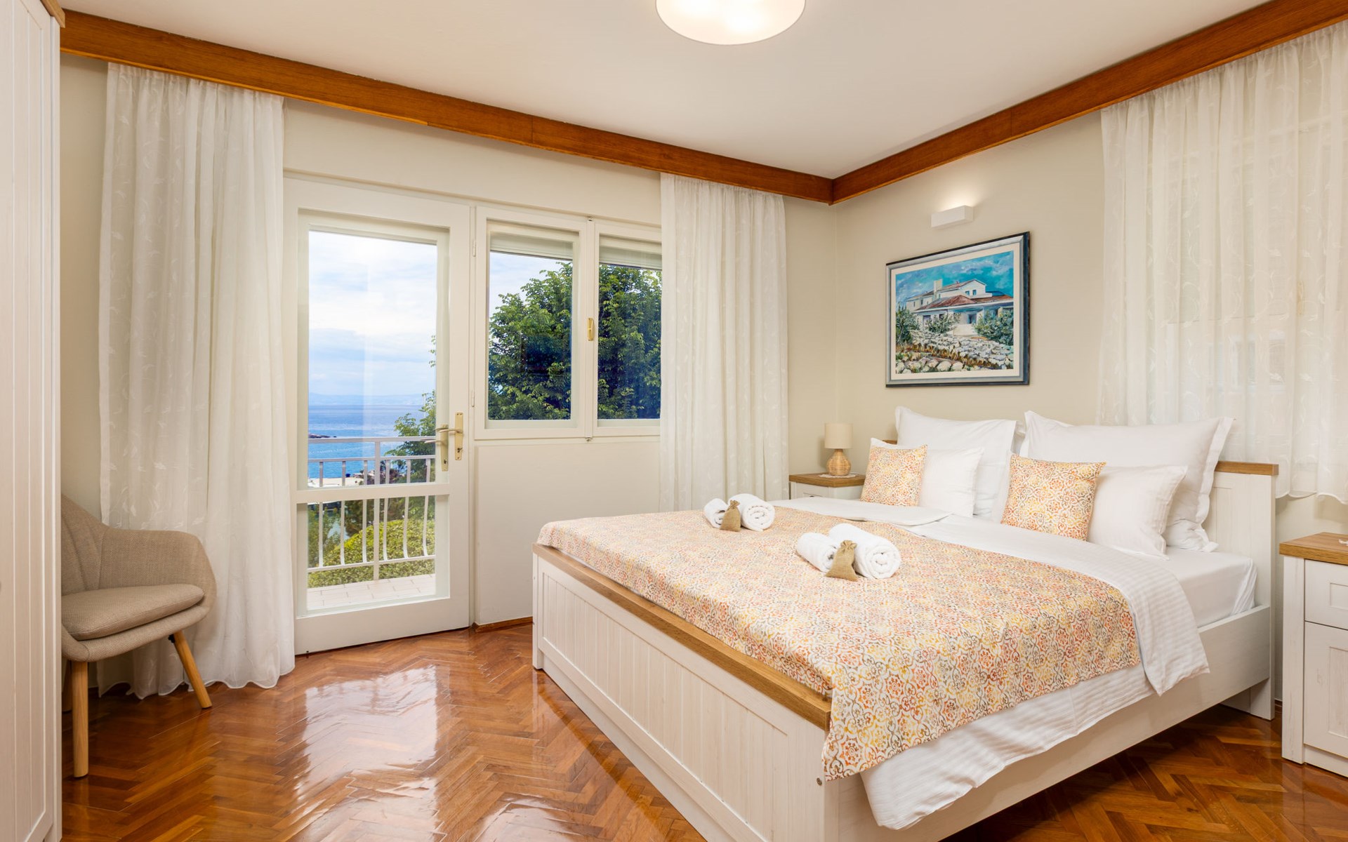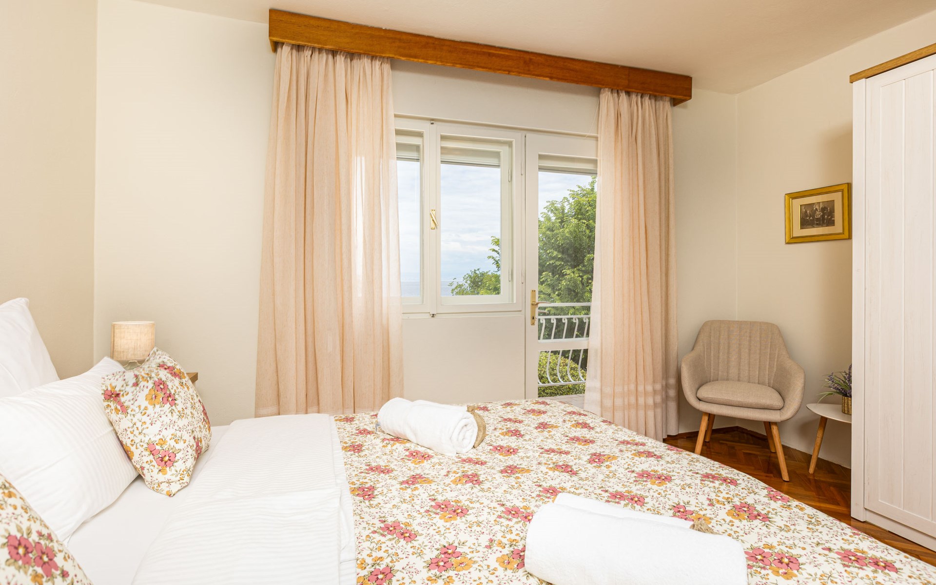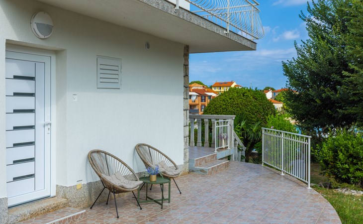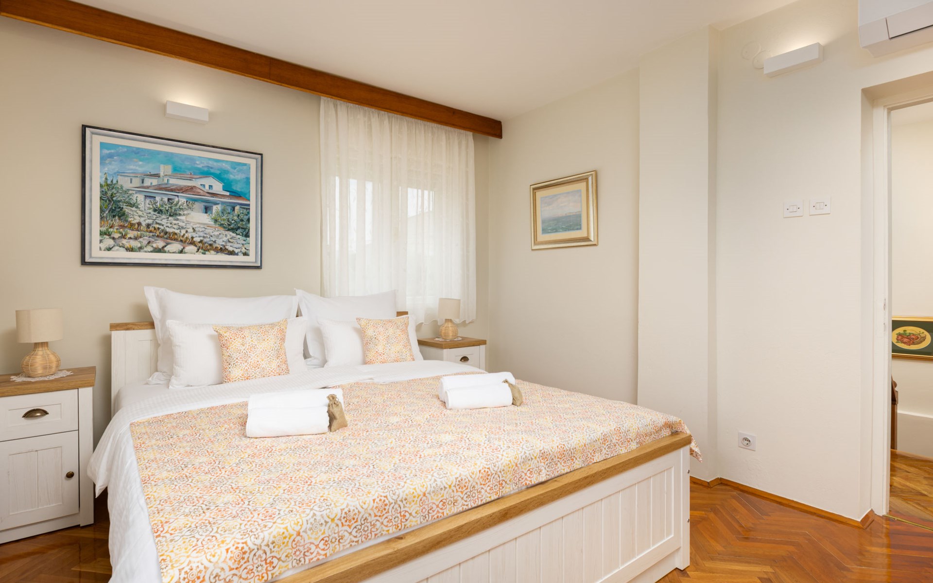 Cosy single-family house "Villa Gisela", 2 storeys, detached. In the hamlet Vantačići 3 km from the centre of Malinska, 10 m from the sea, 50 m from the beach, direct access to the beach. Private: property 600 m2 (fenced) with natural garden. Barbecue, parking (for 2 cars) at the house on the premises. Shop 100 m, supermarket 3.5 km, bakery 80 m, bus stop 100 m, pebble beach 50 m. Groups of teenagers on request only. Please note: airfield 18 km from the property.