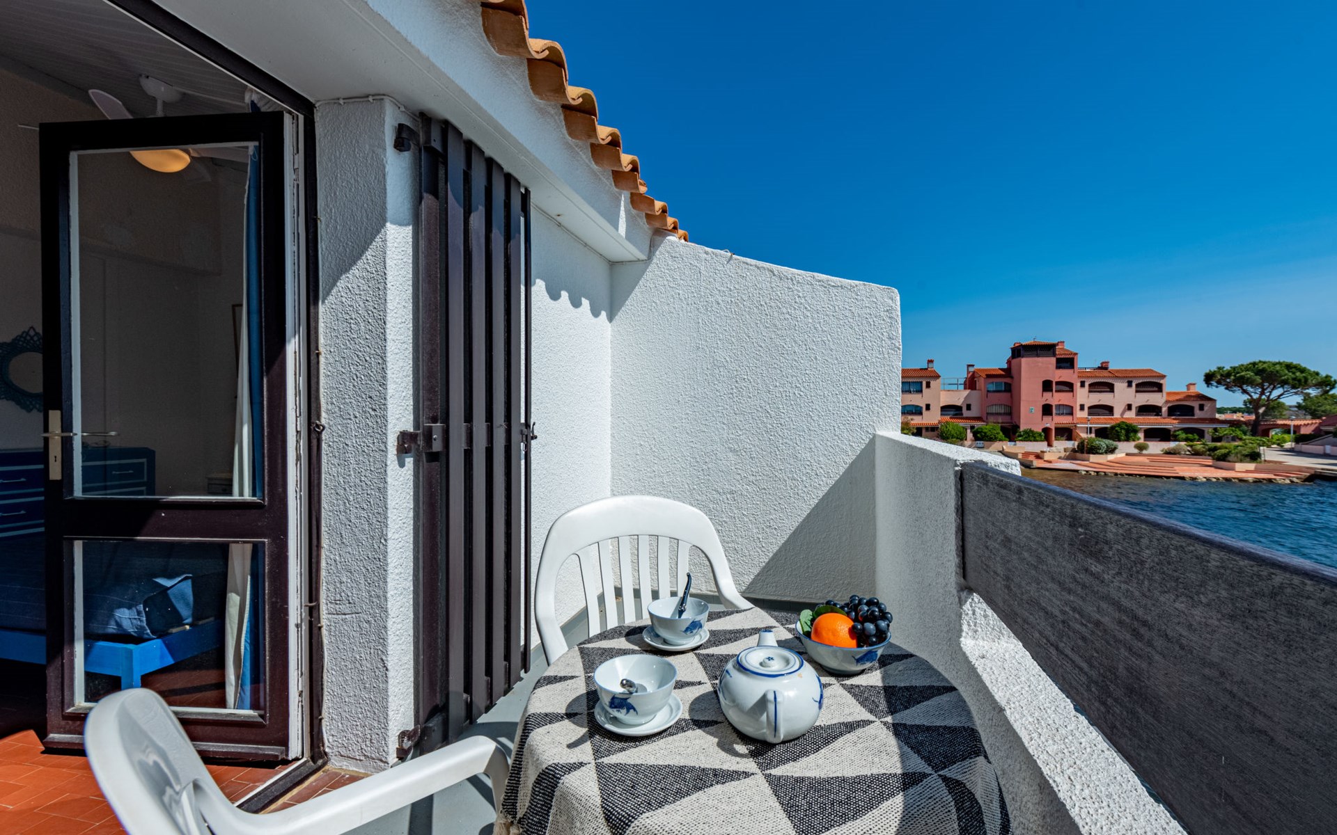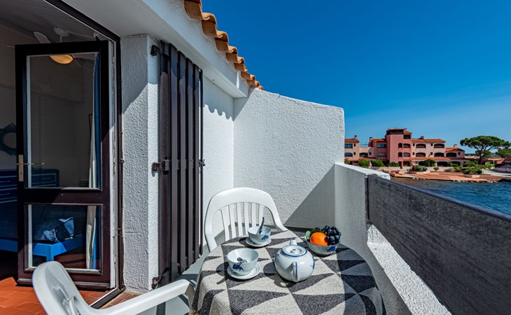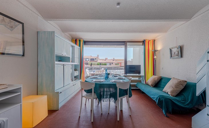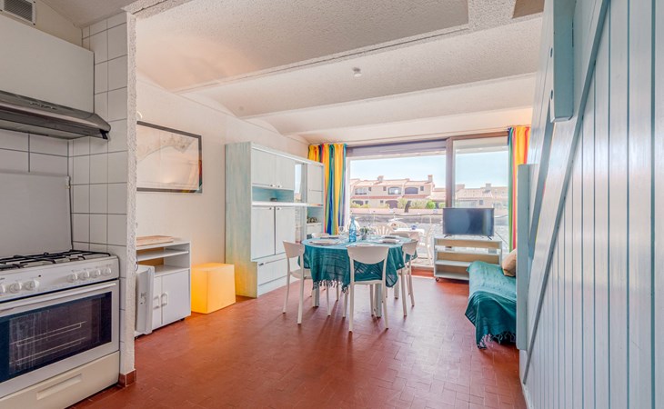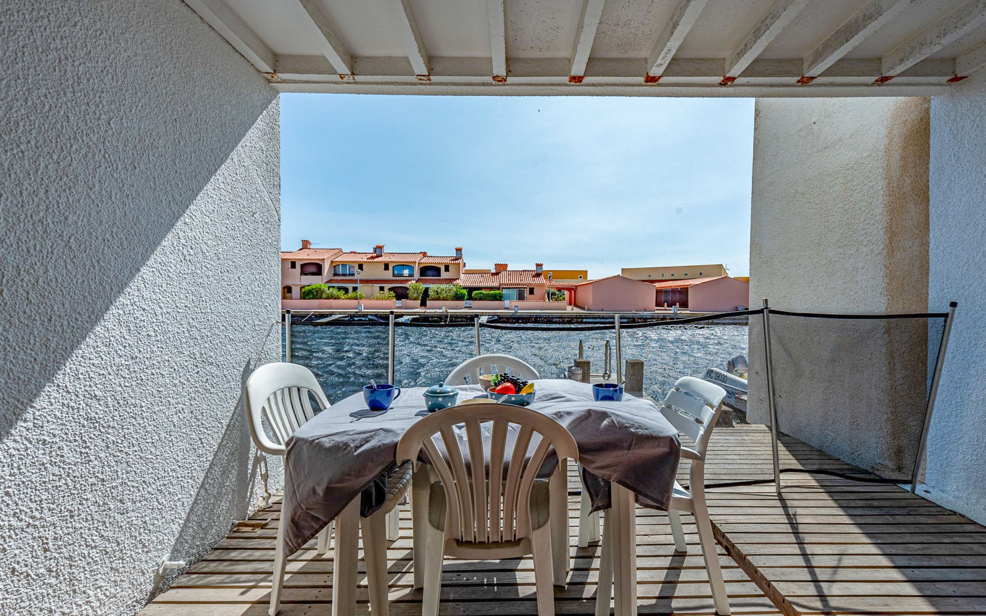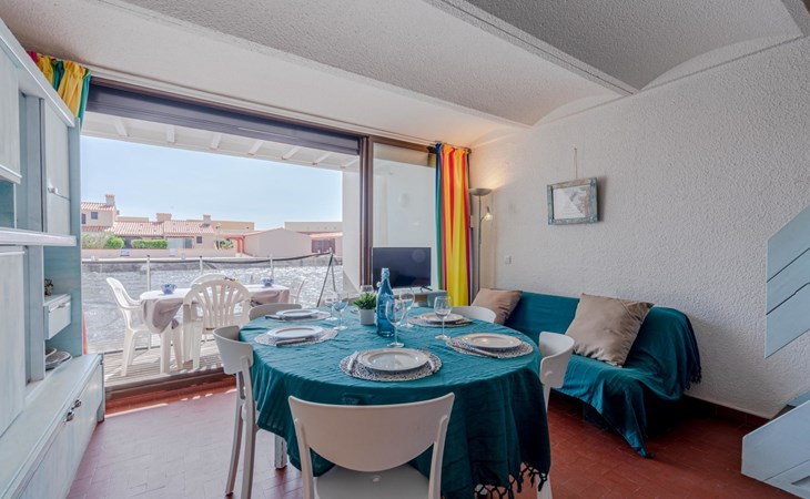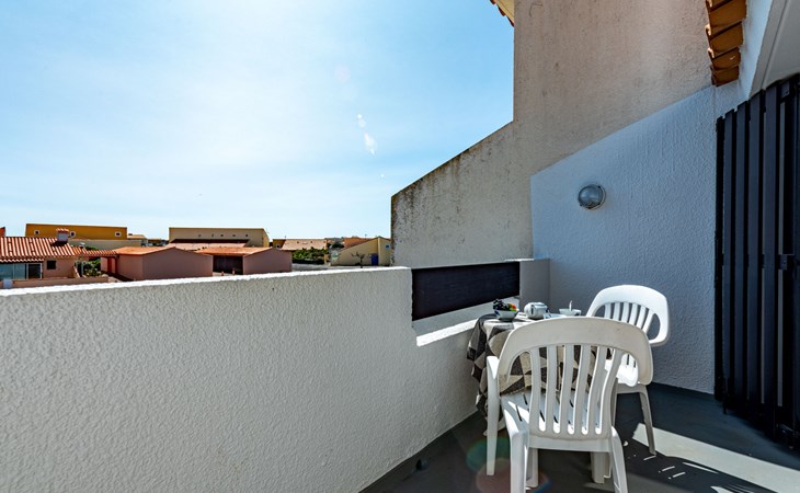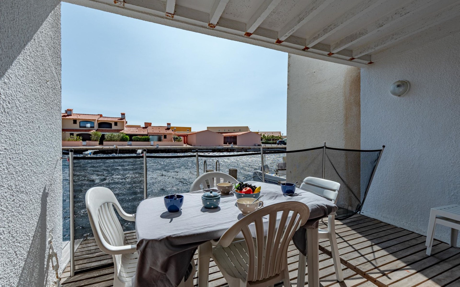 Residence "Les Brigantins". On the outskirts, 3 km from the sea, 50 m from the lake, 3 km from the beach, in a cul-de-sac. For shared use: natural pond, public parking 80 m. Grocery 3 km, supermarket 5 km, shopping centre 4 km, restaurant 2 km, bar 2 km, bakery 3 km, bus stop "Le Barcarès" 600 m, railway station "La Franqui" 16 km, sandy beach 3 km, diving center 6 km, outdoor swimming pool 4 km, nudist beach 5 km. Sports harbour 7 km, surf school 1 km, sailing school 3 km, tennis 3 km, minigolf 5 km, riding stable 9 km. Nearby attractions: Aqualand Port Leucate 7 km, Réserve Africaine de Sigean 41 km, Fort de Salses 20 km, Narbonne 55 km, Perpignan 25 km, Barcelone 215 km. Well-known lakes can easily be reached: Etang de Leucate ou Salses 7 km, Lac de Villeneuve de La Raho 28 km. Hiking paths: Sentier du guetteur 8 km, Station meteorologique de Opoul Perillos 25 km, Sentier du littoral Collioure 40 km. Please note: car recommended. Residence with electric gates. The photograph shows a typical example. Additional accommodations can be booked. Protection barrier on the pontoon.