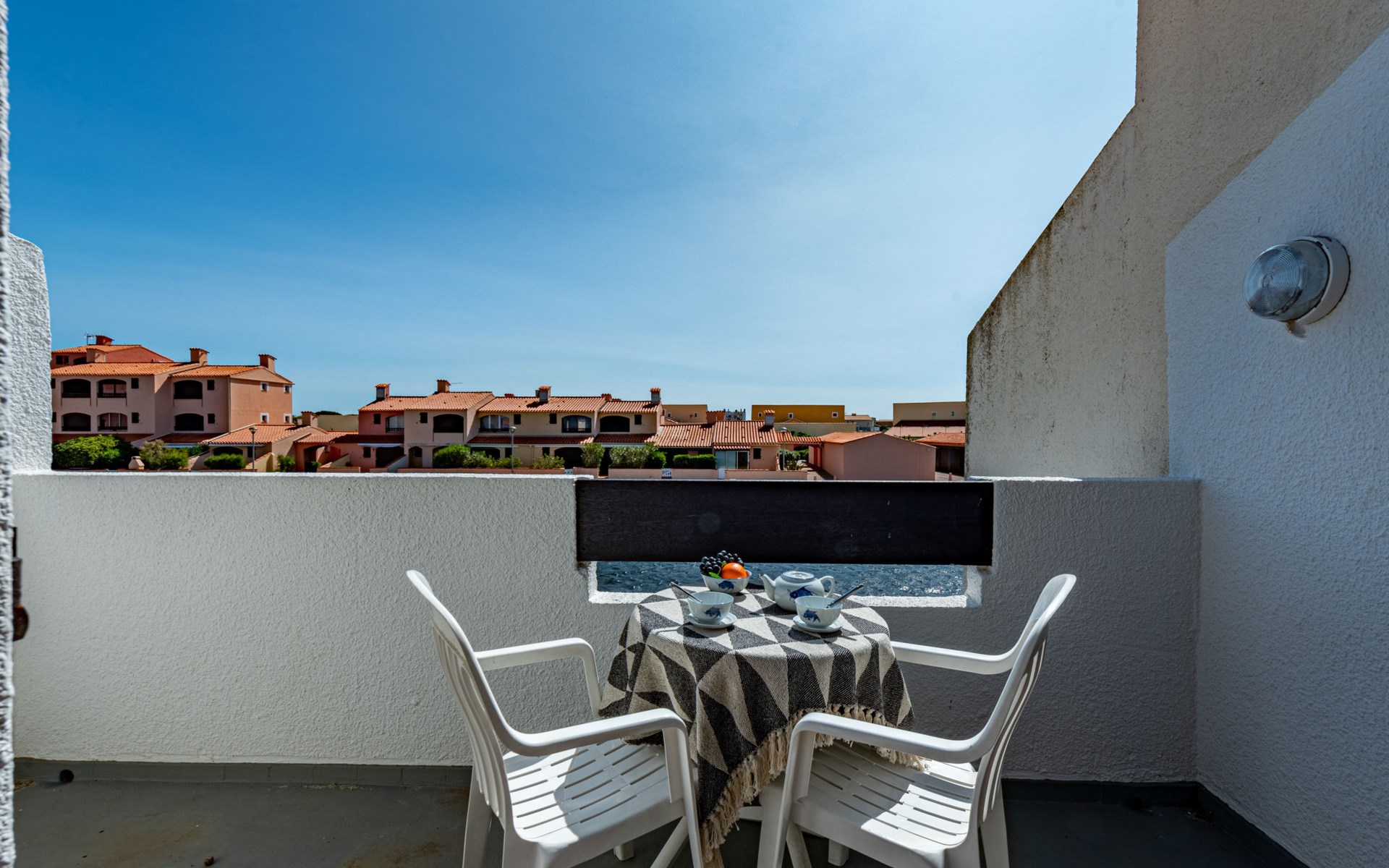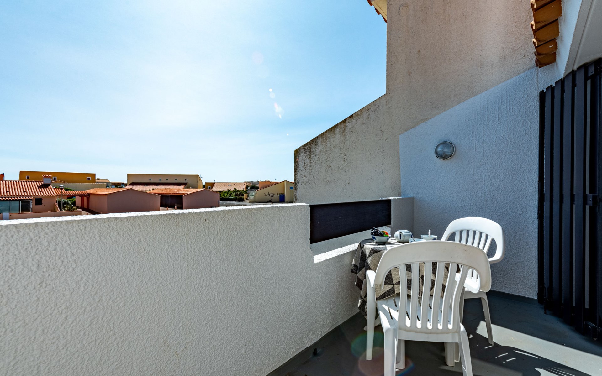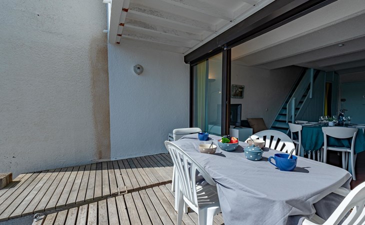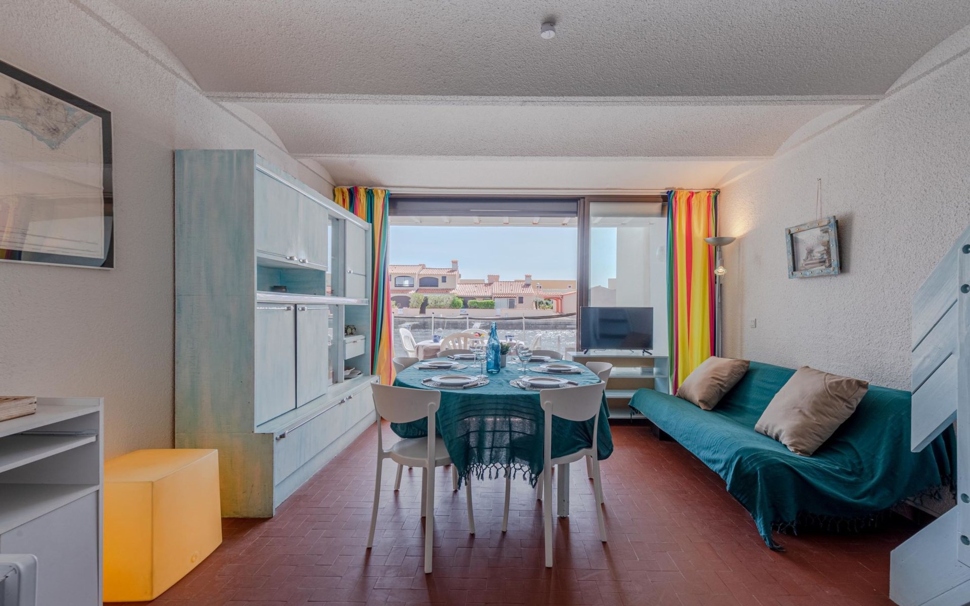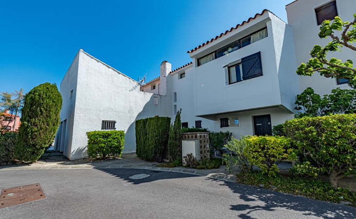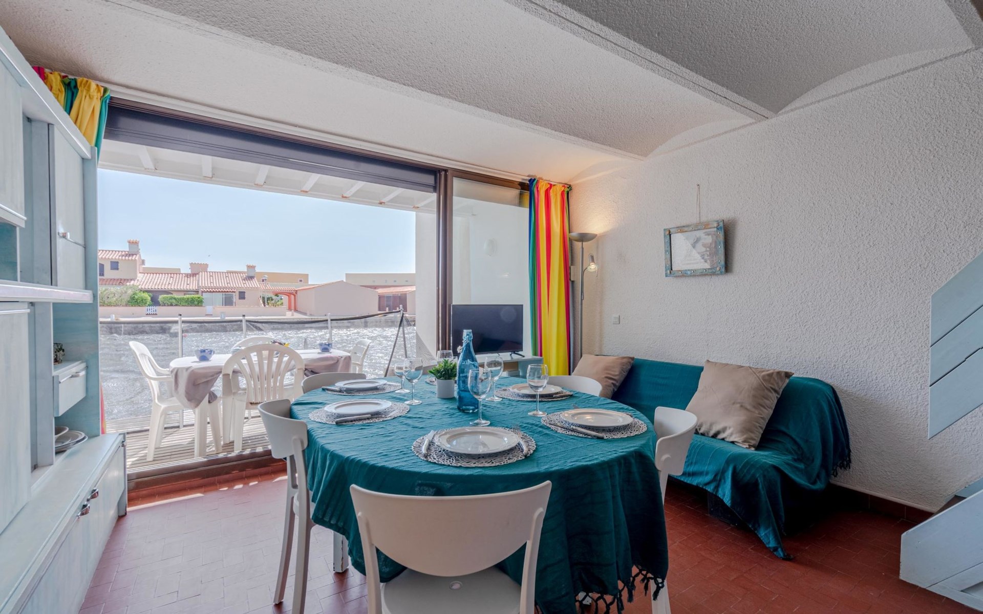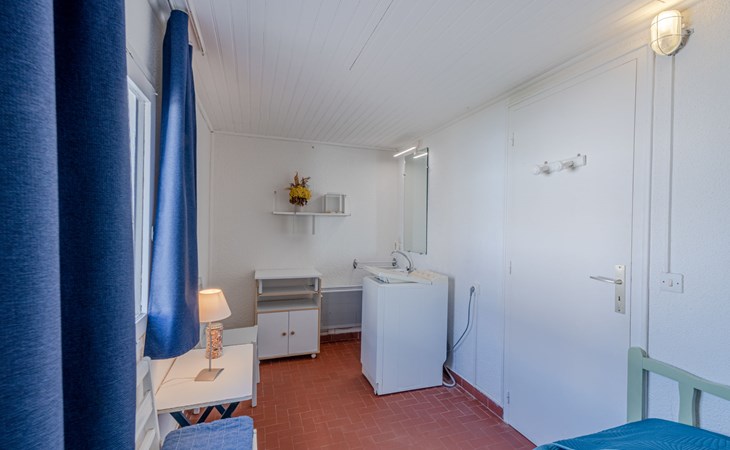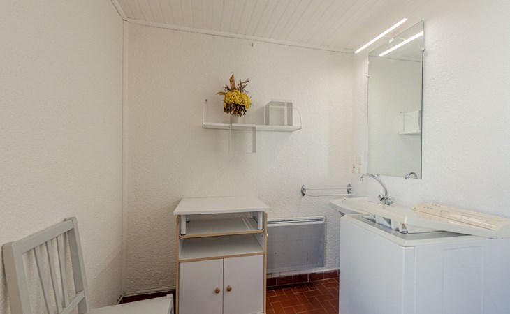 Residence "Les Brigantins". On the outskirts, 3 km from the sea, 50 m from the lake, 3 km from the beach, in a cul-de-sac. For shared use: natural pond, public parking 80 m. Grocery 3 km, supermarket 5 km, shopping centre 4 km, restaurant 2 km, bar 2 km, bakery 3 km, bus stop "Le Barcarès" 600 m, railway station "La Franqui" 16 km, sandy beach 3 km, diving center 6 km, outdoor swimming pool 4 km, nudist beach 5 km. Sports harbour 7 km, surf school 1 km, sailing school 3 km, tennis 3 km, minigolf 5 km, riding stable 9 km. Nearby attractions: Aqualand Port Leucate 7 km, Réserve Africaine de Sigean 41 km, Fort de Salses 20 km, Narbonne 55 km, Perpignan 25 km, Barcelone 215 km. Well-known lakes can easily be reached: Etang de Leucate ou Salses 7 km, Lac de Villeneuve de La Raho 28 km. Hiking paths: Sentier du guetteur 8 km, Station meteorologique de Opoul Perillos 25 km, Sentier du littoral Collioure 40 km. Please note: car recommended. Residence with electric gates. The photograph shows a typical example. Additional accommodations can be booked. Protection barrier on the pontoon.