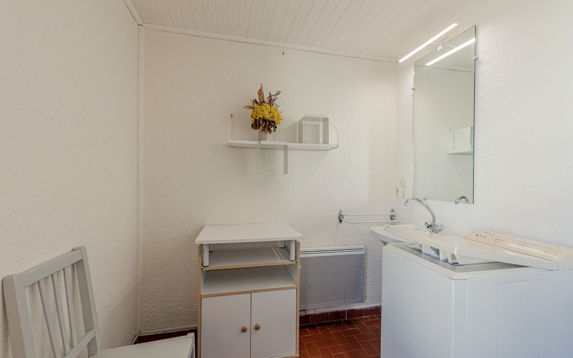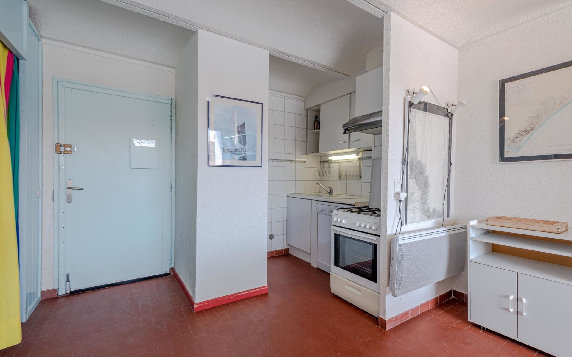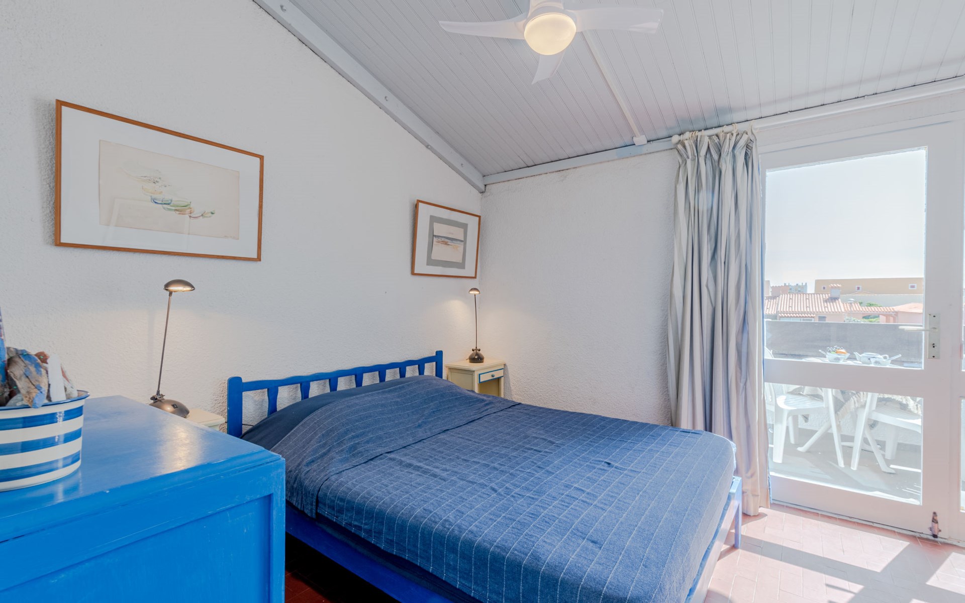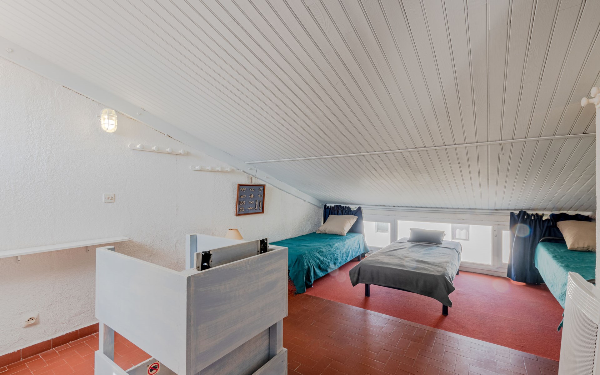 Residence "Les Brigantins". On the outskirts, 3 km from the sea, 50 m from the lake, 3 km from the beach, in a cul-de-sac. For shared use: natural pond, public parking 80 m. Grocery 3 km, supermarket 5 km, shopping centre 4 km, restaurant 2 km, bar 2 km, bakery 3 km, bus stop "Le Barcarès" 600 m, railway station "La Franqui" 16 km, sandy beach 3 km, diving center 6 km, outdoor swimming pool 4 km, nudist beach 5 km. Sports harbour 7 km, surf school 1 km, sailing school 3 km, tennis 3 km, minigolf 5 km, riding stable 9 km. Nearby attractions: Aqualand Port Leucate 7 km, Réserve Africaine de Sigean 41 km, Fort de Salses 20 km, Narbonne 55 km, Perpignan 25 km, Barcelone 215 km. Well-known lakes can easily be reached: Etang de Leucate ou Salses 7 km, Lac de Villeneuve de La Raho 28 km. Hiking paths: Sentier du guetteur 8 km, Station meteorologique de Opoul Perillos 25 km, Sentier du littoral Collioure 40 km. Please note: car recommended. Residence with electric gates. The photograph shows a typical example. Additional accommodations can be booked. Protection barrier on the pontoon.