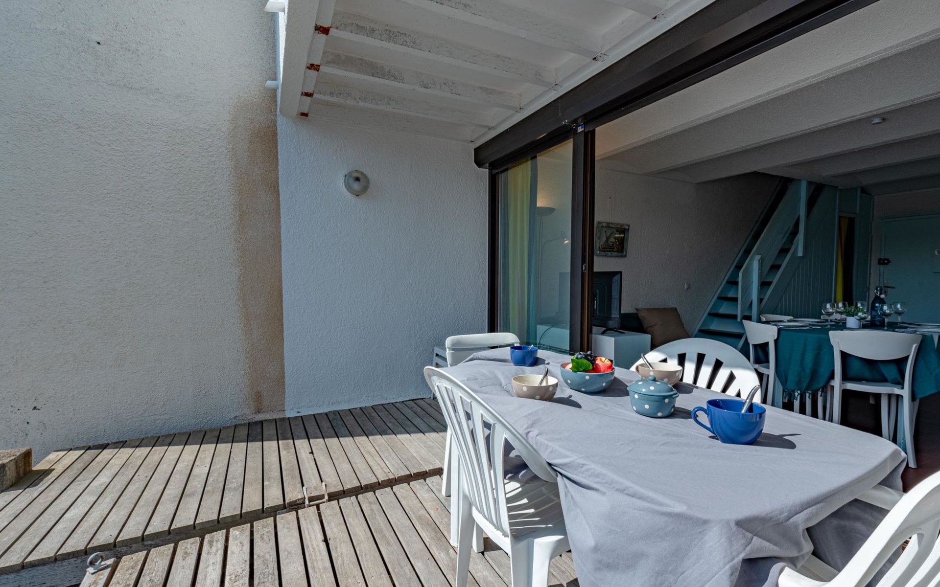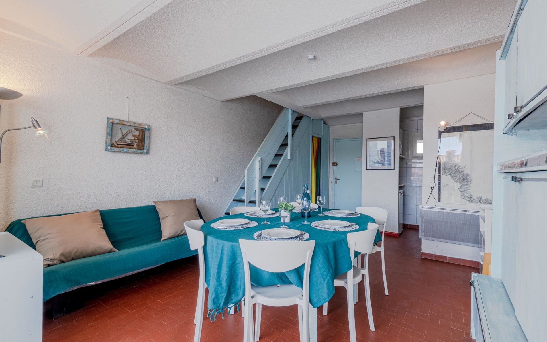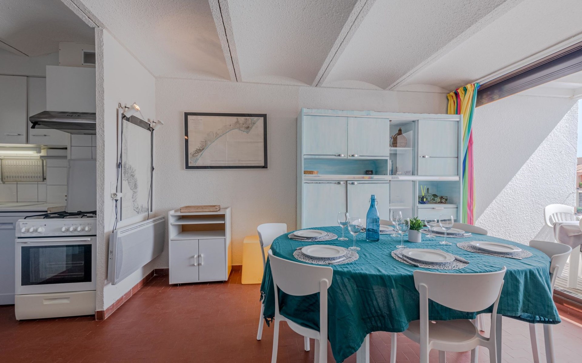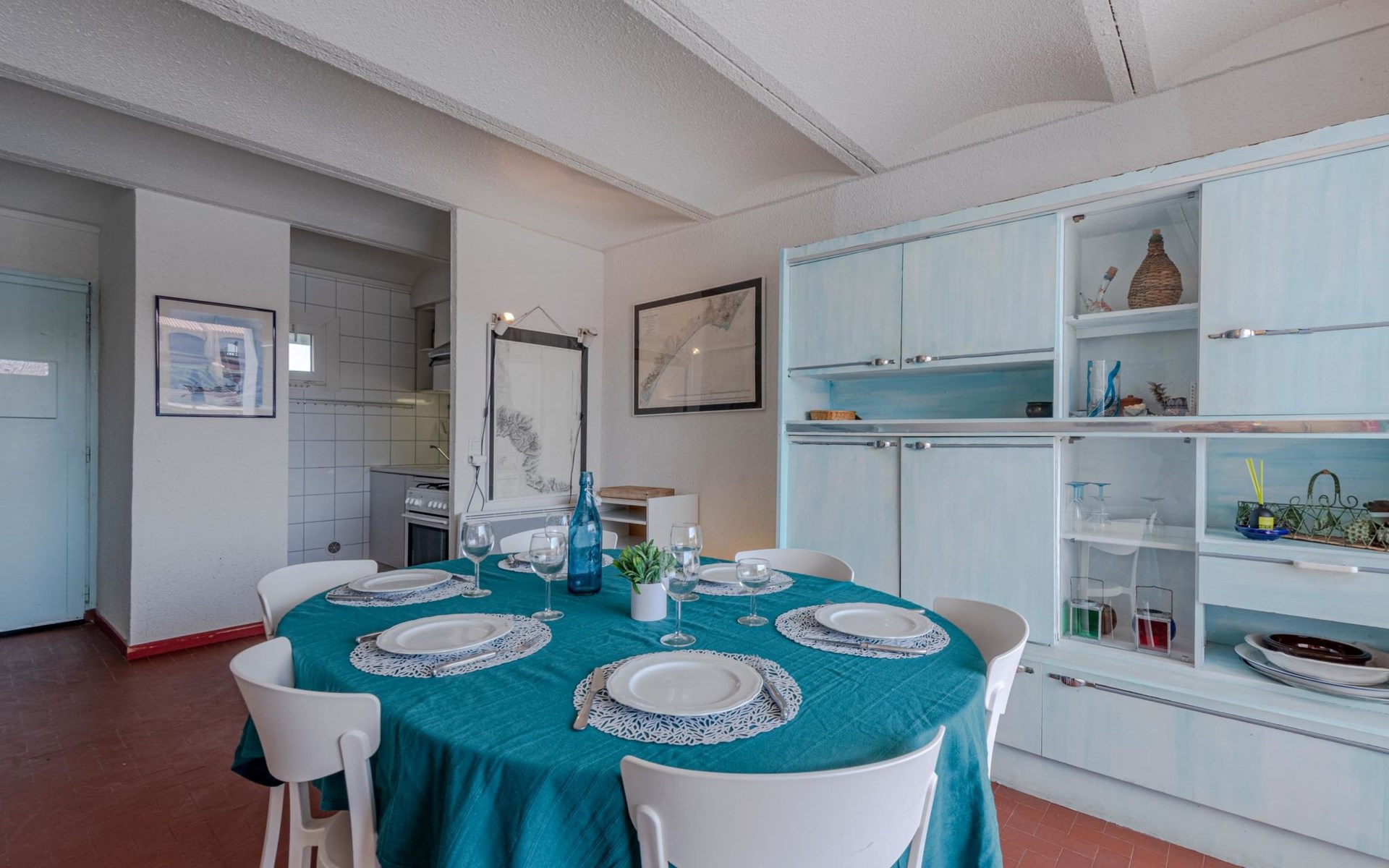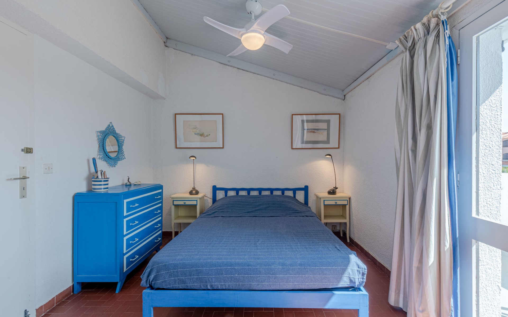 Residence "Les Brigantins". On the outskirts, 3 km from the sea, 50 m from the lake, 3 km from the beach, in a cul-de-sac. For shared use: natural pond, public parking 80 m. Grocery 3 km, supermarket 5 km, shopping centre 4 km, restaurant 2 km, bar 2 km, bakery 3 km, bus stop "Le Barcarès" 600 m, railway station "La Franqui" 16 km, sandy beach 3 km, diving center 6 km, outdoor swimming pool 4 km, nudist beach 5 km. Sports harbour 7 km, surf school 1 km, sailing school 3 km, tennis 3 km, minigolf 5 km, riding stable 9 km. Nearby attractions: Aqualand Port Leucate 7 km, Réserve Africaine de Sigean 41 km, Fort de Salses 20 km, Narbonne 55 km, Perpignan 25 km, Barcelone 215 km. Well-known lakes can easily be reached: Etang de Leucate ou Salses 7 km, Lac de Villeneuve de La Raho 28 km. Hiking paths: Sentier du guetteur 8 km, Station meteorologique de Opoul Perillos 25 km, Sentier du littoral Collioure 40 km. Please note: car recommended. Residence with electric gates. The photograph shows a typical example. Additional accommodations can be booked. Protection barrier on the pontoon.