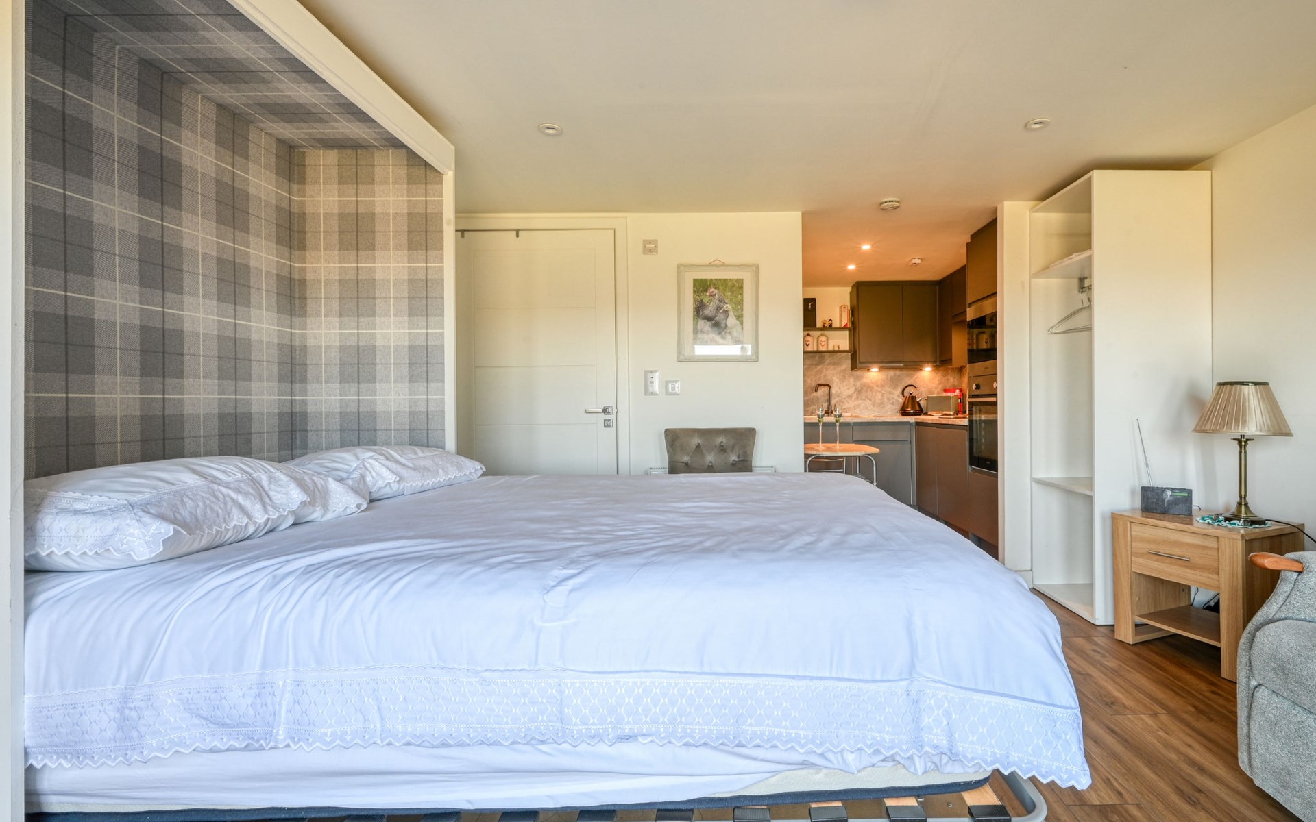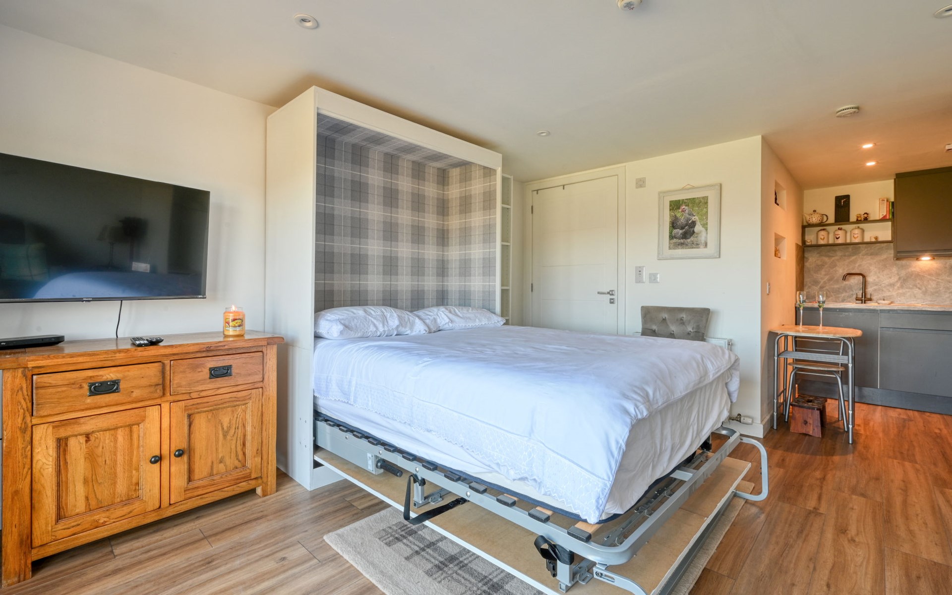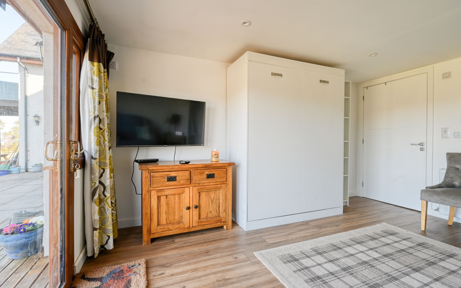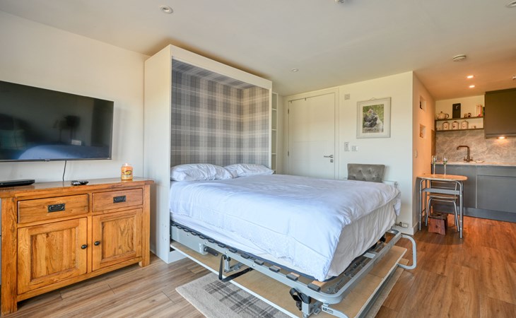 Foxhole 10 km from Beauly: Modern annex "Crofters View", semi-detached. In a secluded, quiet, elevated position, in the countryside. For shared use: petting farm. 4x4 car recommended in winter. Parking at the house. Shop 10 km, supermarket 20 km, restaurant 10 km, café 10 km, bus stop "Kiltarlity" 5 km, railway station "Beauly" 10 km. Golf course (18 hole) 20 km. Nearby attractions: Urquhart Castle 16 km, Loch Ness Exhibition Centre 13 km, Inverness 24 km, The Singleton Distillery 15 km, Robertson's Farm Shop & Petting Farm 11 km, Culloden Battlefield 33 km. Well-known lakes can easily be reached: Loch Ness. Please note: car recommended. Suitable for families, suitable for seniors baby equipment on request. The owner lives on the same property. Animals in the neighbourhood.