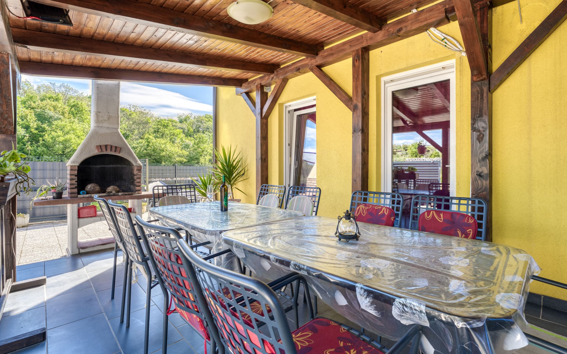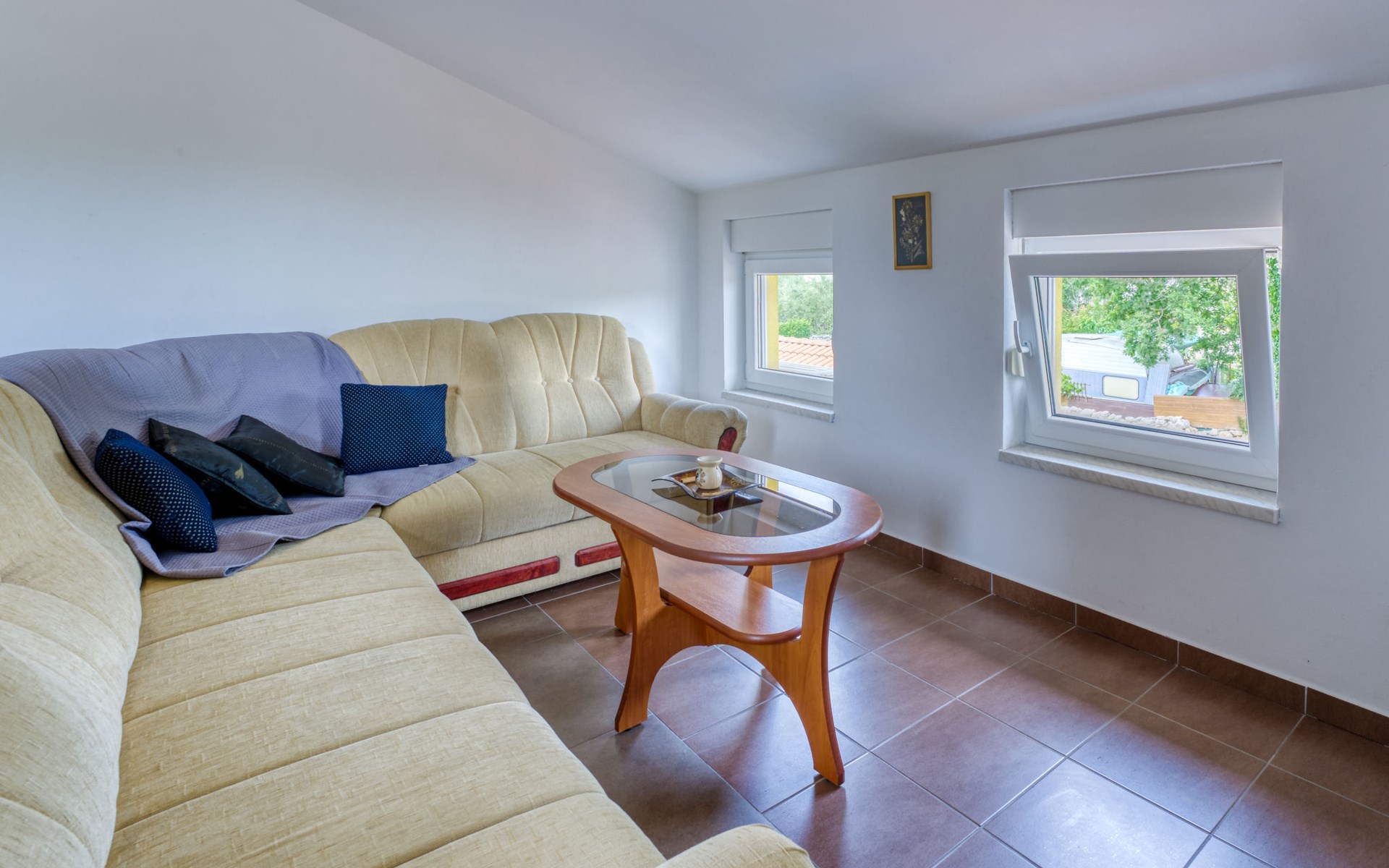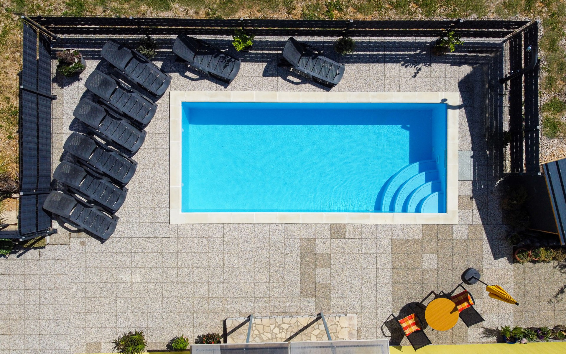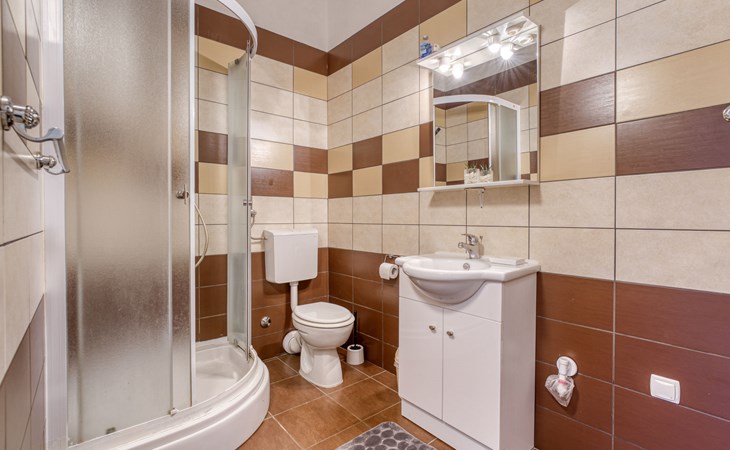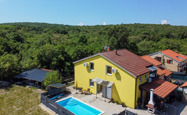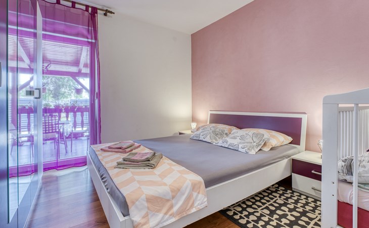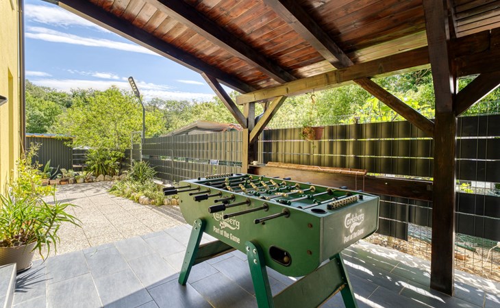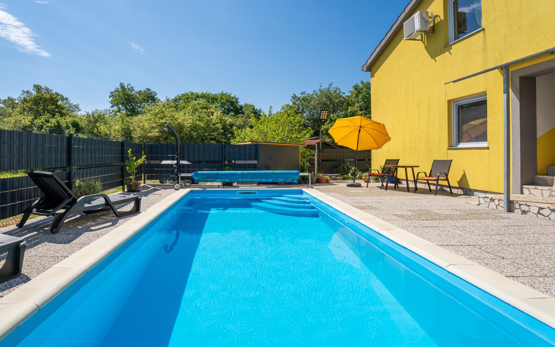 Semi-detached house "Radmila", 2 storeys. 3 km from the centre of Šilo, 13 km from the centre of Vrbnik, 3 km from the sea, 3 km from the beach, in a cul-de-sac. Private: property 300 m2 (fenced), swimming pool (above ground) (3 x 7 m, depth 130 cm, seasonal availability: 15.Mar. - 15.Nov.). Terrace, barbecue, pool maintenance by the owner/gardener. In the house: internet access, table football, trampoline, washing machine. Parking (for 4 cars) at the house. Shop 1.4 km, restaurant 3 km, bus stop 3.5 km, sandy beach 4 km pebble beach 3 km. Please note: airfield 16 km from the property. Semi-detached house consists of 3 apartments rented as one unit: one apartment on the ground floor and two apartments on the first floor.