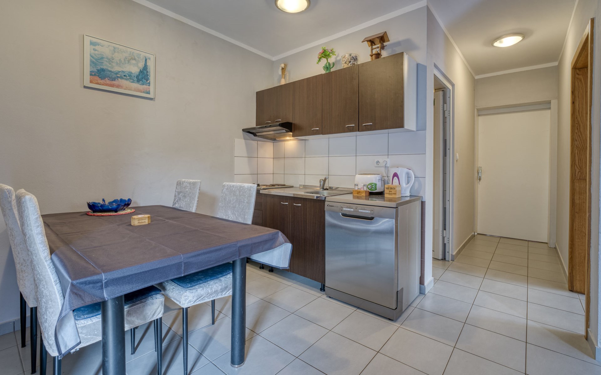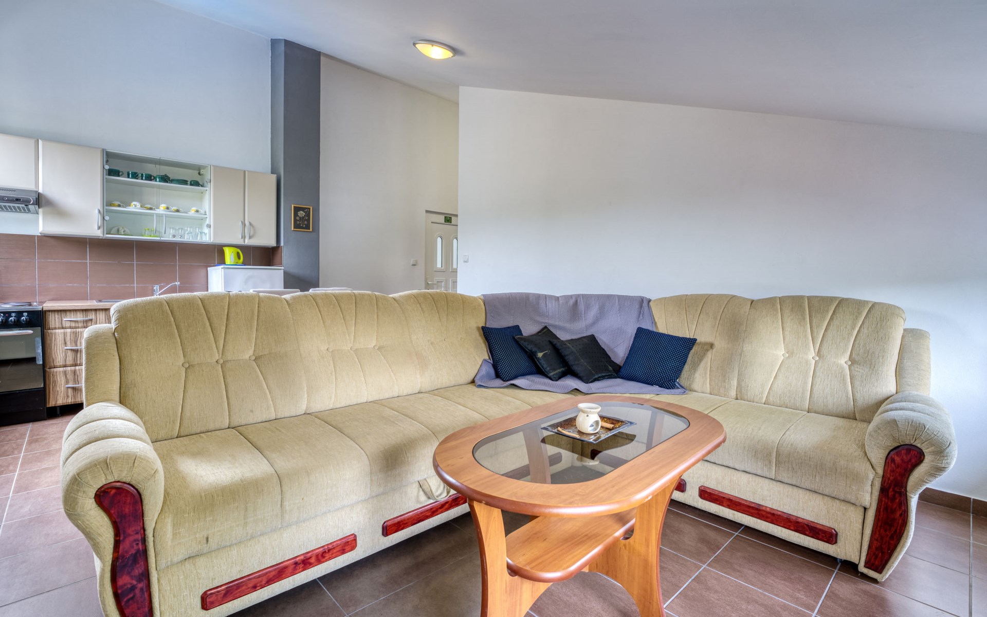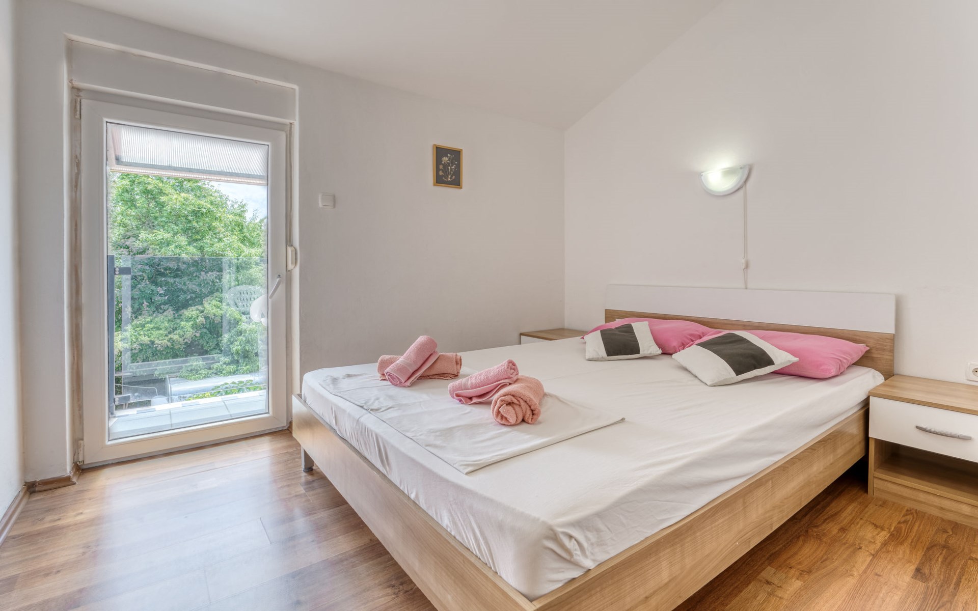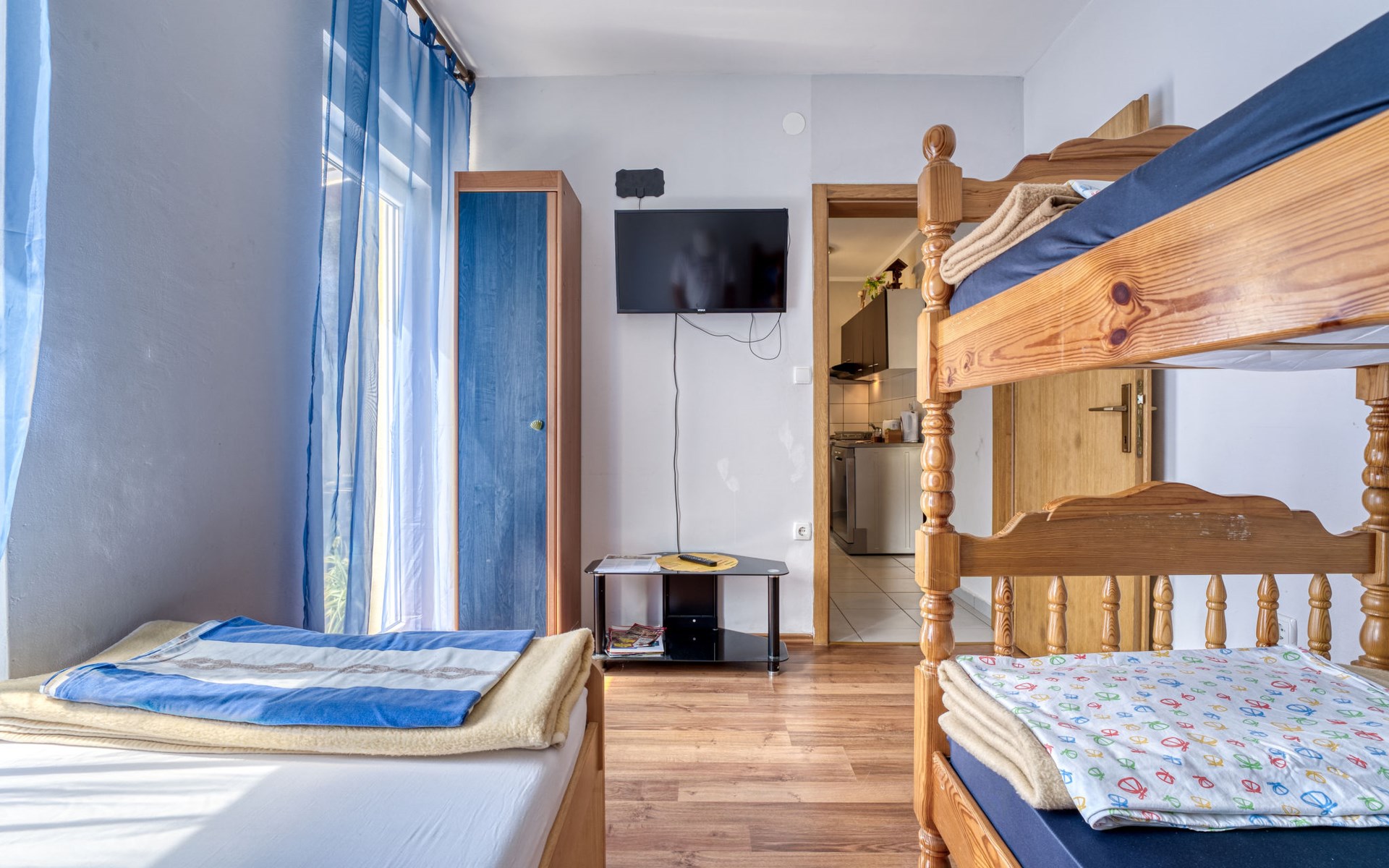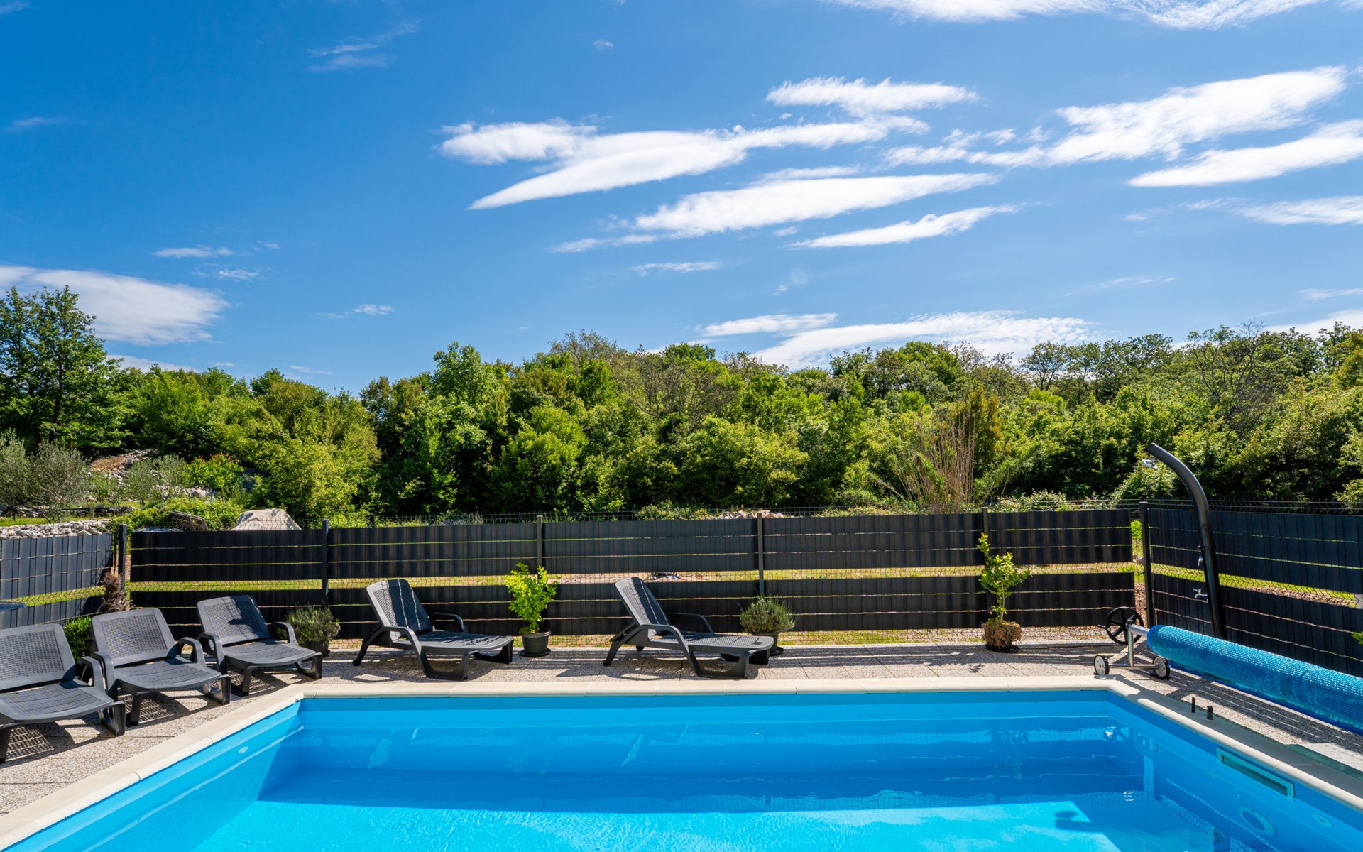 Semi-detached house "Radmila", 2 storeys. 3 km from the centre of Šilo, 13 km from the centre of Vrbnik, 3 km from the sea, 3 km from the beach, in a cul-de-sac. Private: property 300 m2 (fenced), swimming pool (above ground) (3 x 7 m, depth 130 cm, seasonal availability: 15.Mar. - 15.Nov.). Terrace, barbecue, pool maintenance by the owner/gardener. In the house: internet access, table football, trampoline, washing machine. Parking (for 4 cars) at the house. Shop 1.4 km, restaurant 3 km, bus stop 3.5 km, sandy beach 4 km pebble beach 3 km. Please note: airfield 16 km from the property. Semi-detached house consists of 3 apartments rented as one unit: one apartment on the ground floor and two apartments on the first floor.