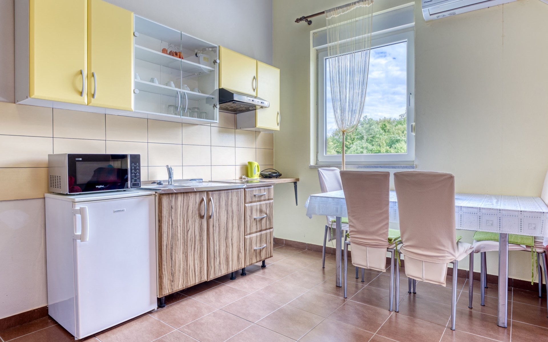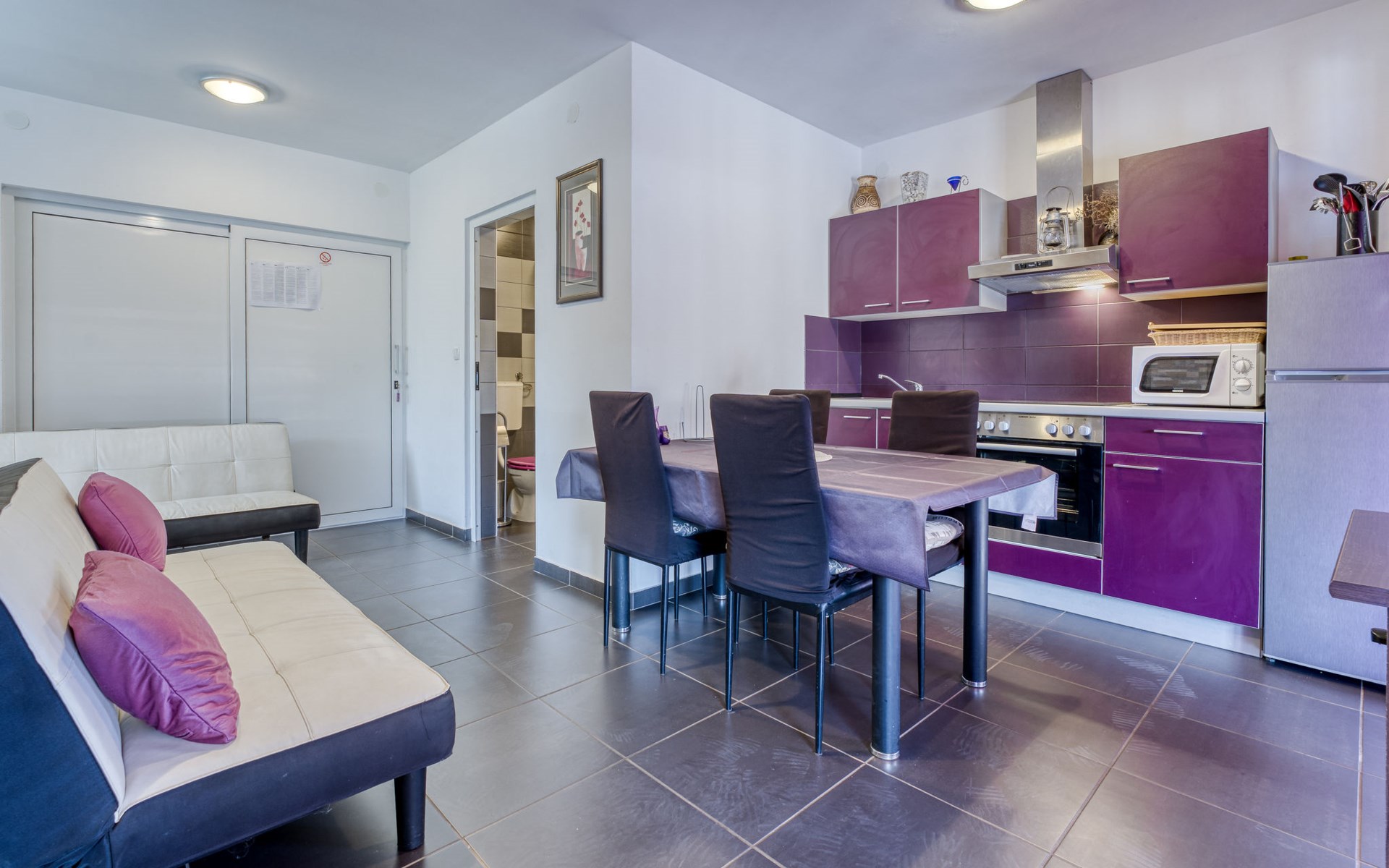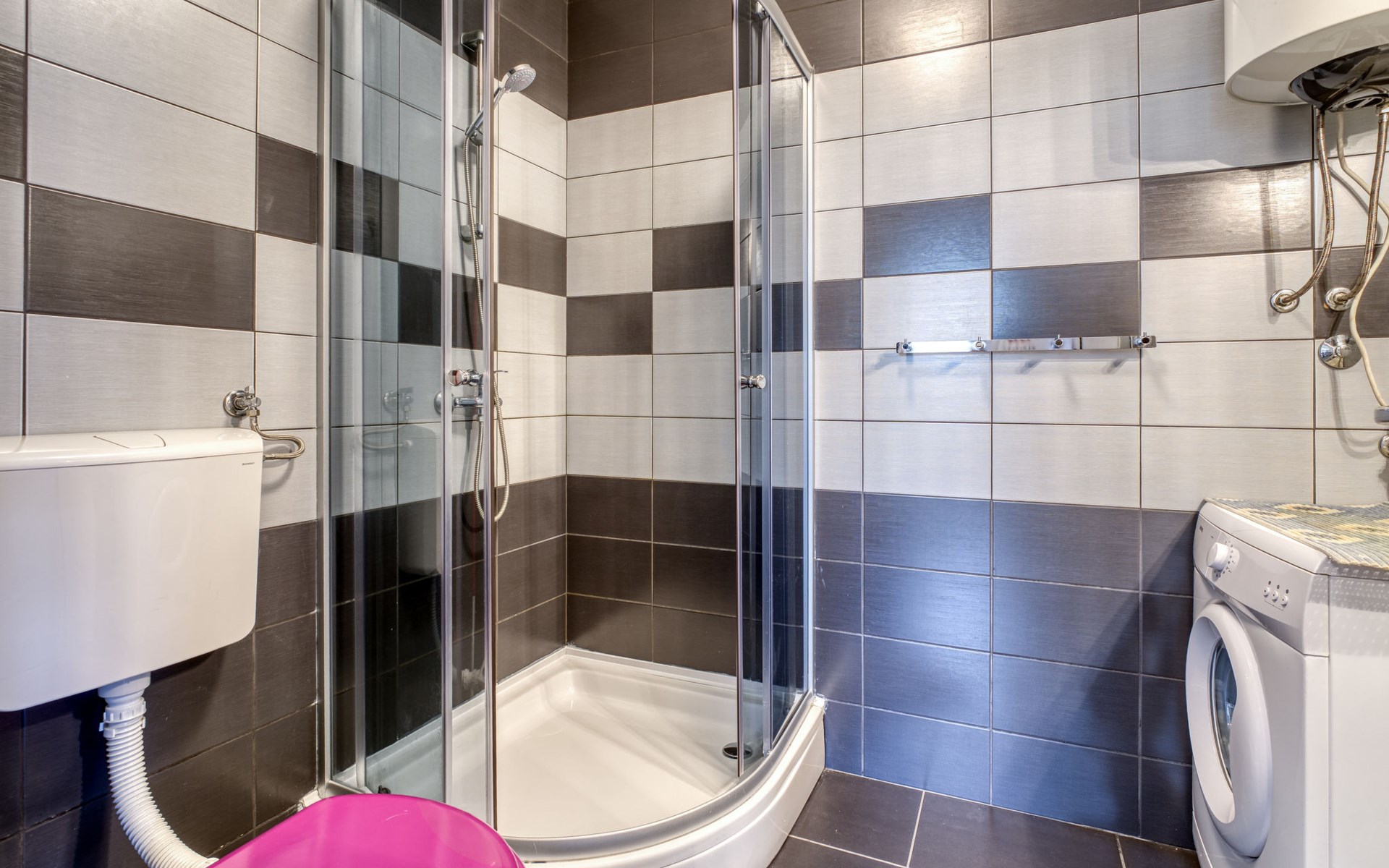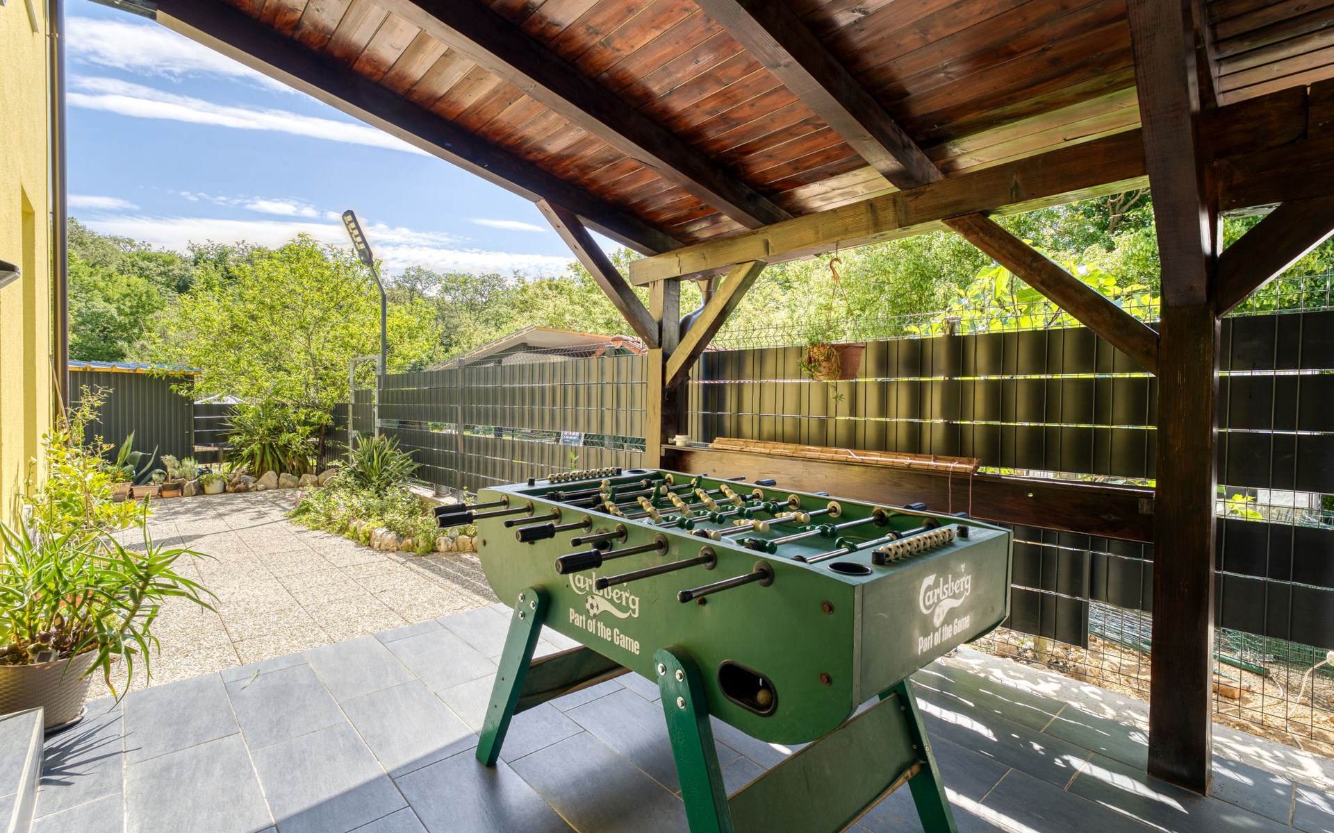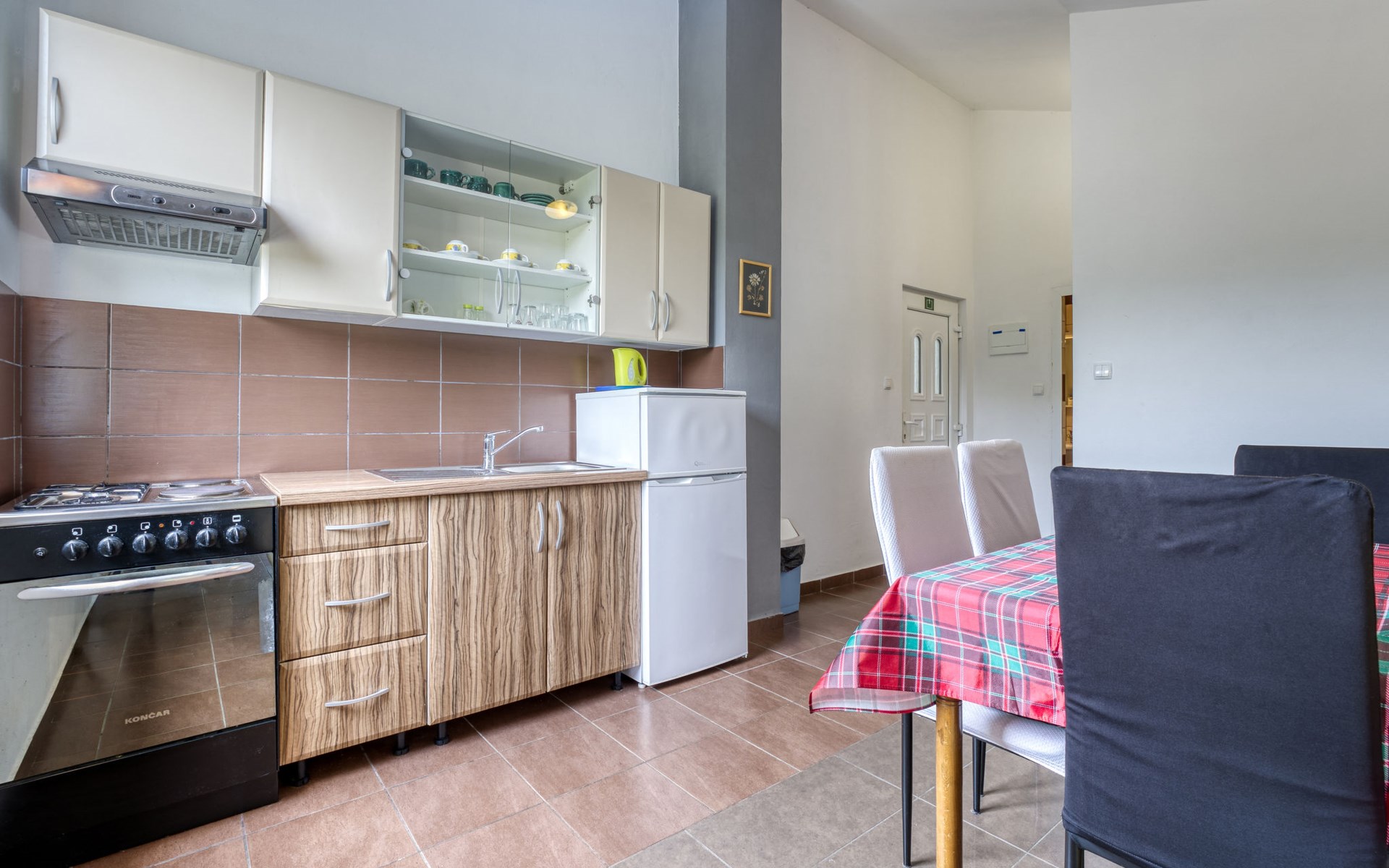 Semi-detached house "Radmila", 2 storeys. 3 km from the centre of Šilo, 13 km from the centre of Vrbnik, 3 km from the sea, 3 km from the beach, in a cul-de-sac. Private: property 300 m2 (fenced), swimming pool (above ground) (3 x 7 m, depth 130 cm, seasonal availability: 15.Mar. - 15.Nov.). Terrace, barbecue, pool maintenance by the owner/gardener. In the house: internet access, table football, trampoline, washing machine. Parking (for 4 cars) at the house. Shop 1.4 km, restaurant 3 km, bus stop 3.5 km, sandy beach 4 km pebble beach 3 km. Please note: airfield 16 km from the property. Semi-detached house consists of 3 apartments rented as one unit: one apartment on the ground floor and two apartments on the first floor.